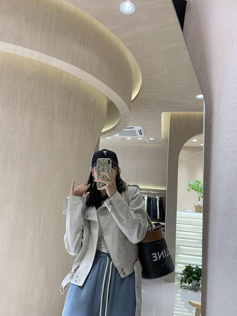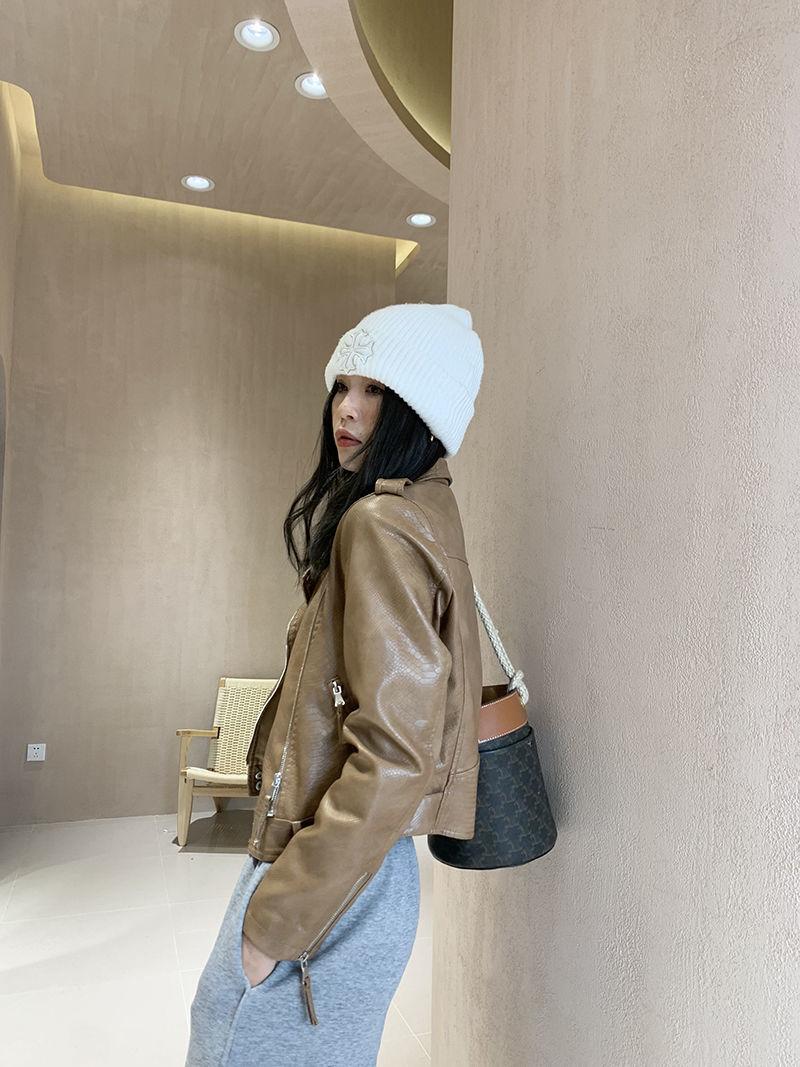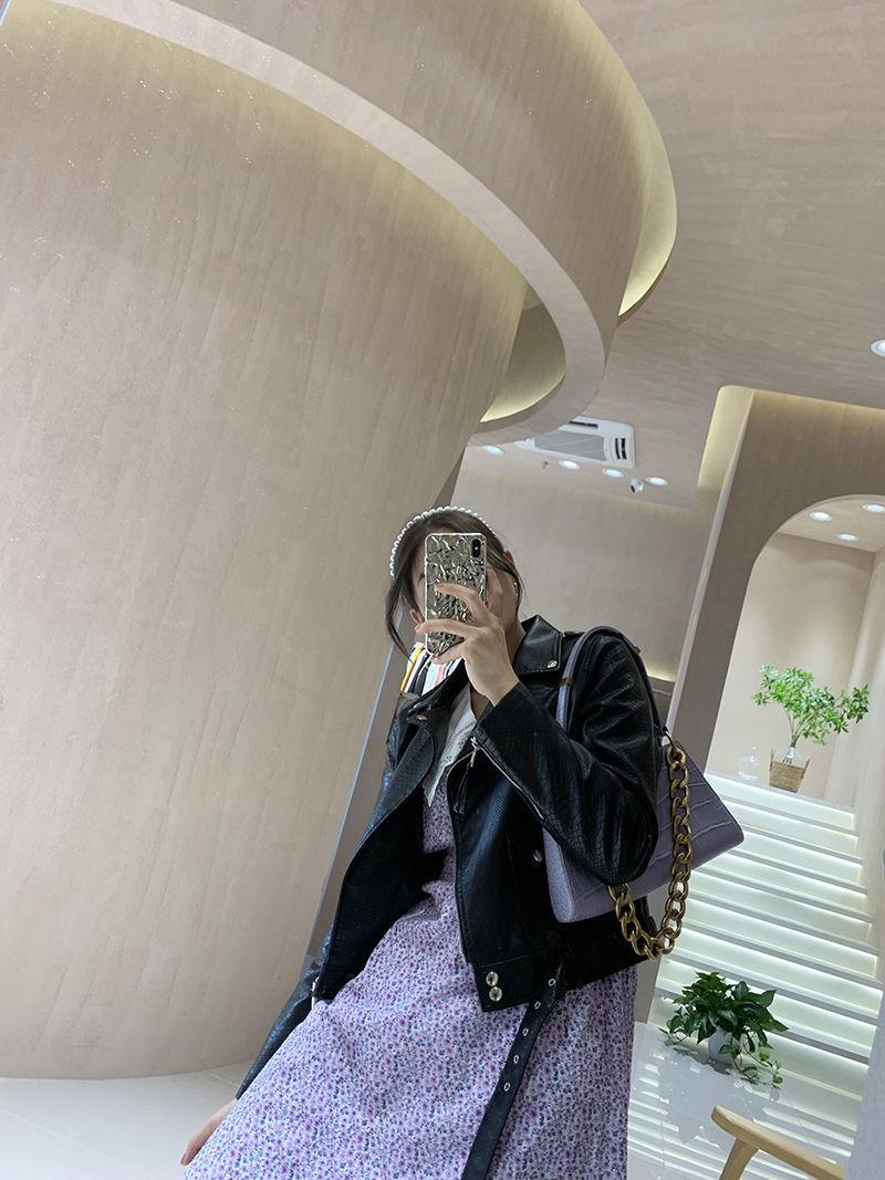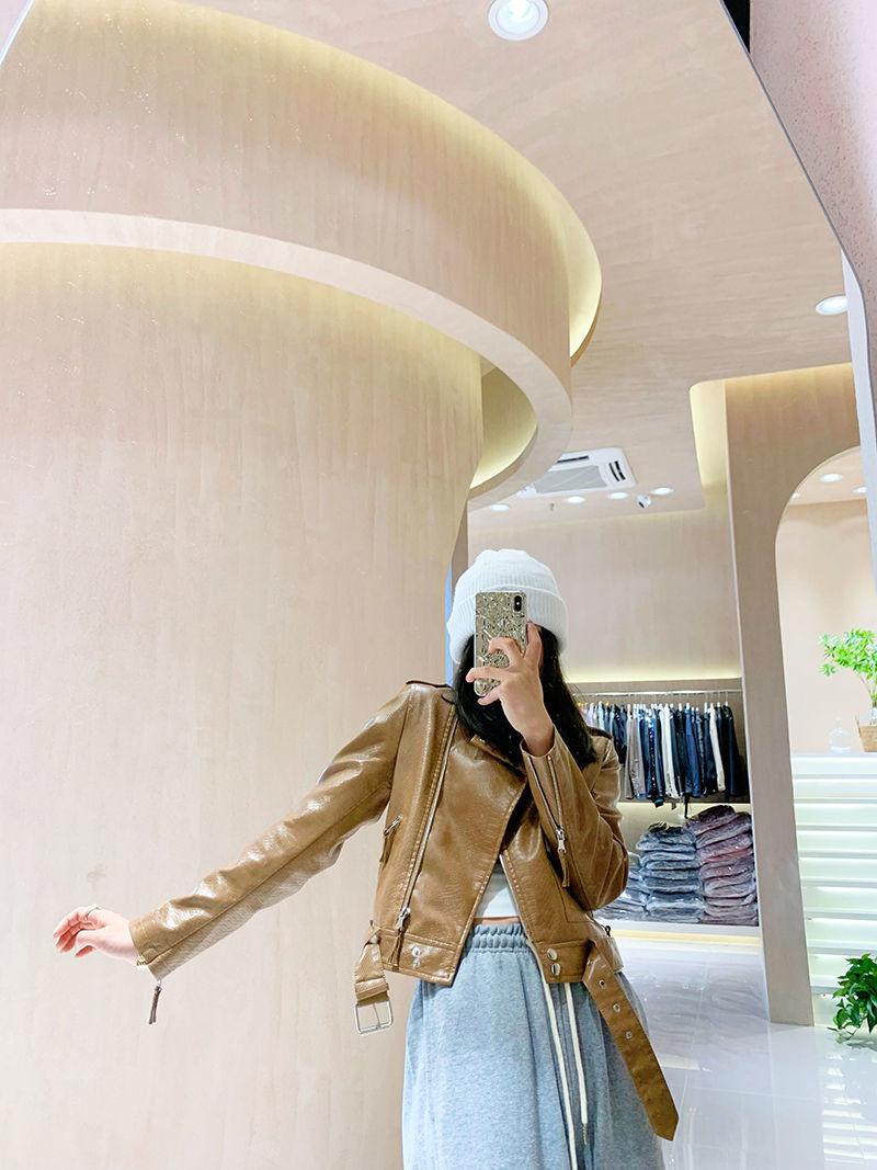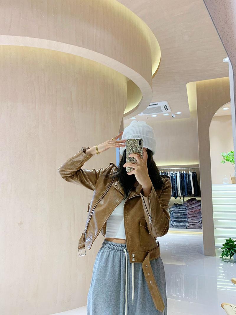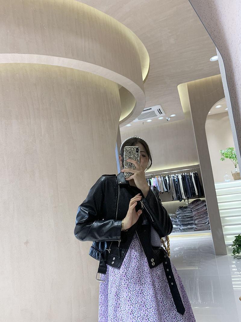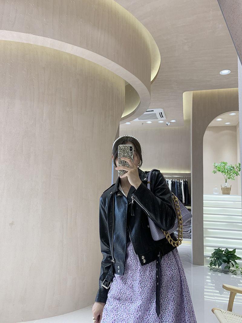 Chaqueta de cuero Simon Lerner para mujer, corta, primavera y otoño, nueva chaqueta marrón coreana con estampado de serpiente para bicicleta.