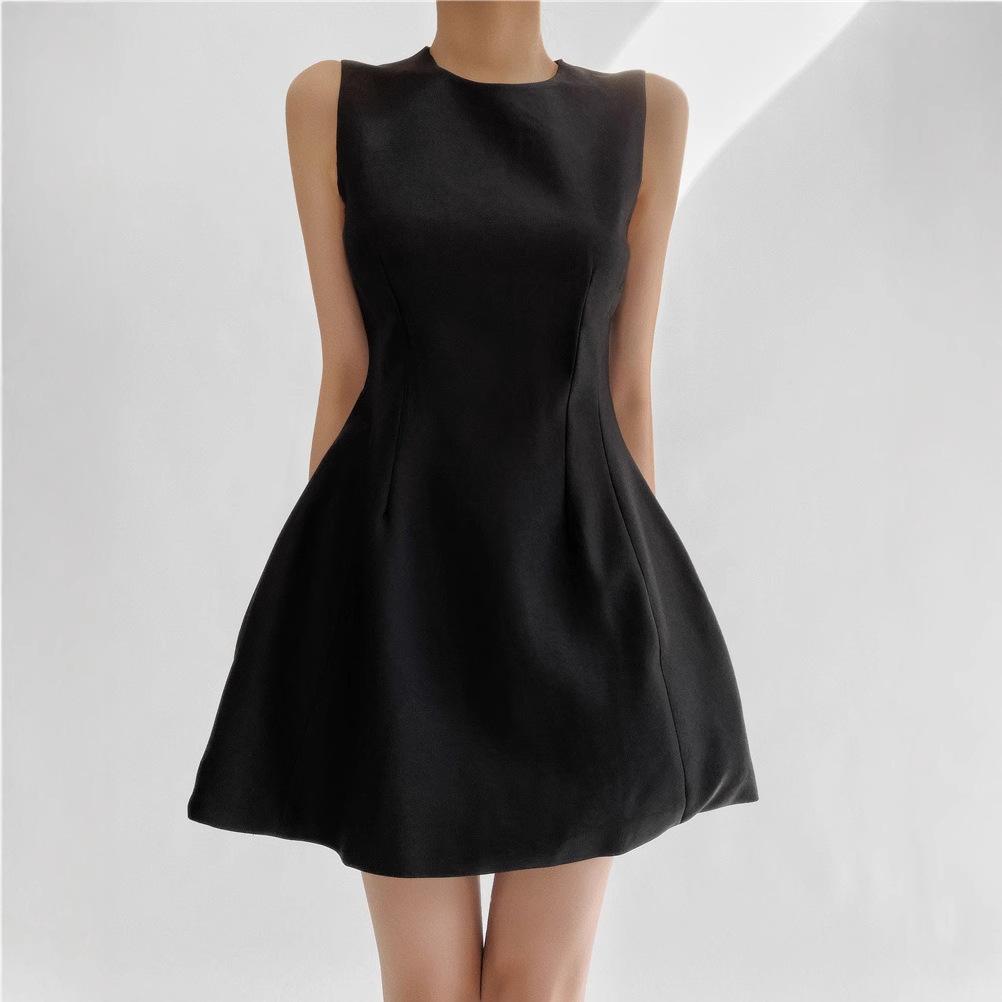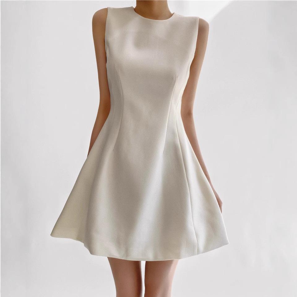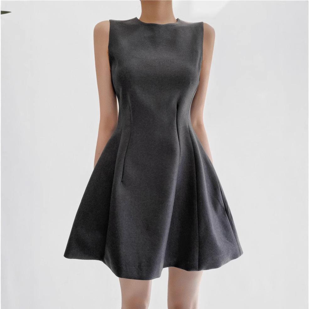Vestido sin mangas ajustado con temperamento francés para dama, nuevo estilo de verano 2025, vestido tipo chaleco con falda corta acampanada y cintura adelgazante