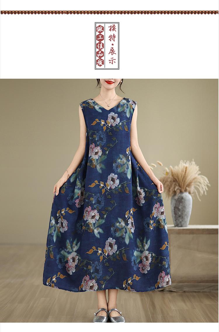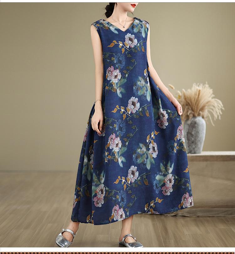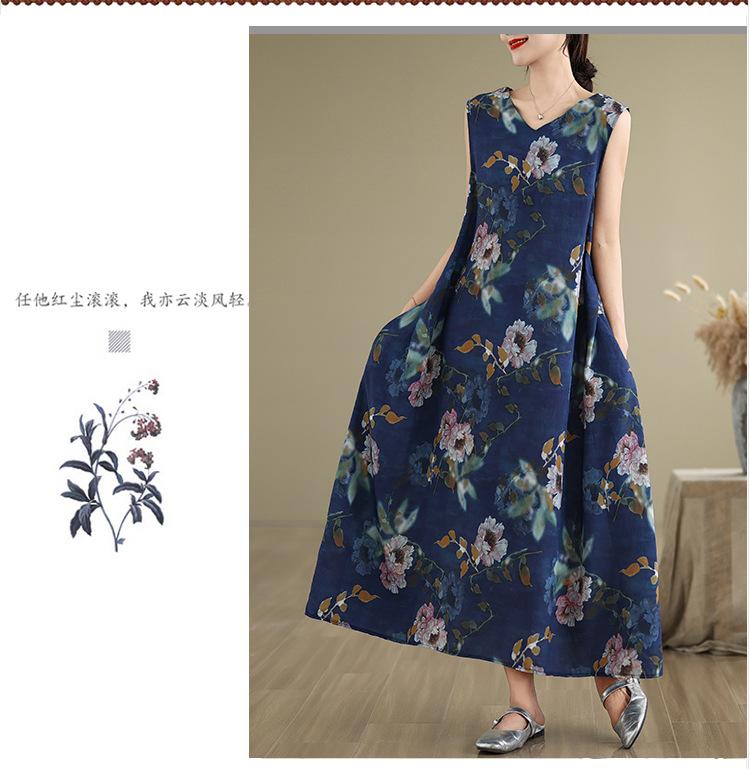 Vestido largo con escote en V y sin mangas para mujer, talla grande, estilo gordito, 2025