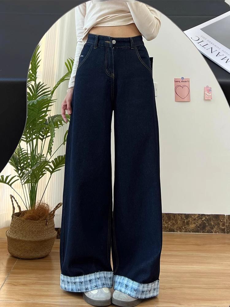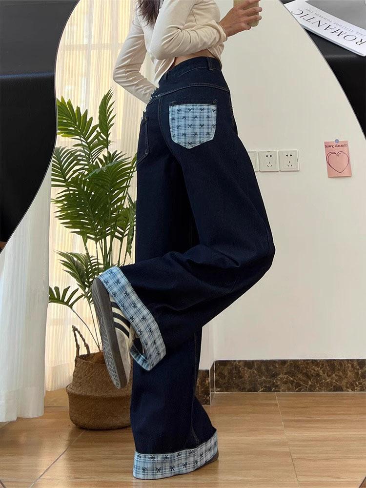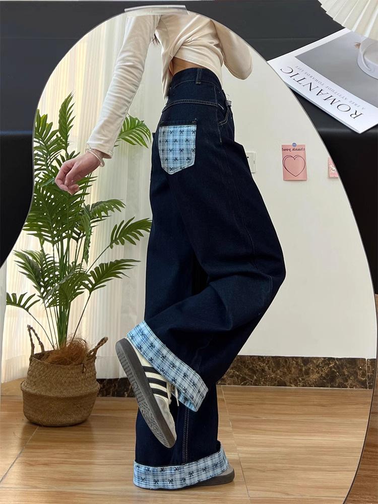 Jeans Lavados Retro Americanos de Talla Grande con Costuras de Mariposa para Mujer 2025 Verano Nuevo Look Adelgazante Holgado Pantalones Rectos