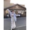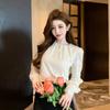 Camisa holgada de manga larga con costuras de encaje para mujer, primavera 2025, cuello polo, elegante, informal, combinable con todo.