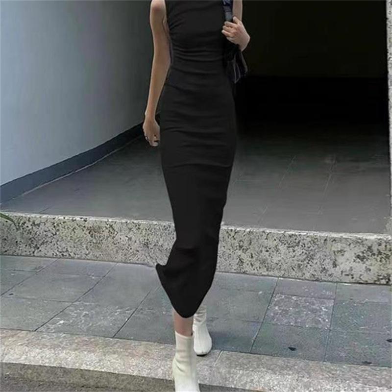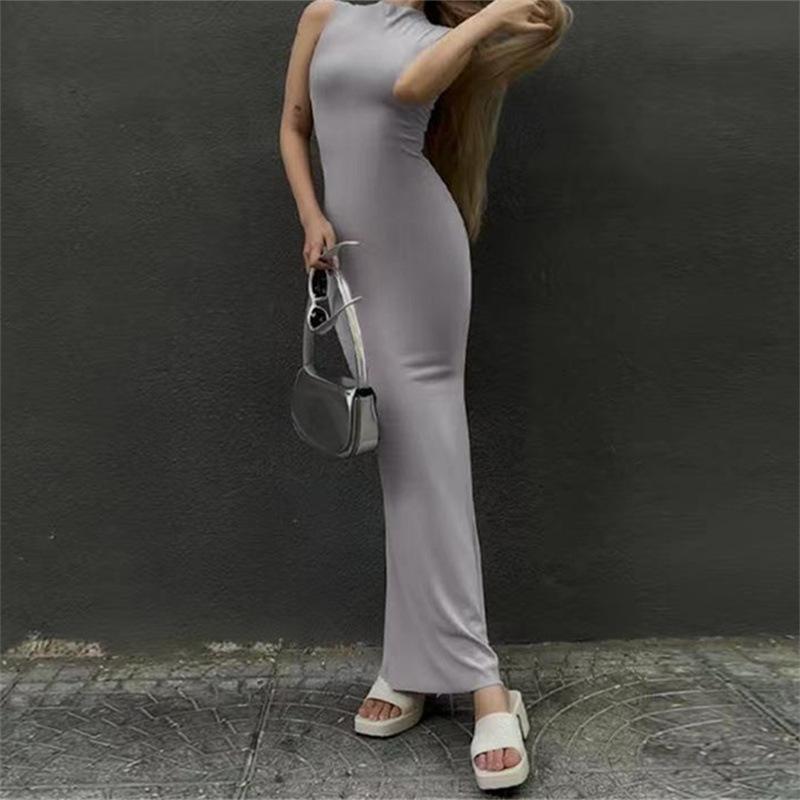 Vestido de Moda Transfronteriza Europea y Americana con Aspecto Adelgazante Amazon 2023 Verano Nuevo Sin Mangas Color Puro Elegante Vestido Largo