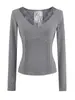 Camiseta de manga larga con cuello en V y costuras de encaje sexy estilo Spice Girl, estilo Pure Desire, ajustada, corta y ajustada para mujer
