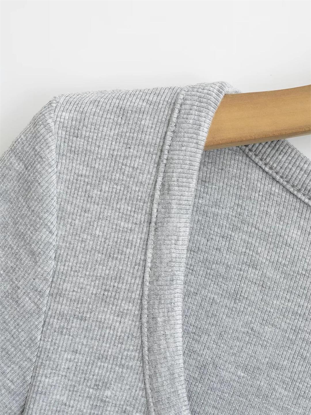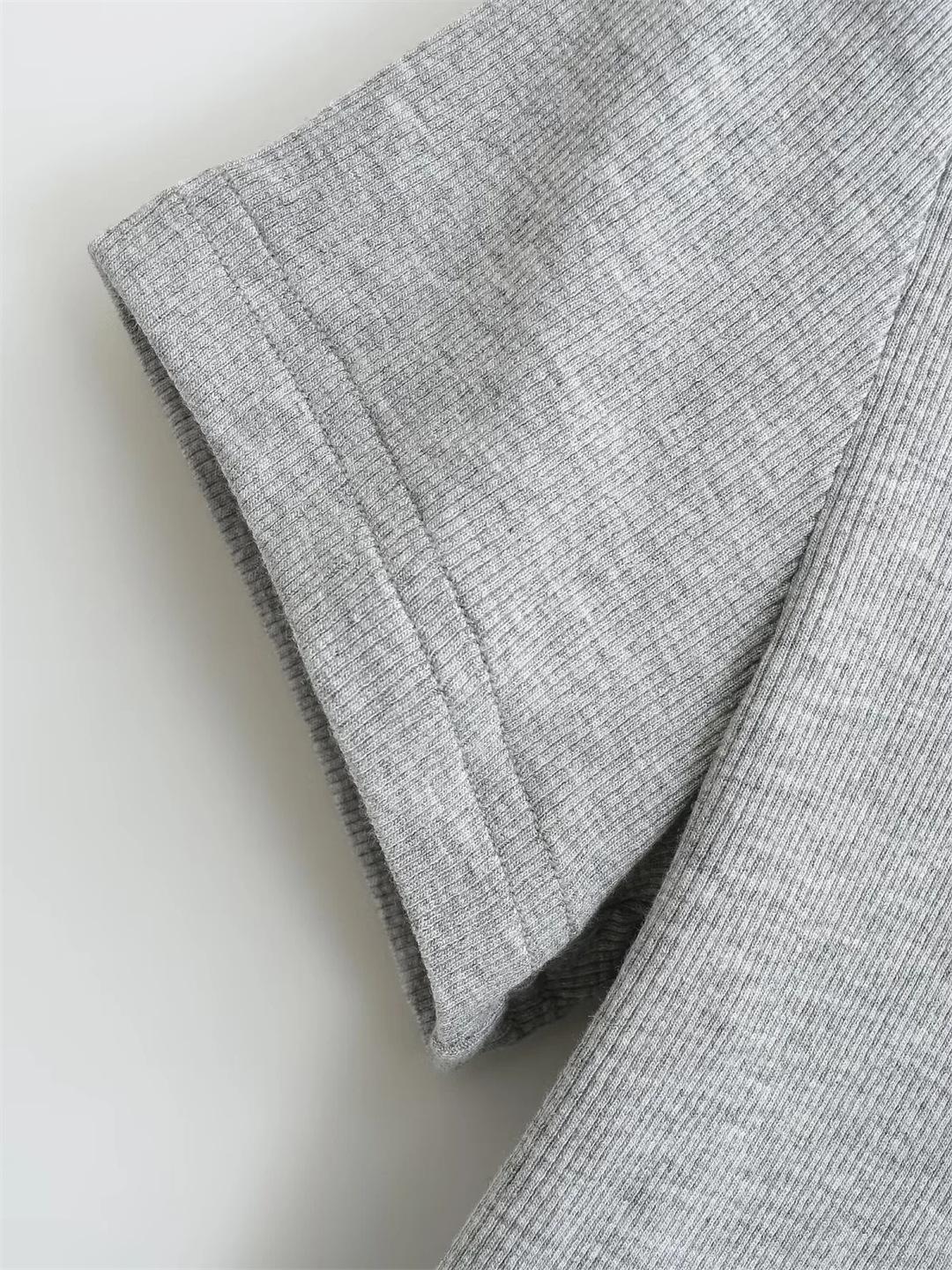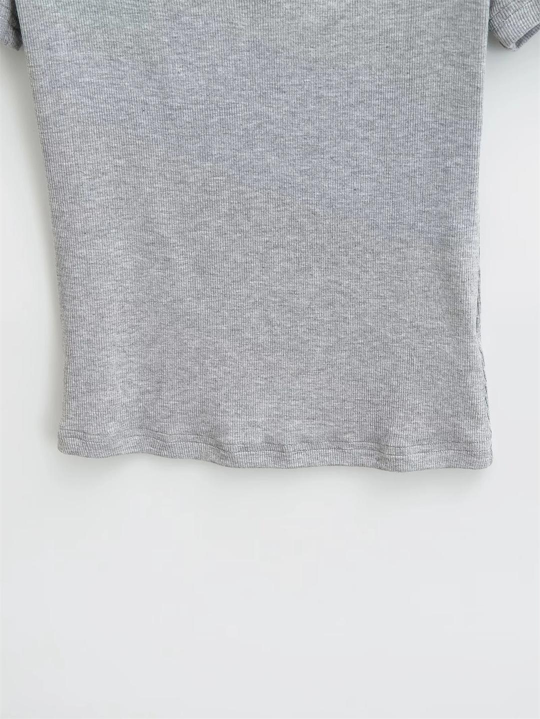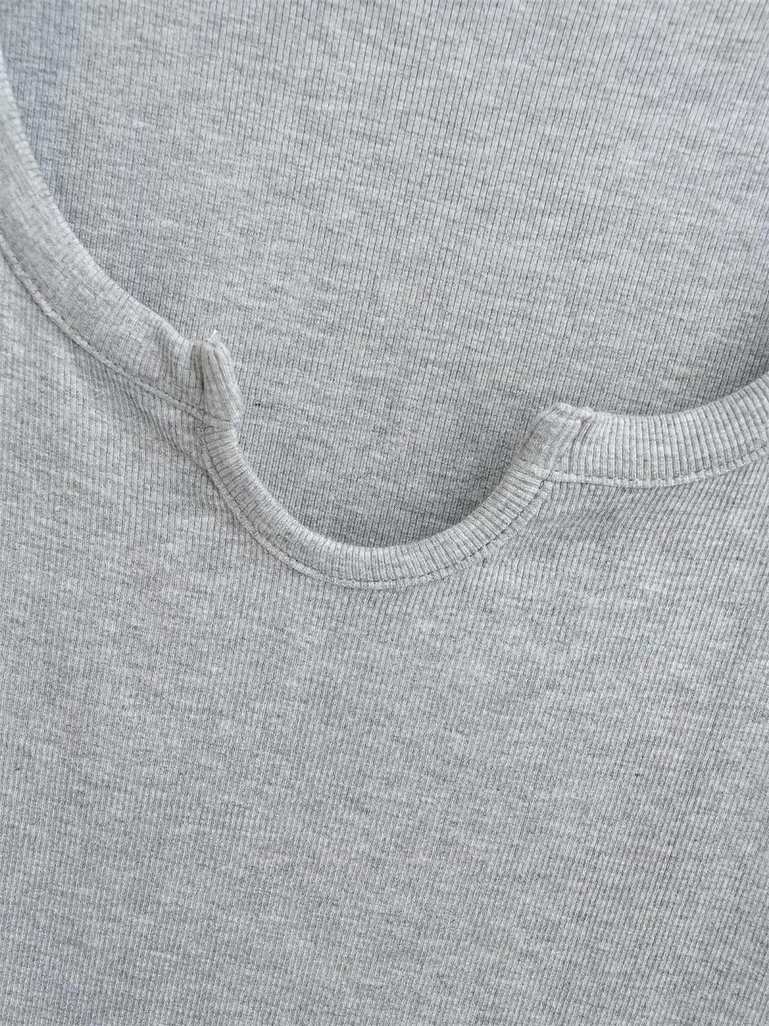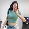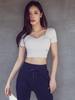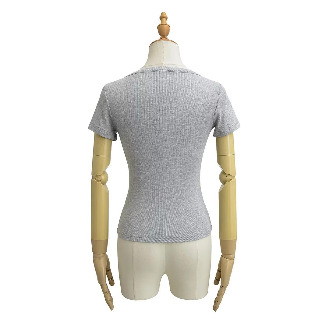 Camiseta Americana Estilo Chica Caliente con Hilo Grande de Cuello U Profundo de Manga Corta para Mujer Deseo Puro Sexy Corte Bajo Ajustada Cintura Alta Corta