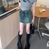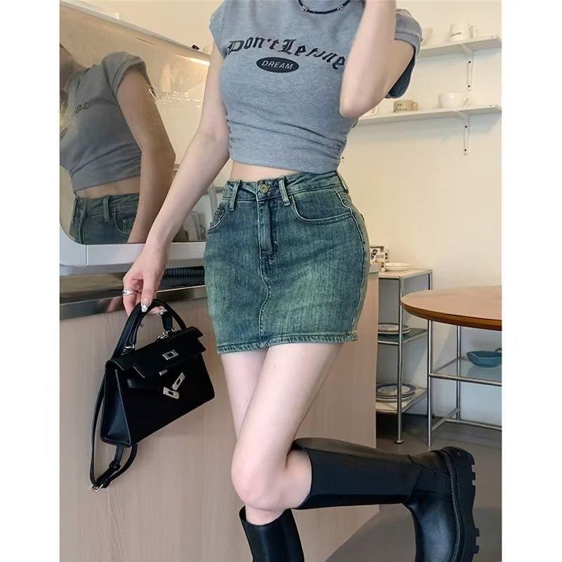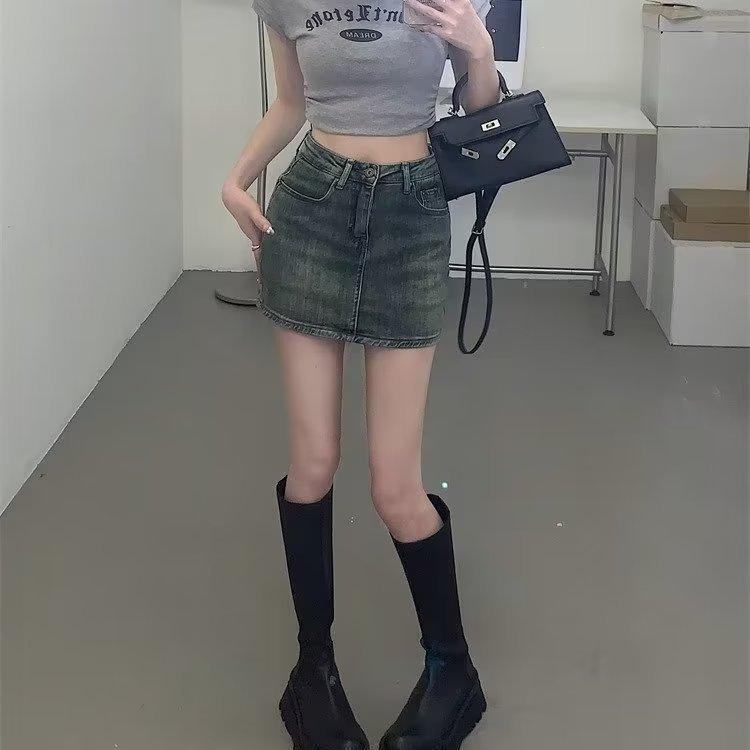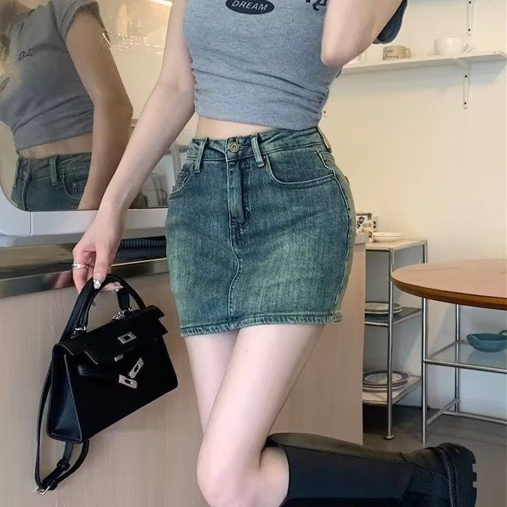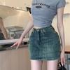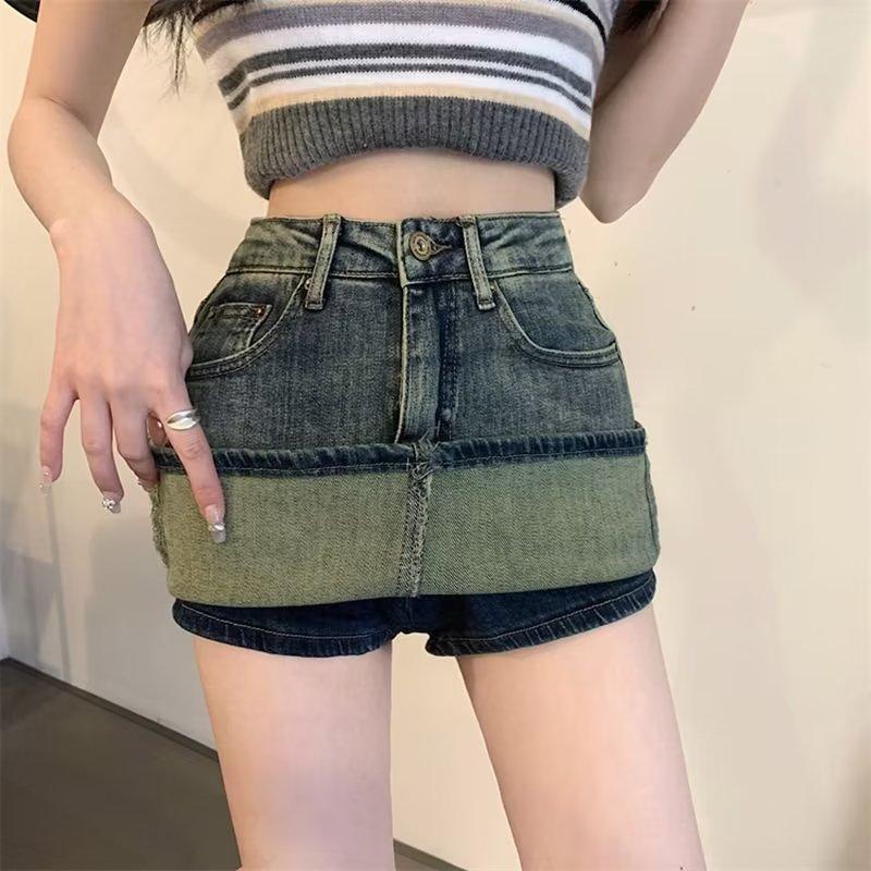 Falda corta de verano a la moda para mujer, de cintura alta, estilo retro, adelgazante, antideslumbrante, de mezclilla, de media longitud a la cadera.