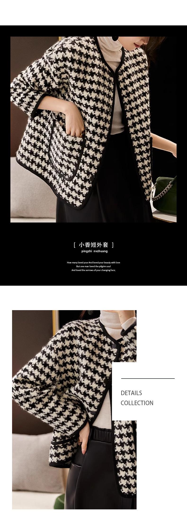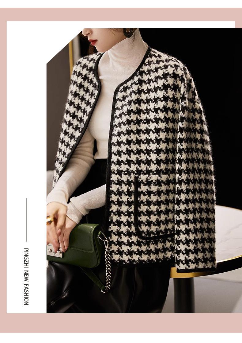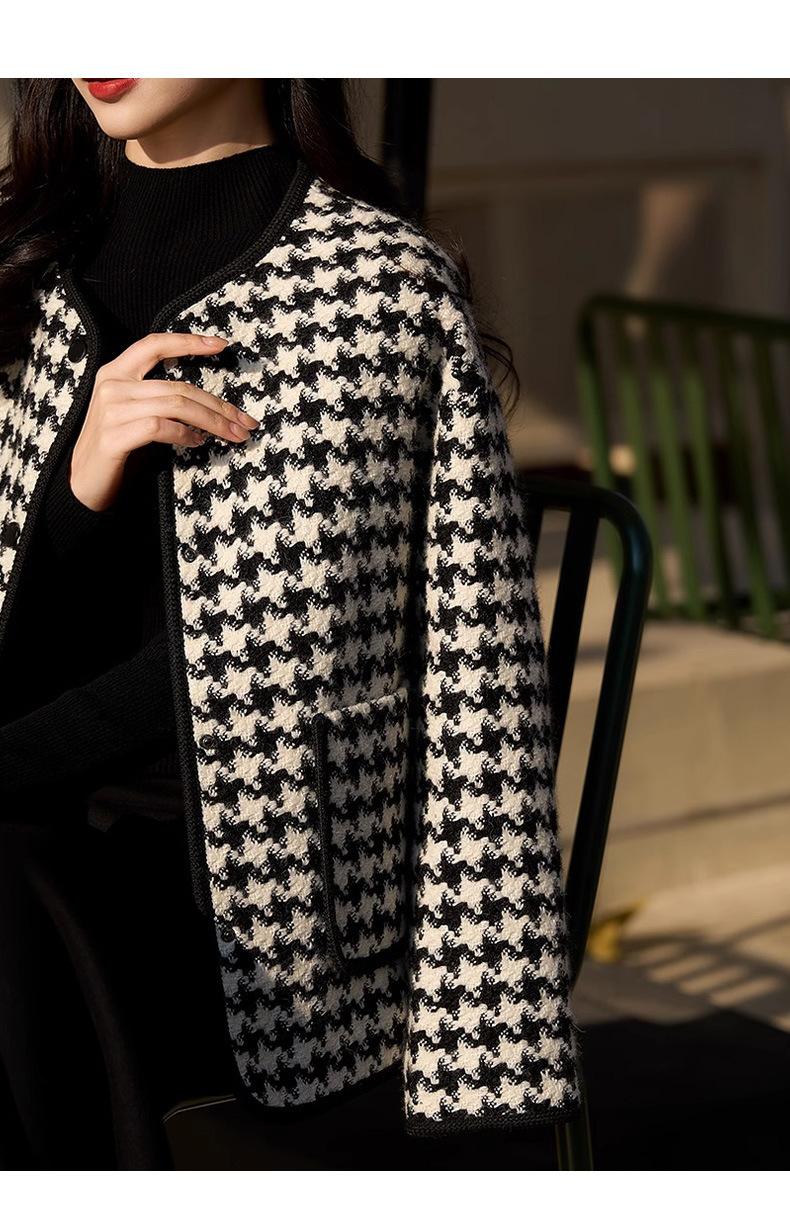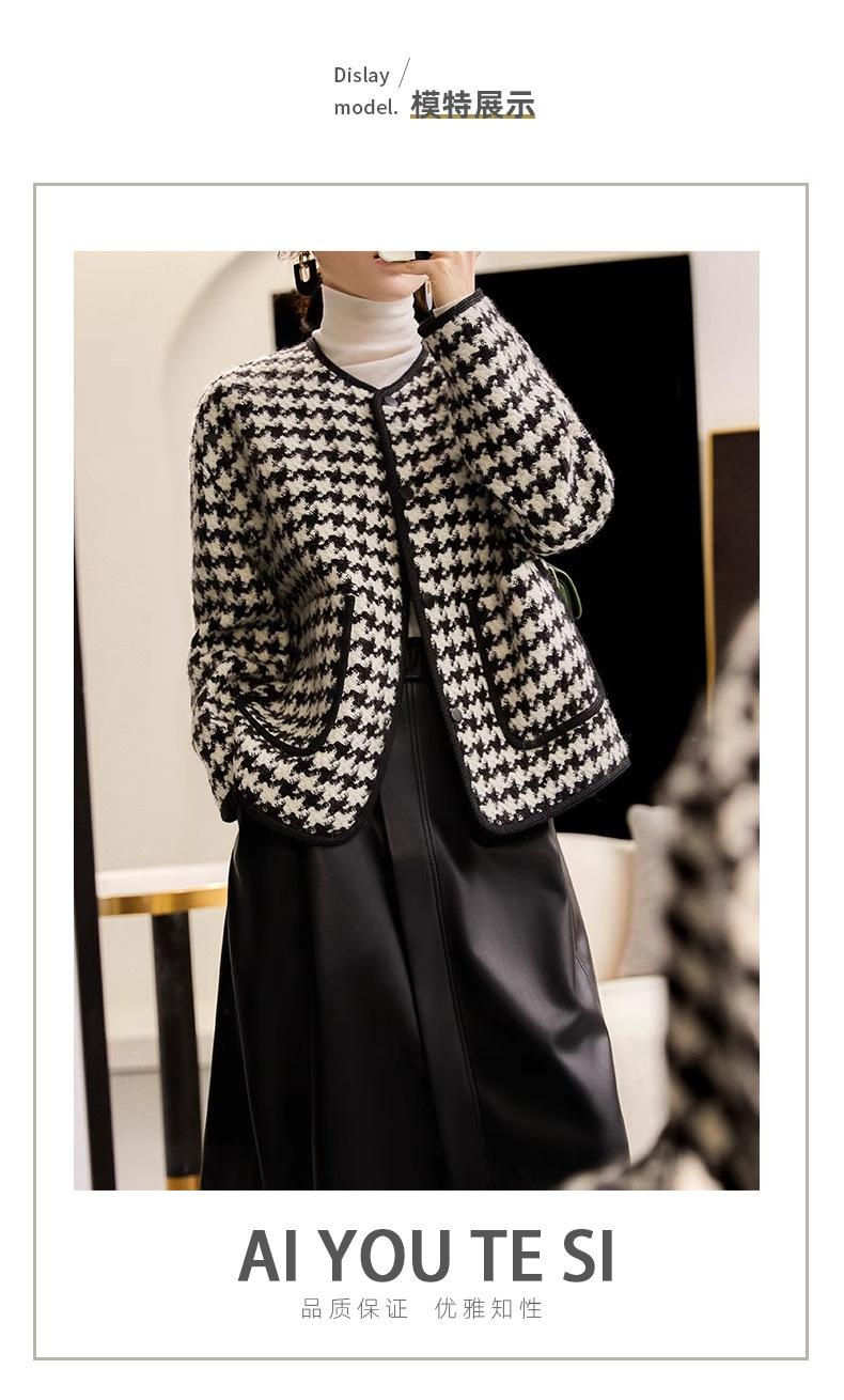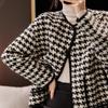 Abrigo de pata de gallo de lana con un top de cuadros tweed estilo Chanel chic, ropa de mujer nueva para otoño 2025 con un toque de alta gama