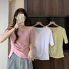 Camiseta blanca con cuello en V, plisada y ajustada para mujer, primavera 2025, nueva moda de nicho, temperamento de manga corta