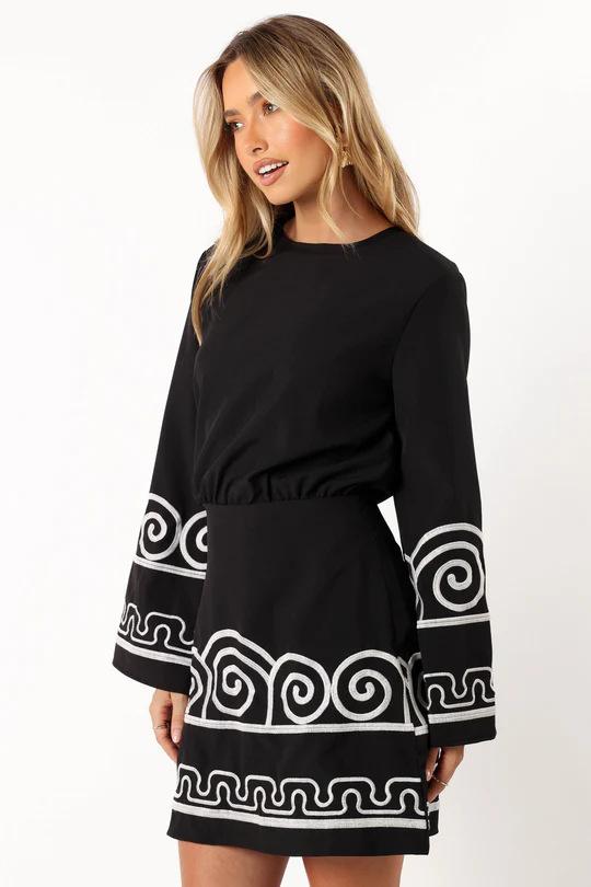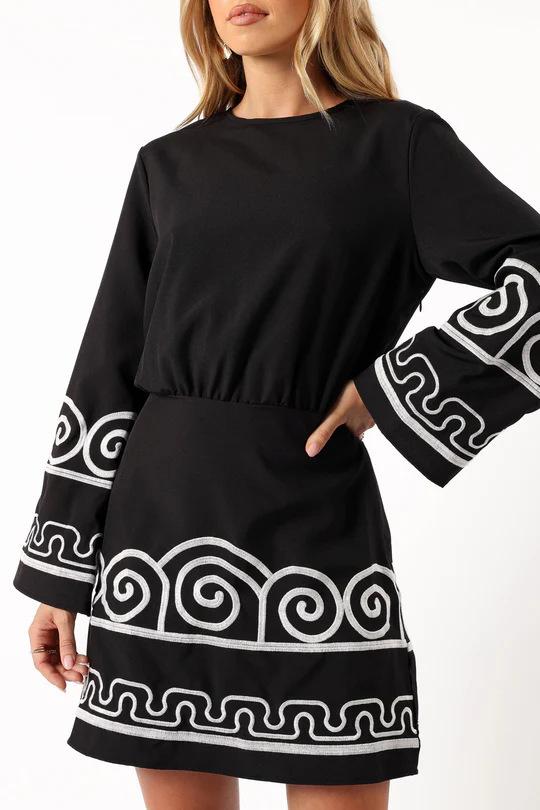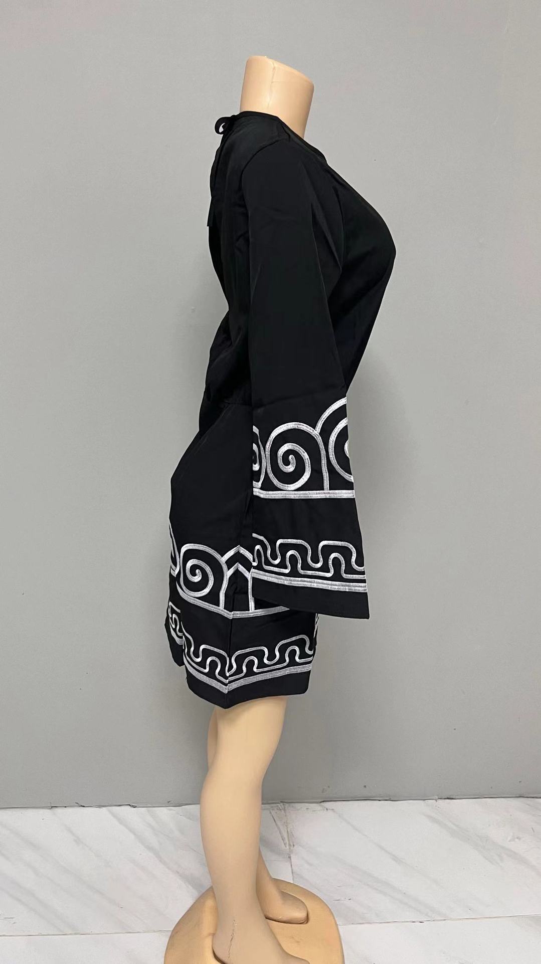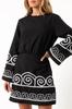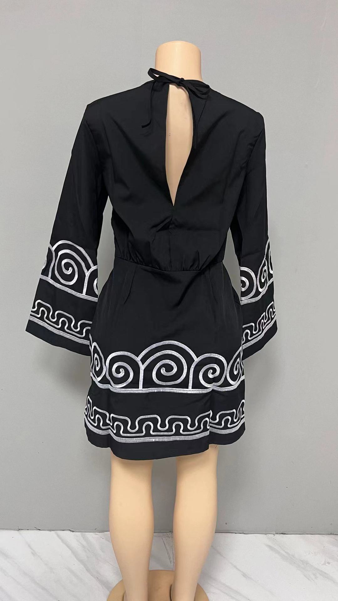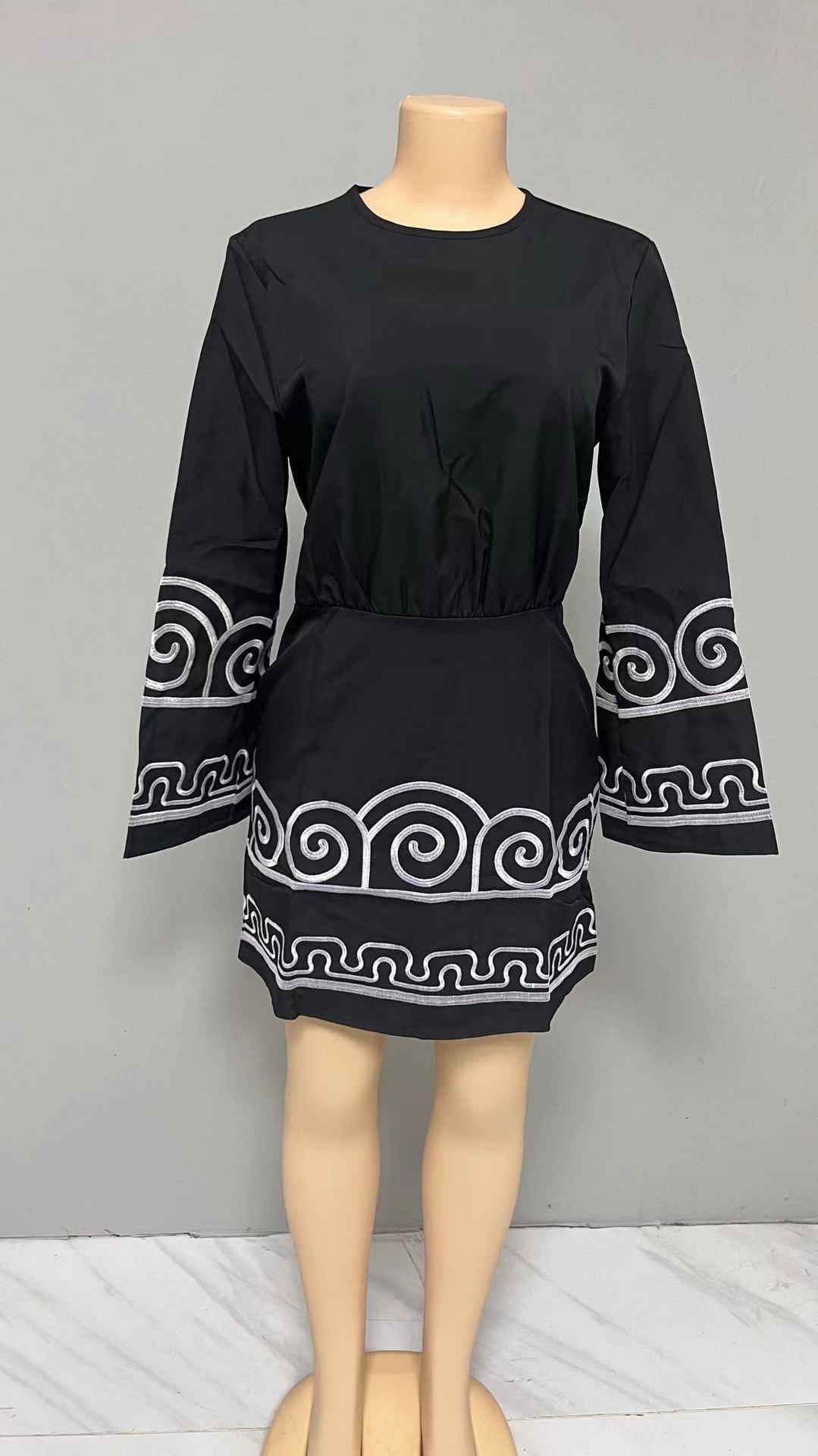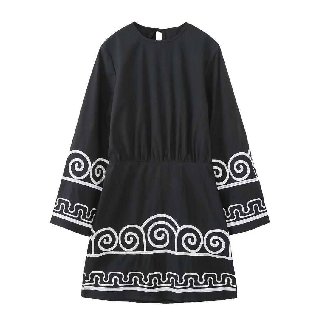 Ropa de Mujer Transfronteriza Europea y Americana de Amazon 2024 Otoño Nuevo Estilo Cuello Redondo Bordado Manga Larga Vestido Descubierto