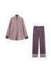 Ropa transfronteriza para mujer europea y americana, nueva moda primavera 2025, camisa de solapa de manga larga de satén, pantalones rectos a juego de color
