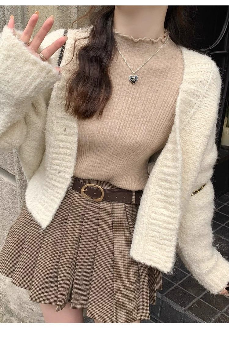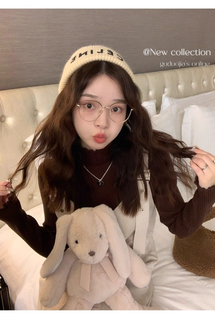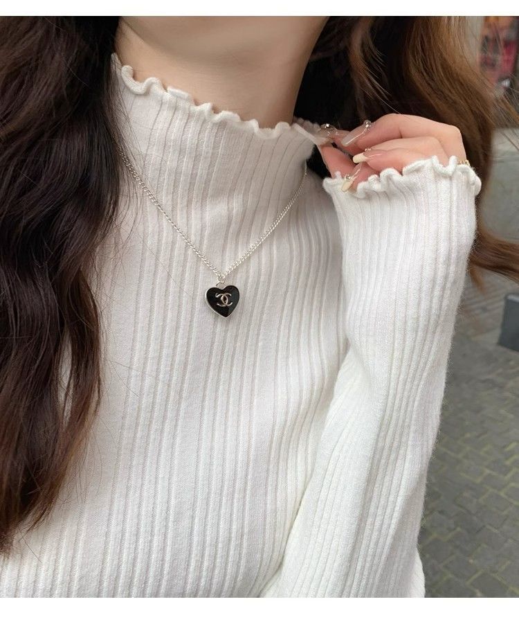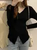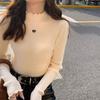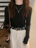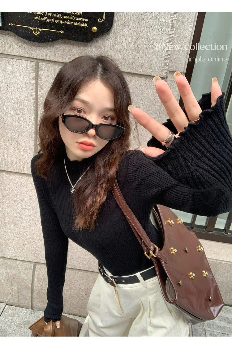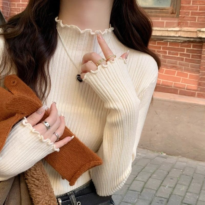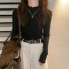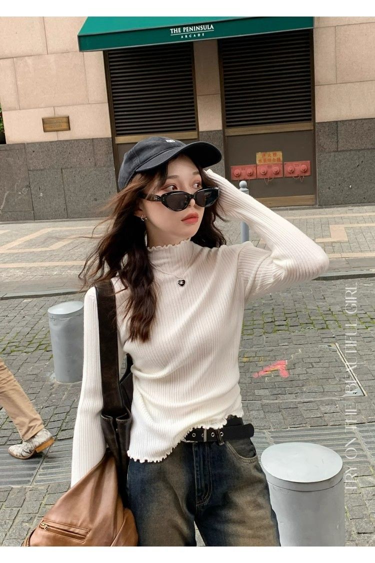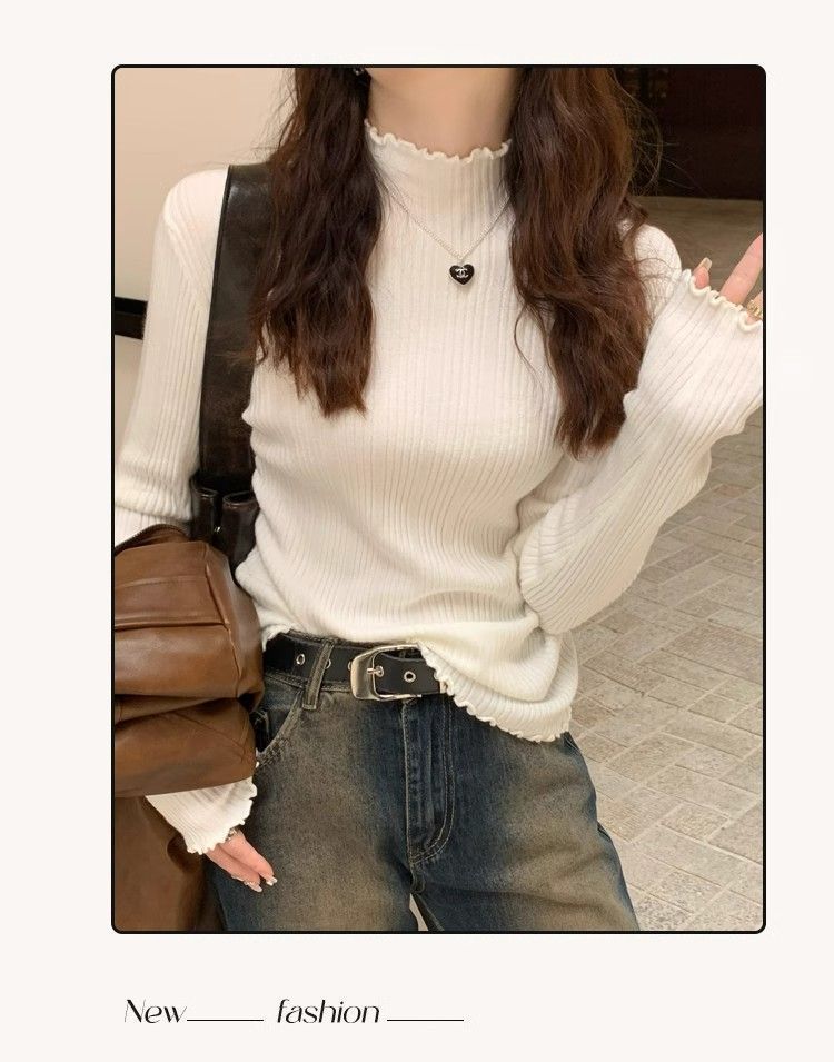 Camiseta Básica con Borde Volanteado para Mujer, Suéter Ajustado de Otoño e Invierno, Nuevo Top de Punto Elegante de Primavera y Otoño de Manga Larga 2025