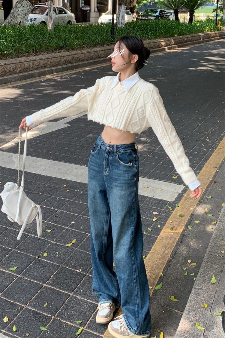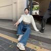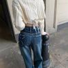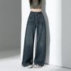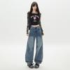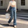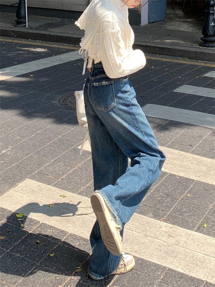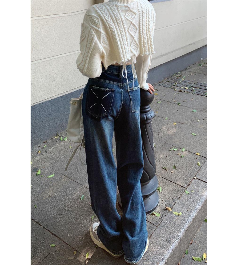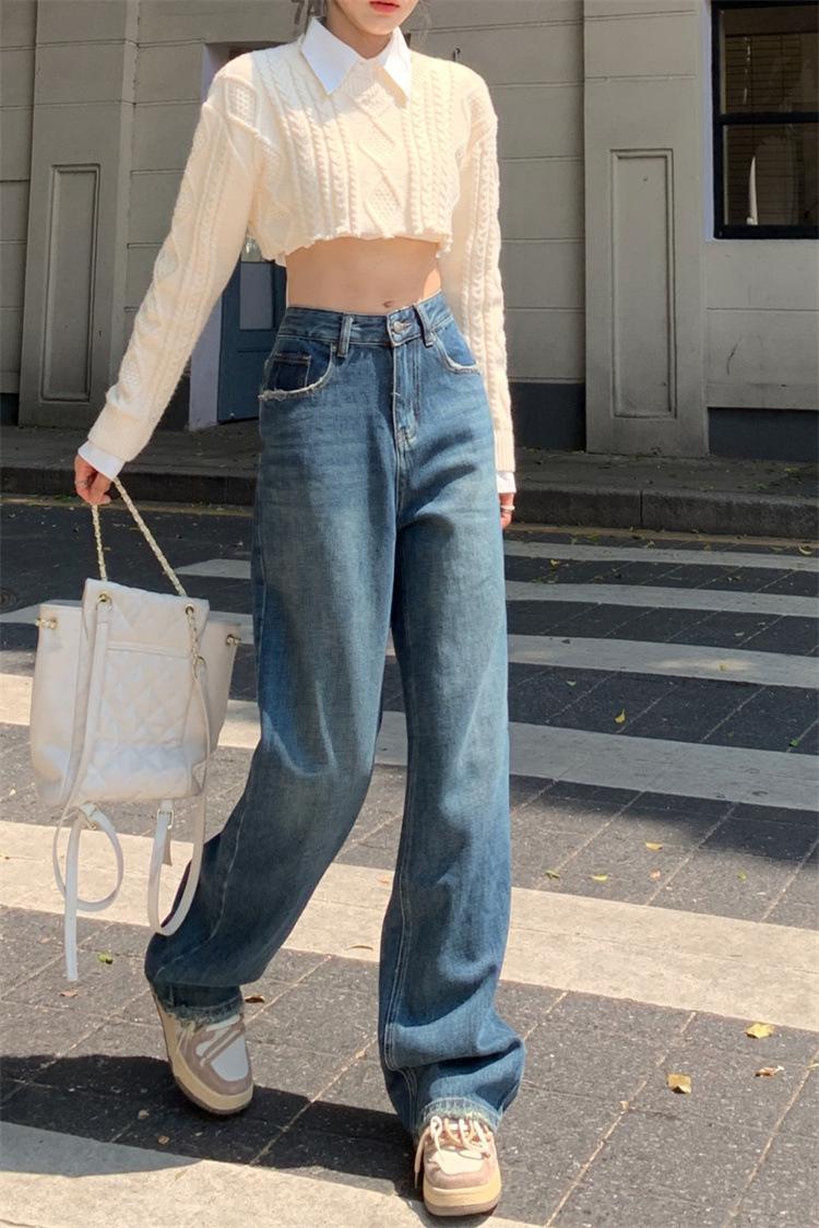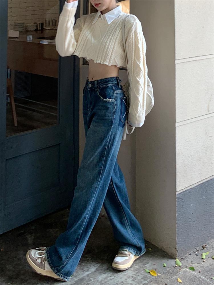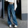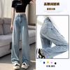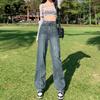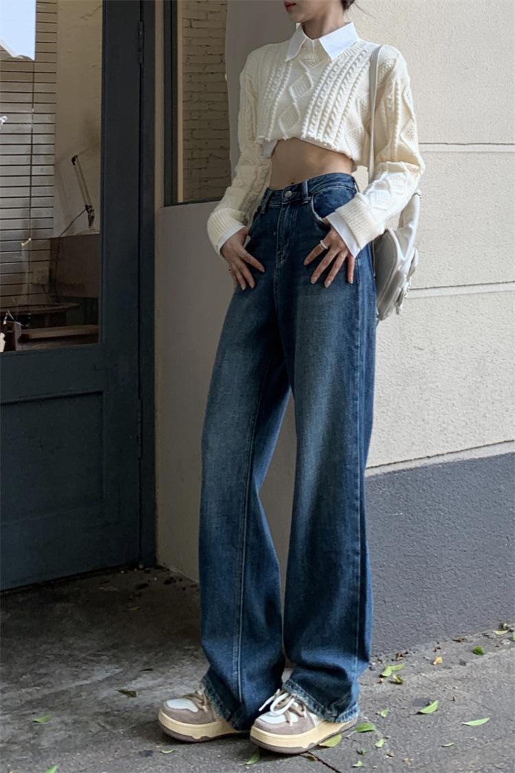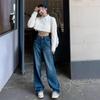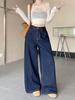 Jeans Azul Oscuro para Mujer Verano 2025 Nuevo Cintura Alta Suelto Versátil Pierna Recta Largo hasta el Piso Pantalones de Pierna Ancha