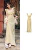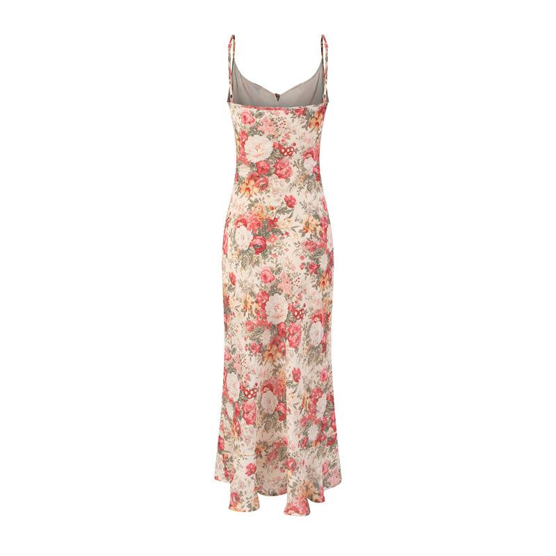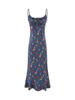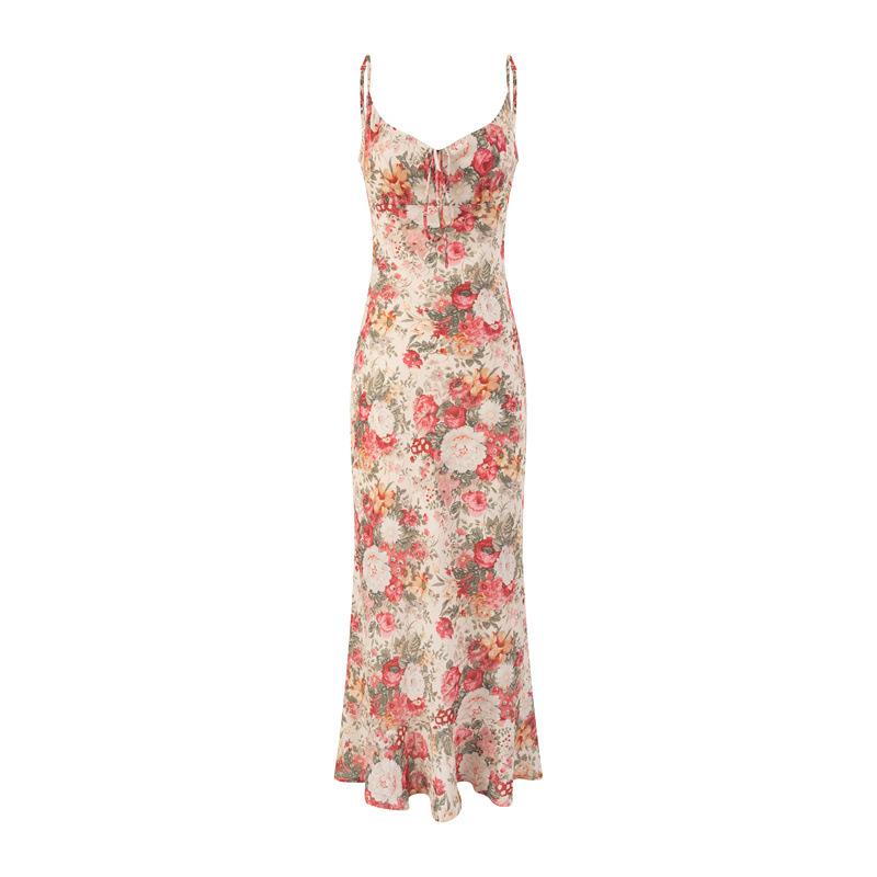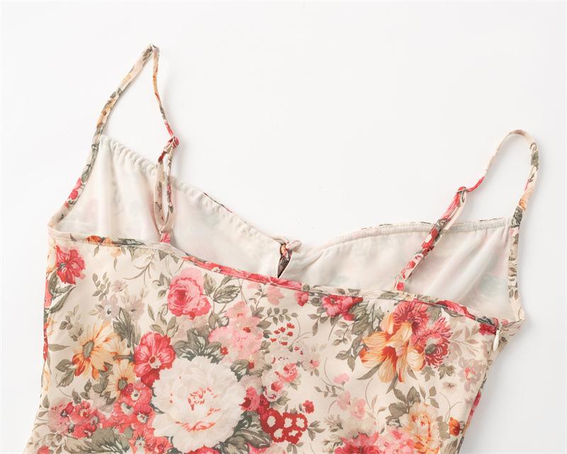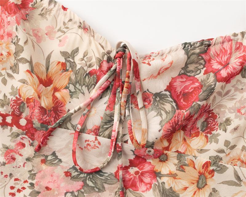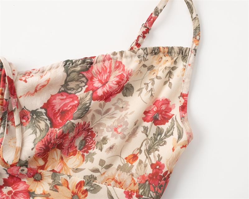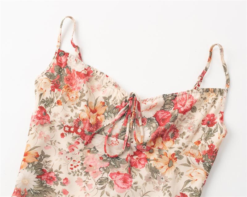 Vestido de Tirantes Vacacional de Verano con Estampado Floral Estilo Francés Falda Cola de Pescado Nuevo Verano Cuello en V Cintura con Cordones Mujer