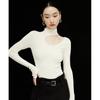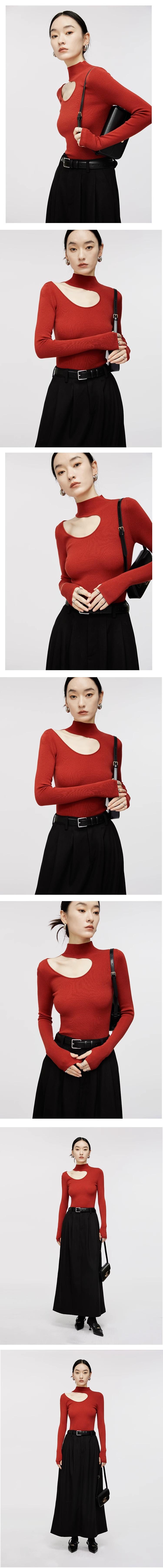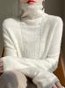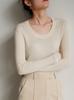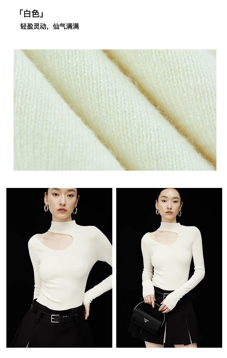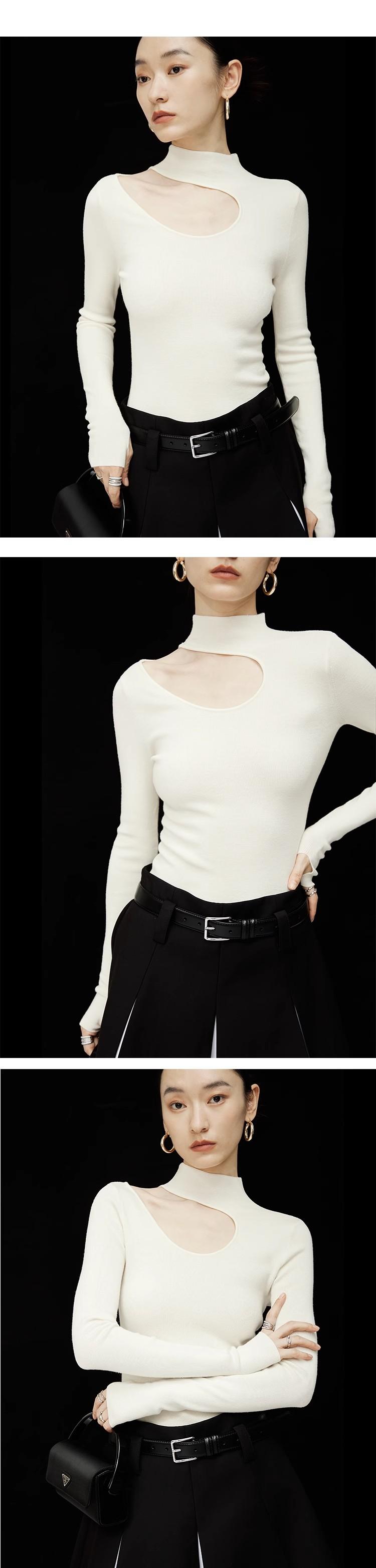 Suéter Base de Lana Merino Peinada 60% Oro Suave para Mujer, Suéter Ajustado de Manga Larga con Calados