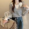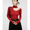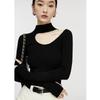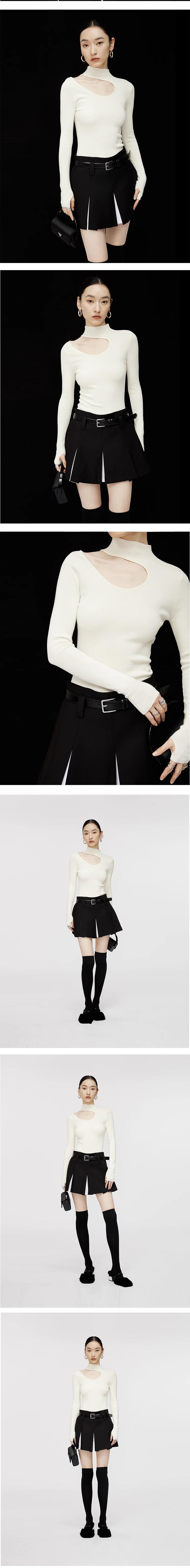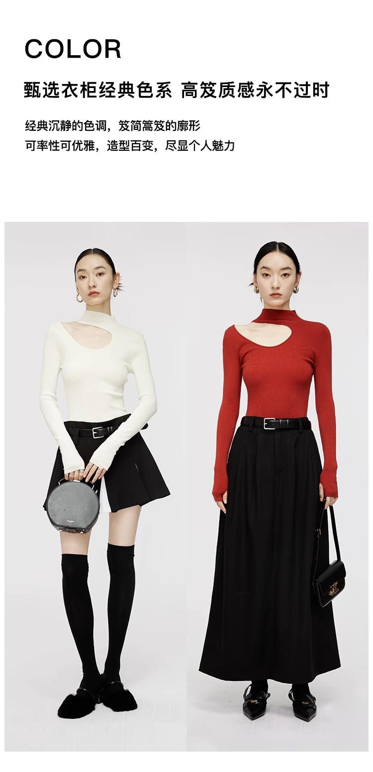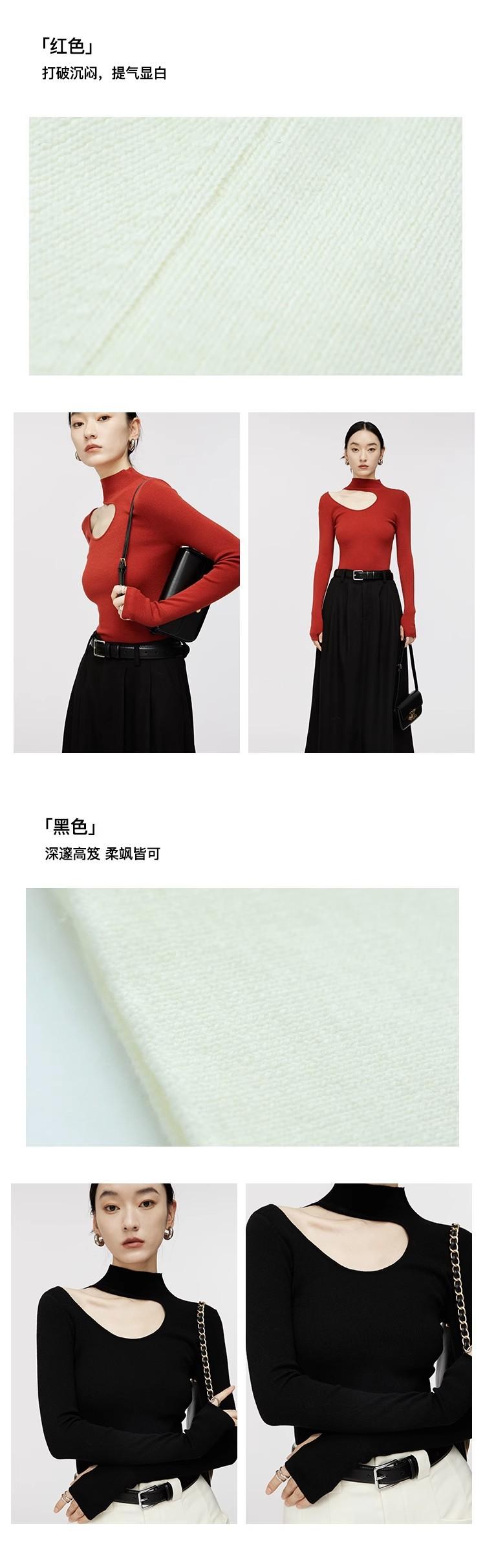 Suéter Base de Lana Merino Peinada 60% Oro Suave para Mujer, Suéter Ajustado de Manga Larga con Calados