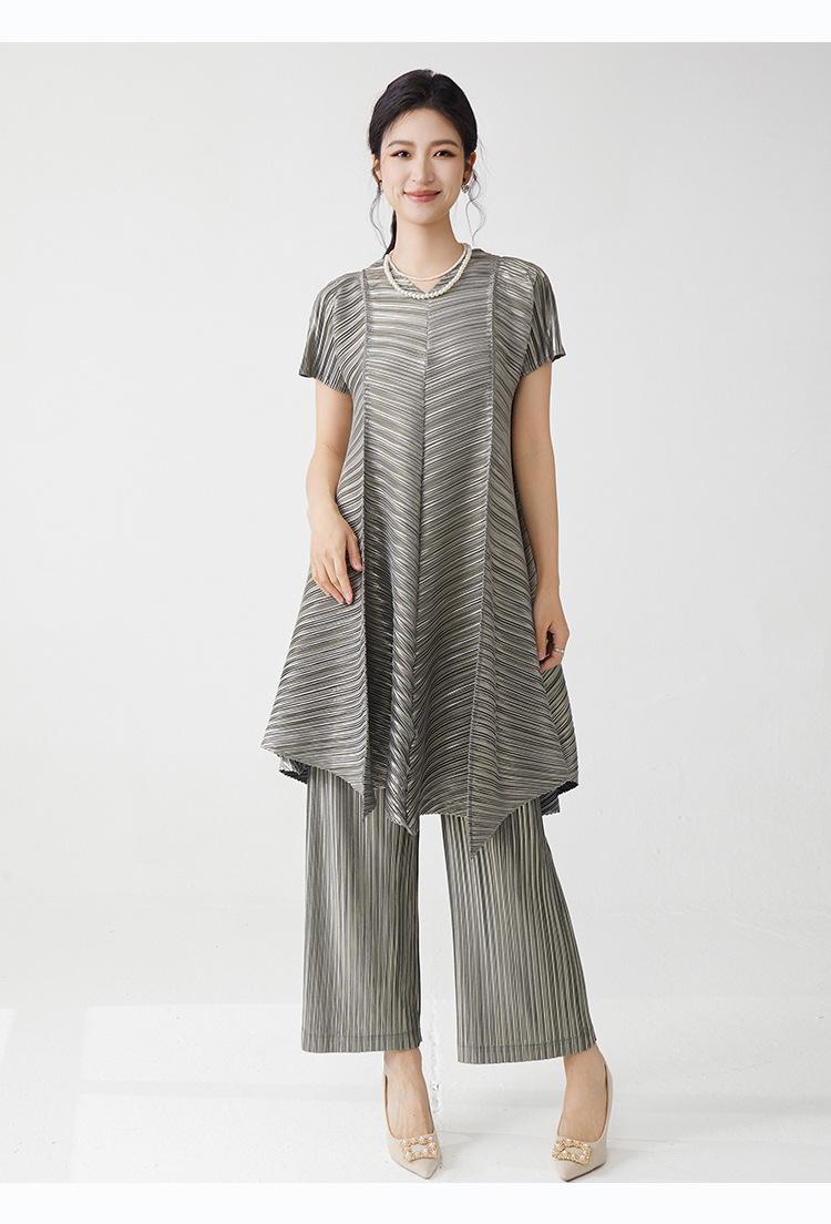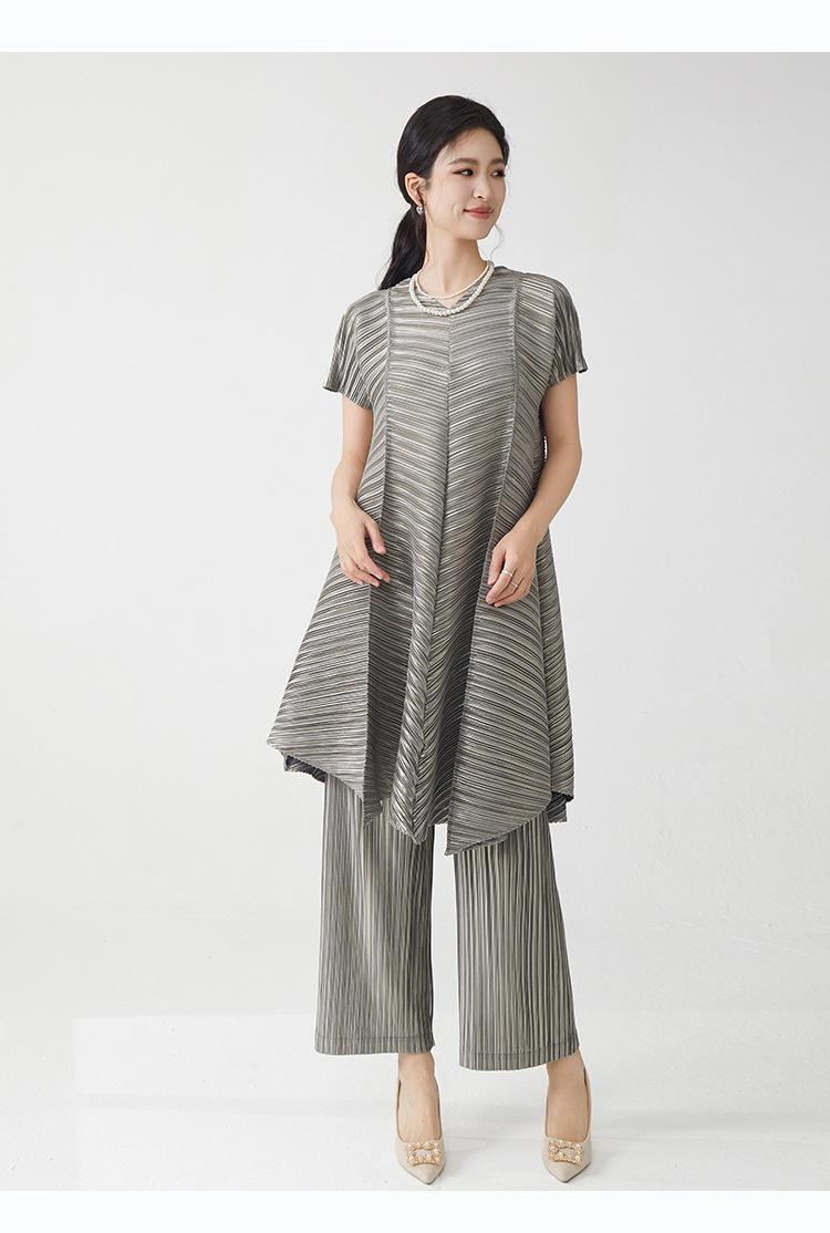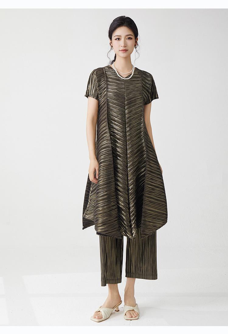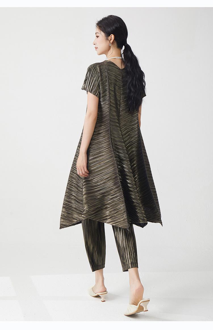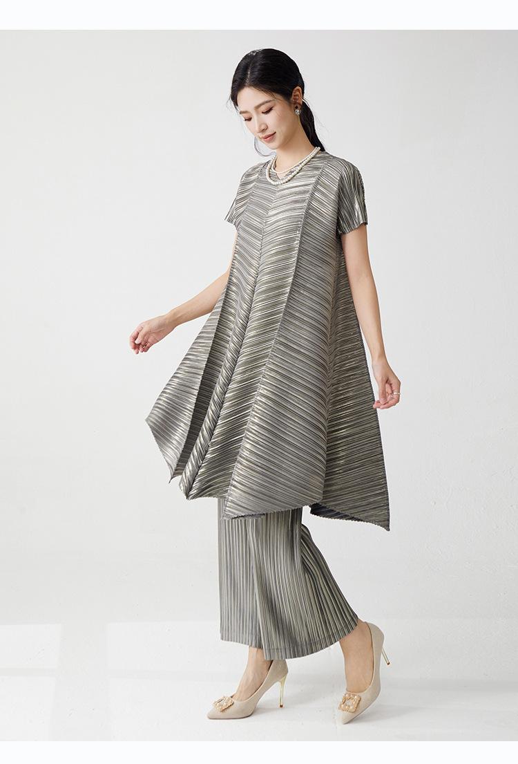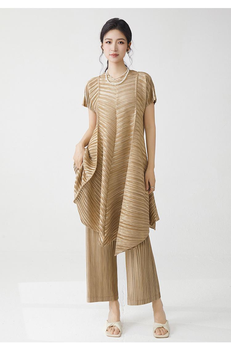 Traje de temperamento Miyake transfronterizo para mujer, falda de alta gama, vestido irregular, pantalones rectos, talla grande, conjunto de dos piezas de moda