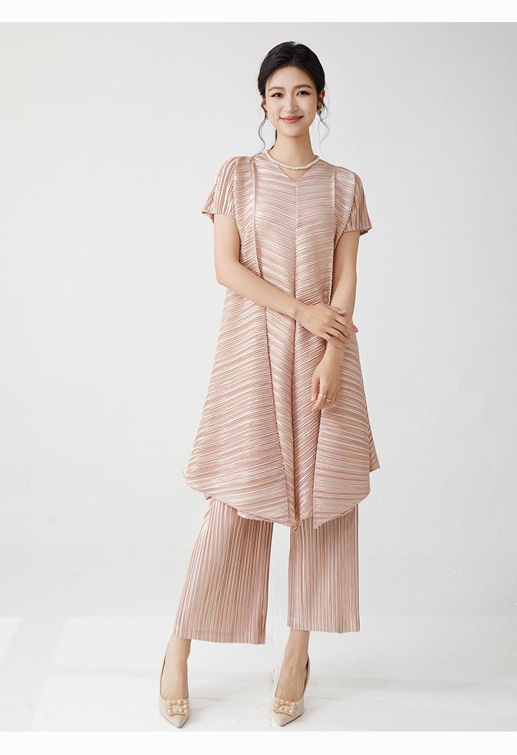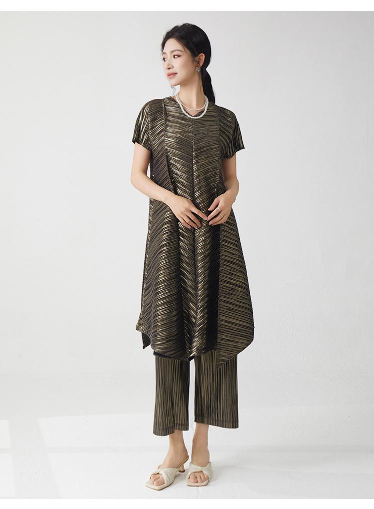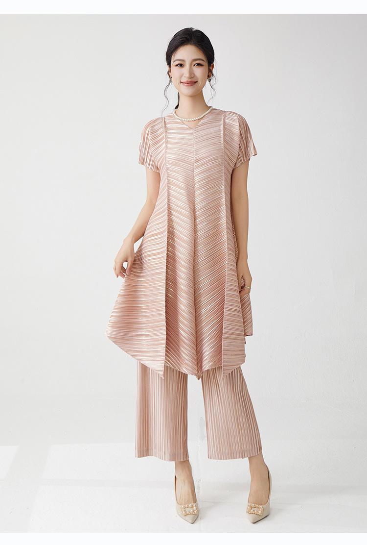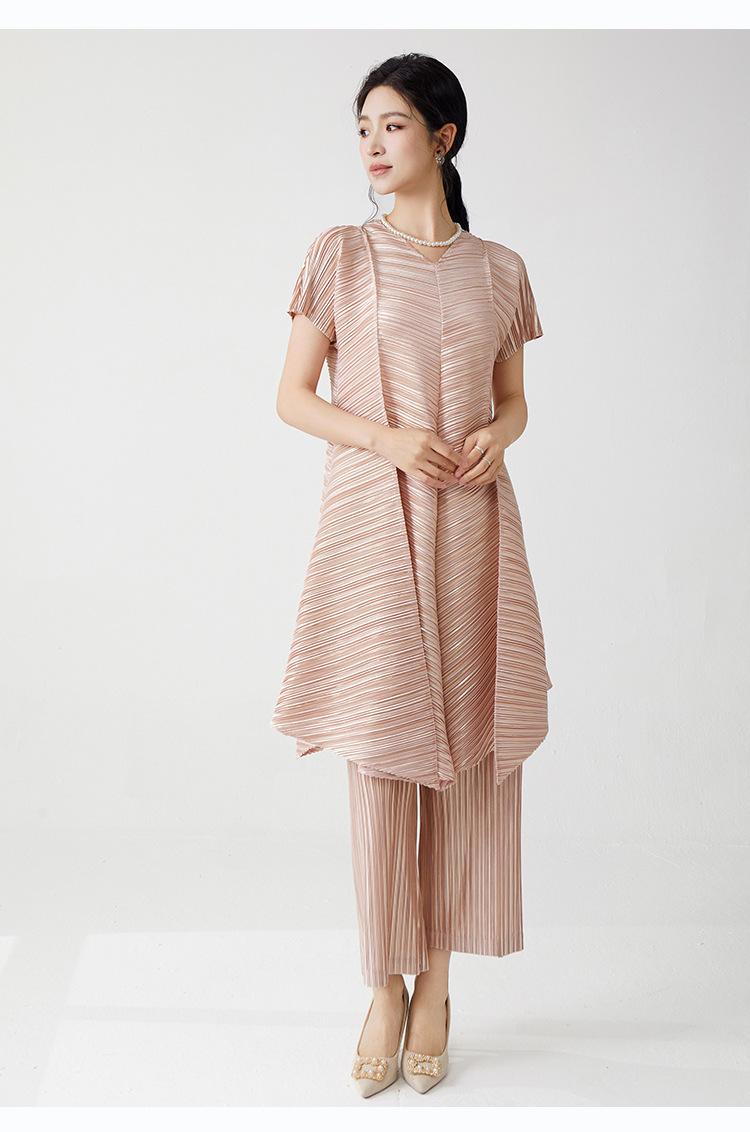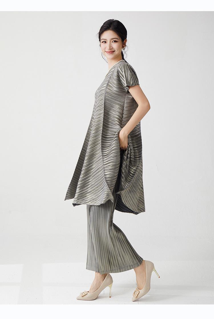 Traje de temperamento Miyake transfronterizo para mujer, falda de alta gama, vestido irregular, pantalones rectos, talla grande, conjunto de dos piezas de moda