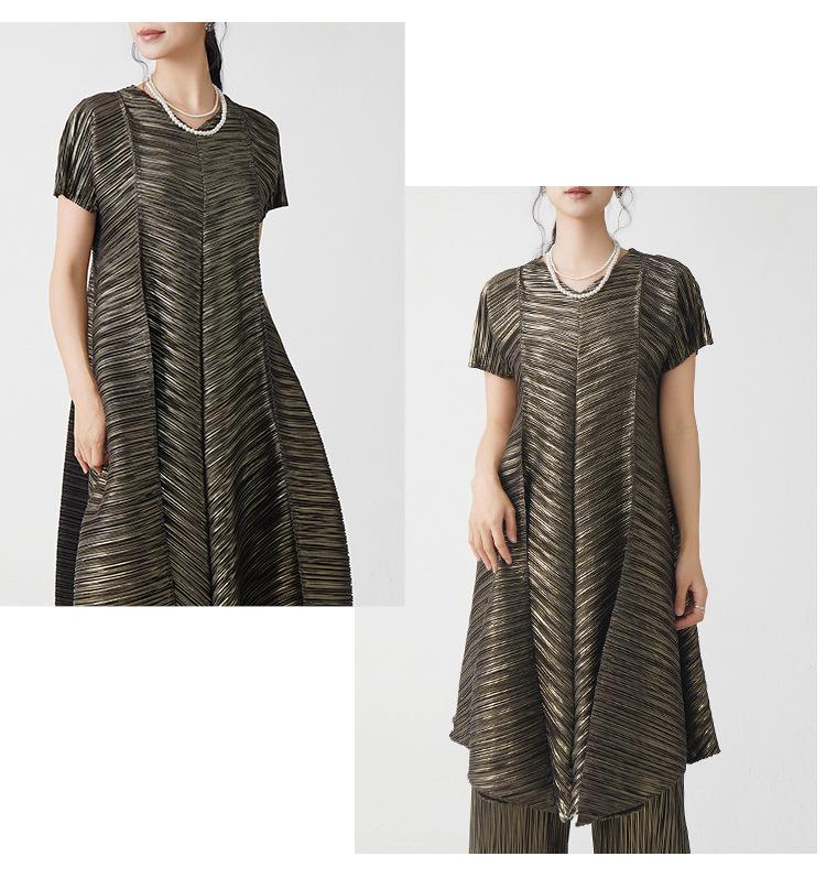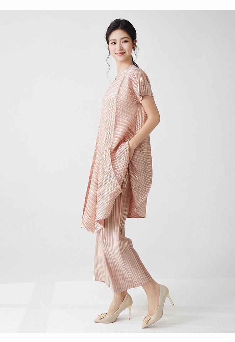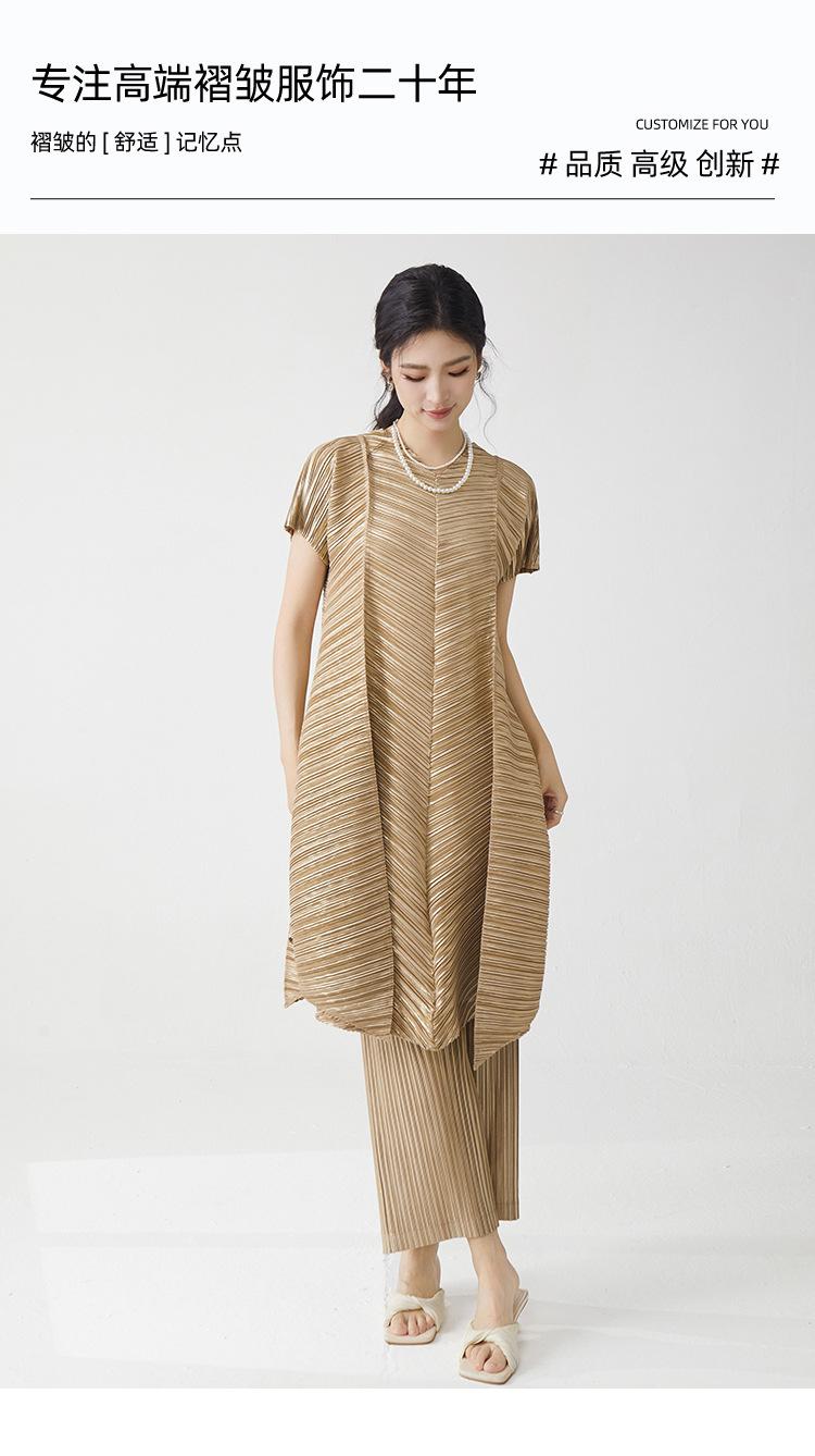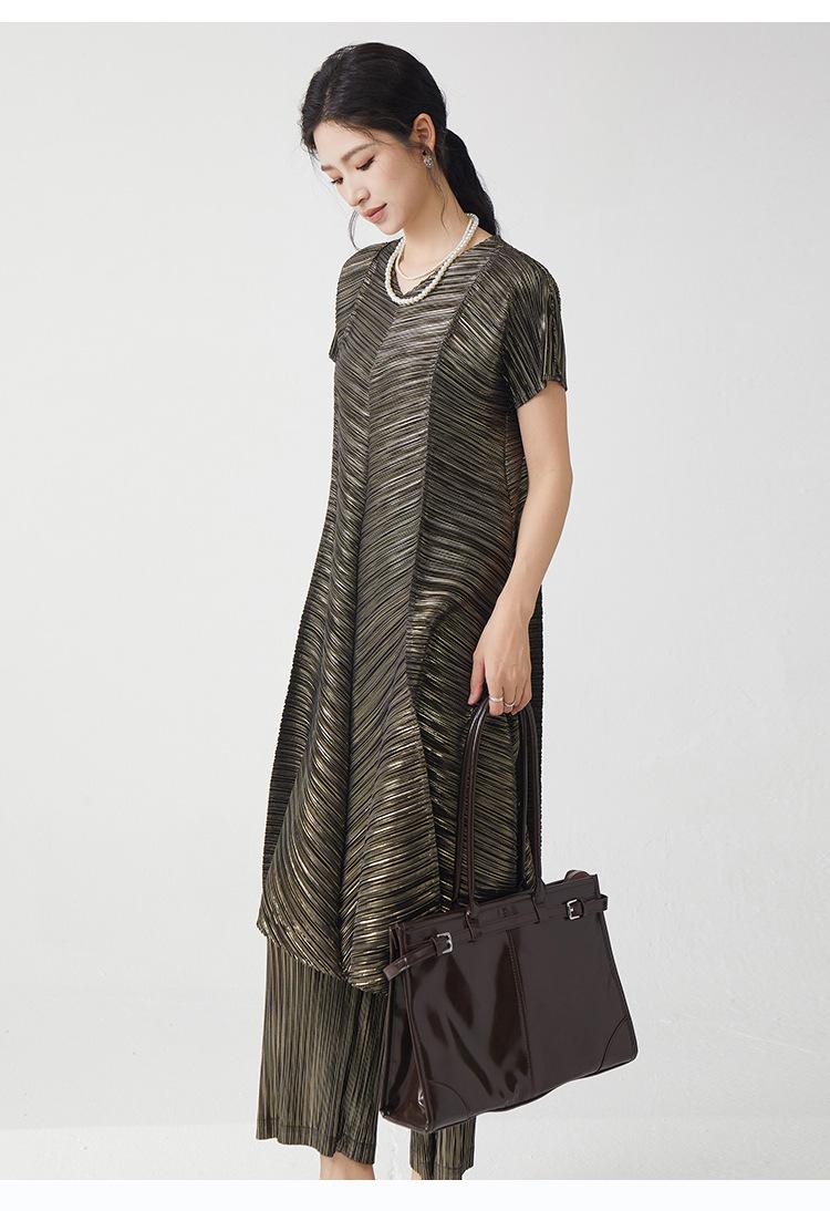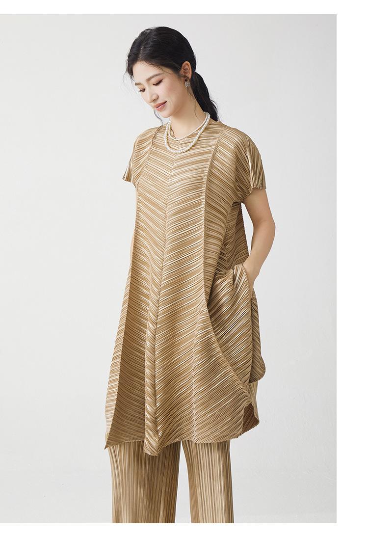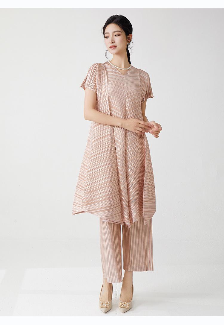 Traje de temperamento Miyake transfronterizo para mujer, falda de alta gama, vestido irregular, pantalones rectos, talla grande, conjunto de dos piezas de moda
