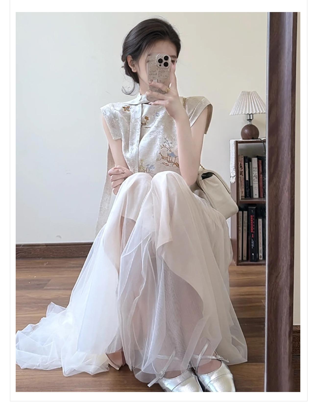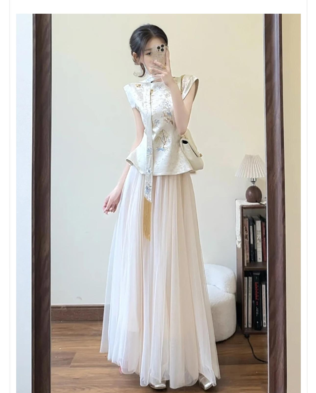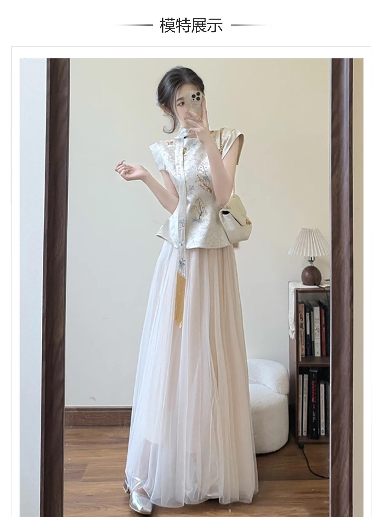 Traje de falda elegante, estilo chino nacional, cintura alta, adelgazante, ligero, de lujo, bordado, N3114, novedad de verano de 2025