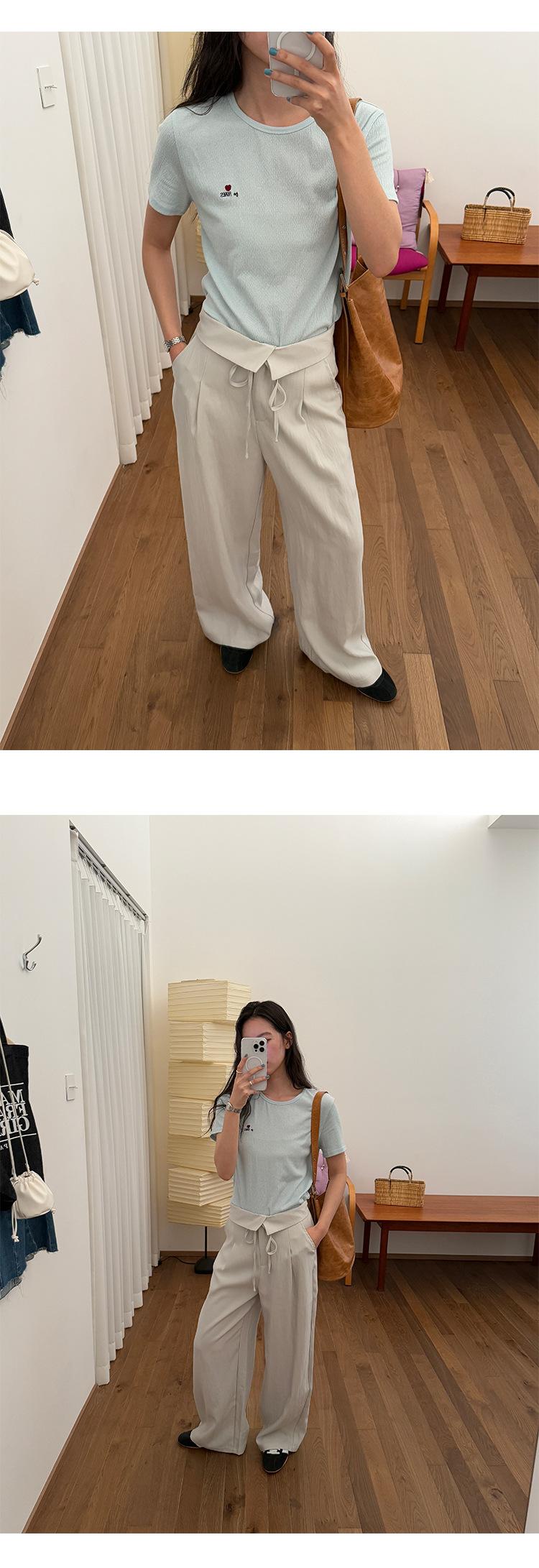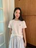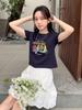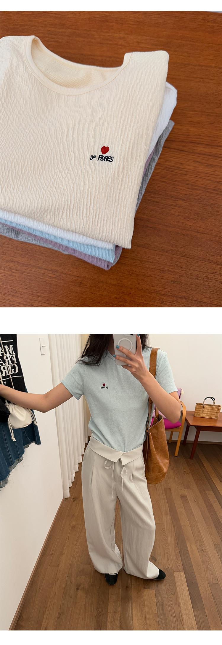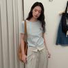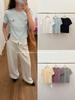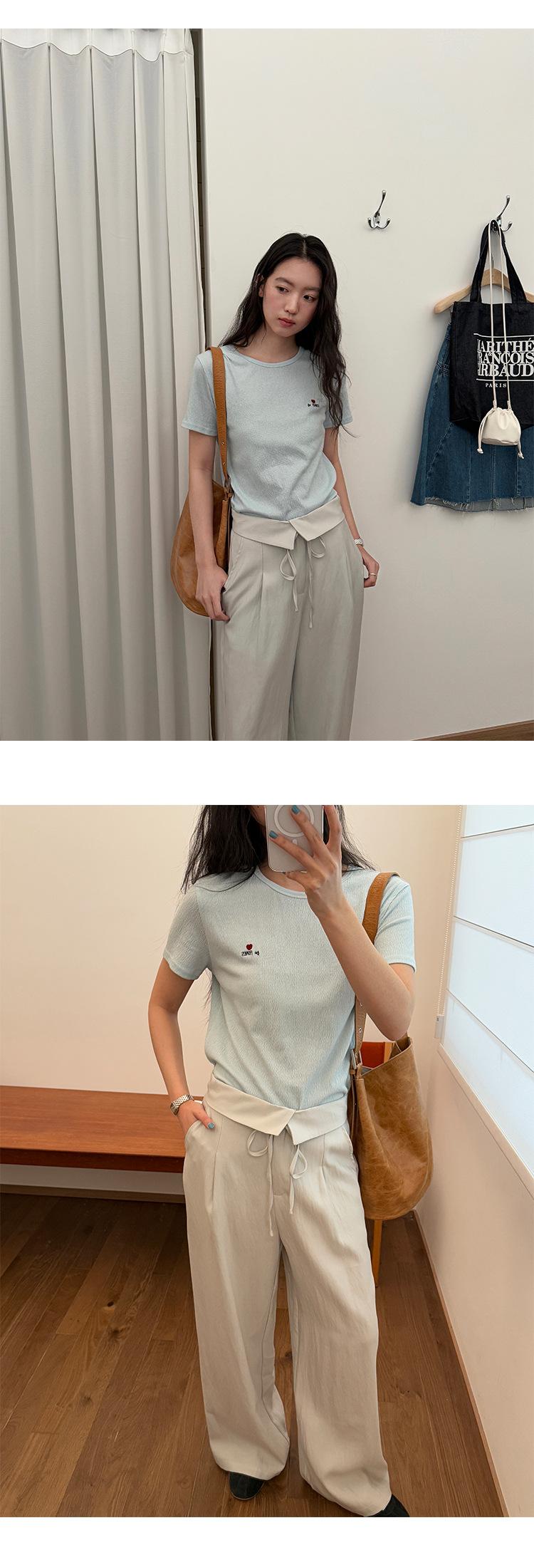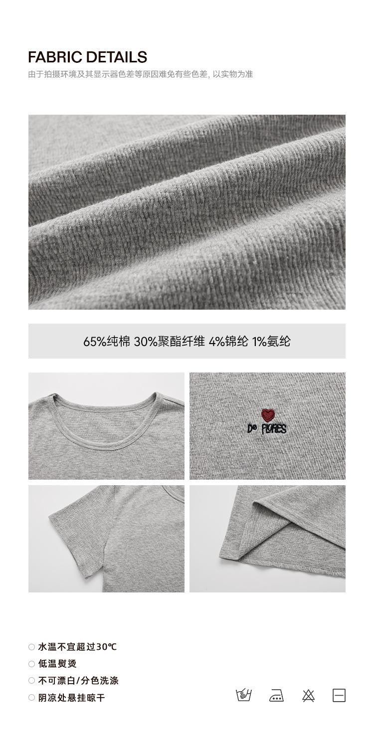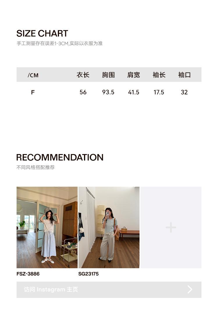 Yifu Camiseta de Cuello Redondo de Trece Filas de Manga Corta Ajustada Regular para Mujer Primavera Adelgazante Básica Top de Manga Corta 23069