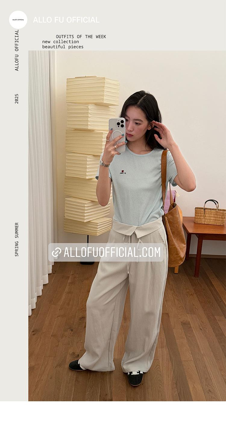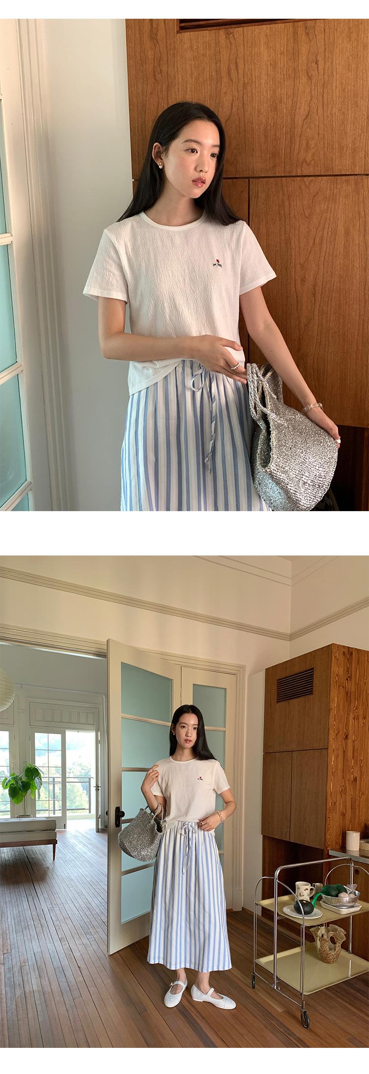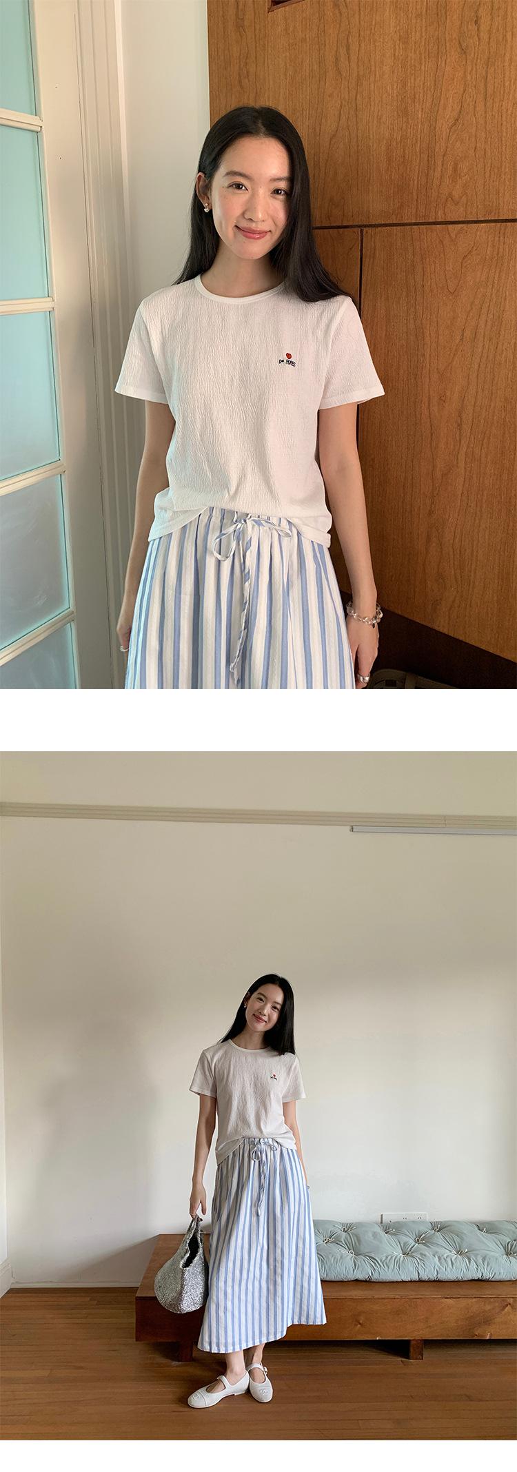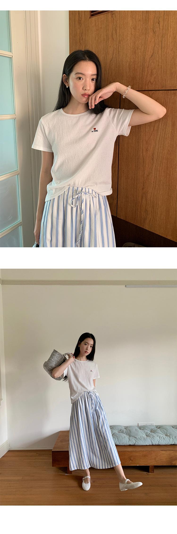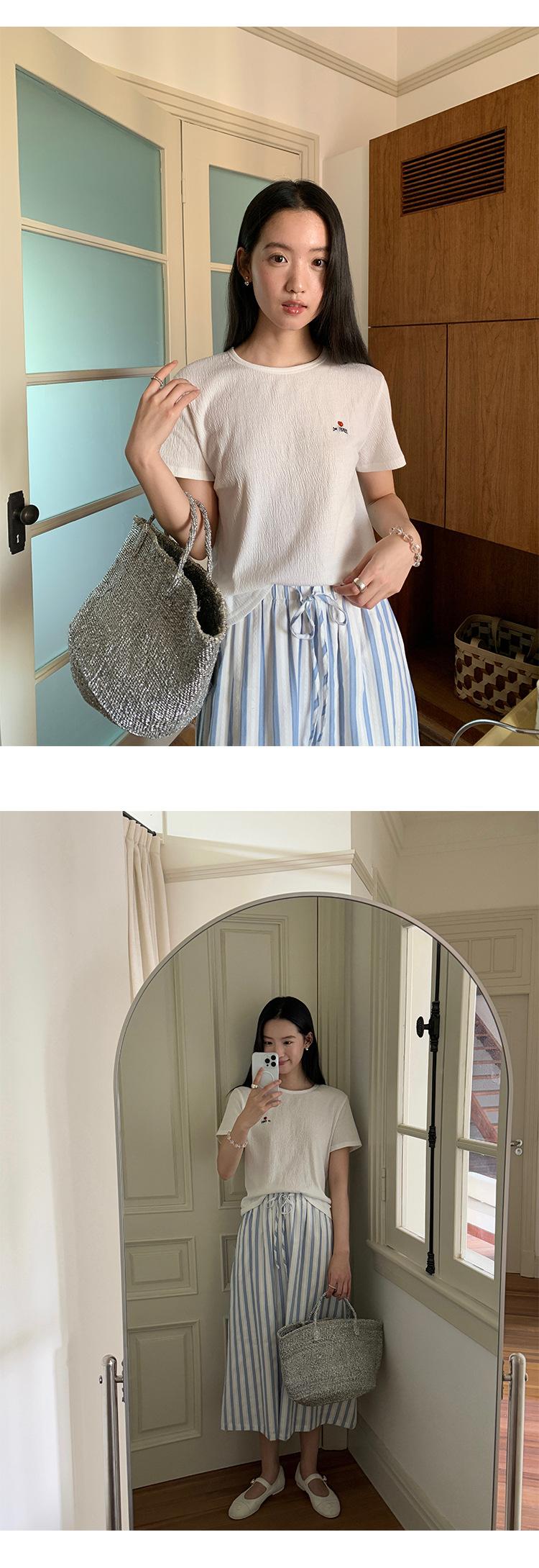 Yifu Camiseta de Cuello Redondo de Trece Filas de Manga Corta Ajustada Regular para Mujer Primavera Adelgazante Básica Top de Manga Corta 23069