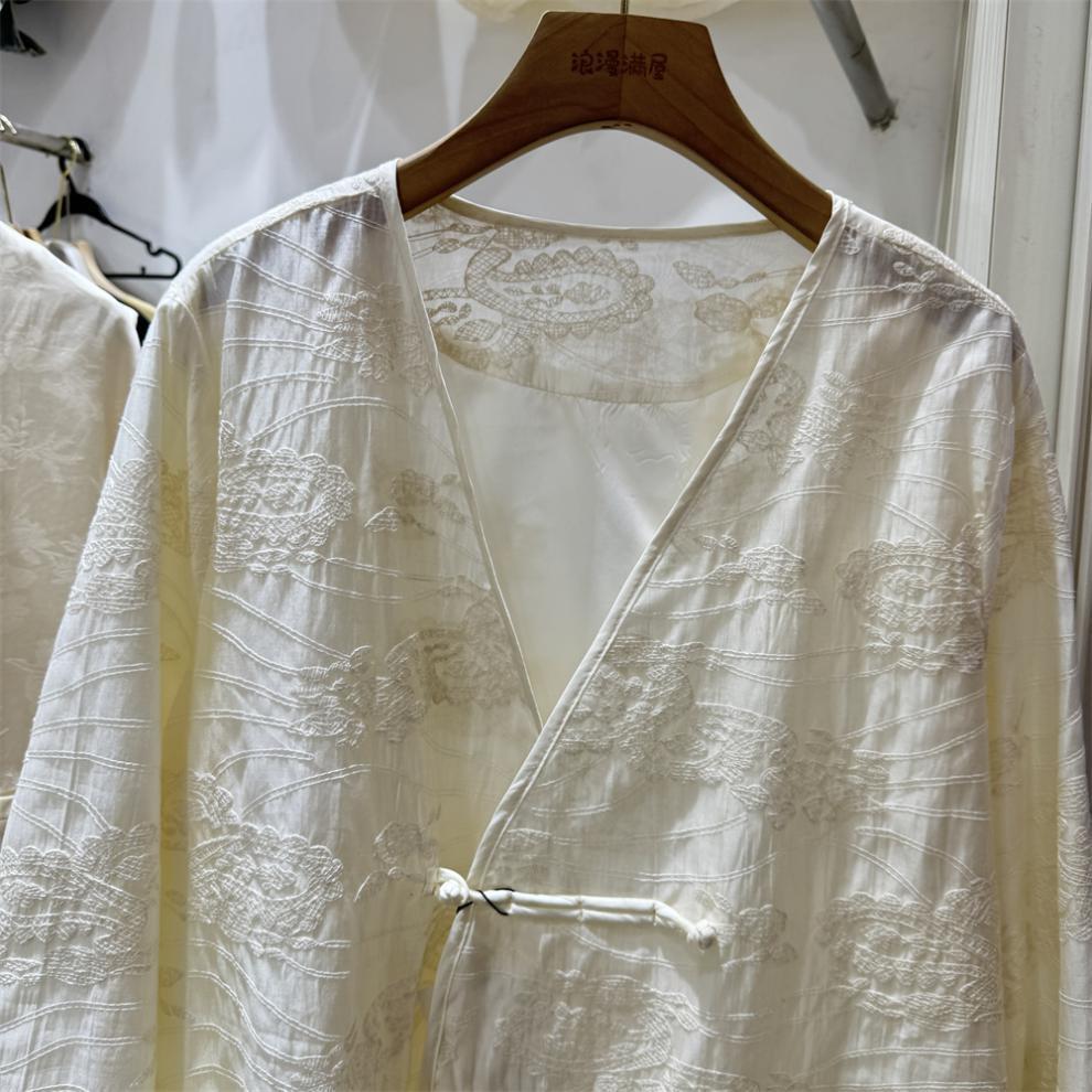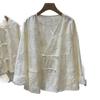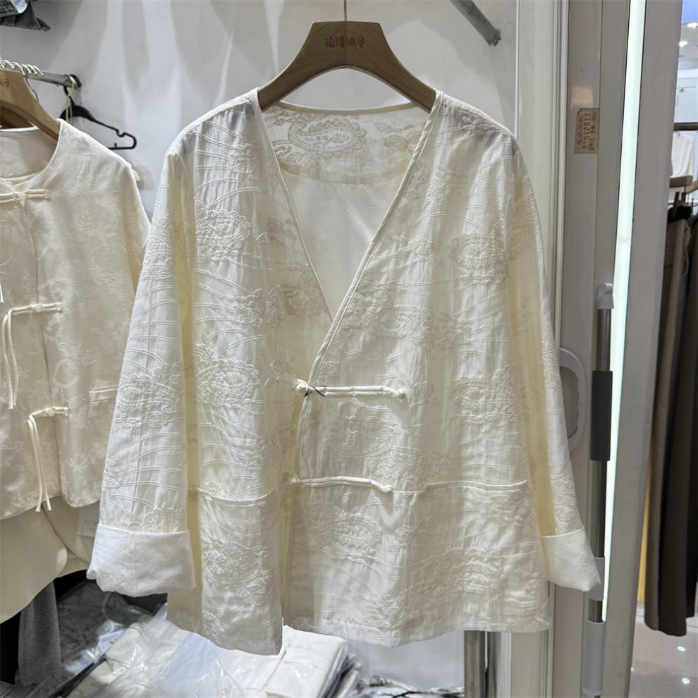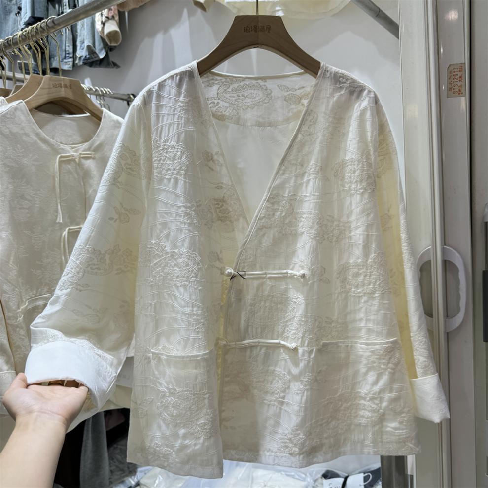 Abrigo Bordado de Nuevo Estilo Chino con Cuello en V para Mujer Primavera/Verano 2024 Nueva Camisa Top Holgada Abotonada de Alta Gama