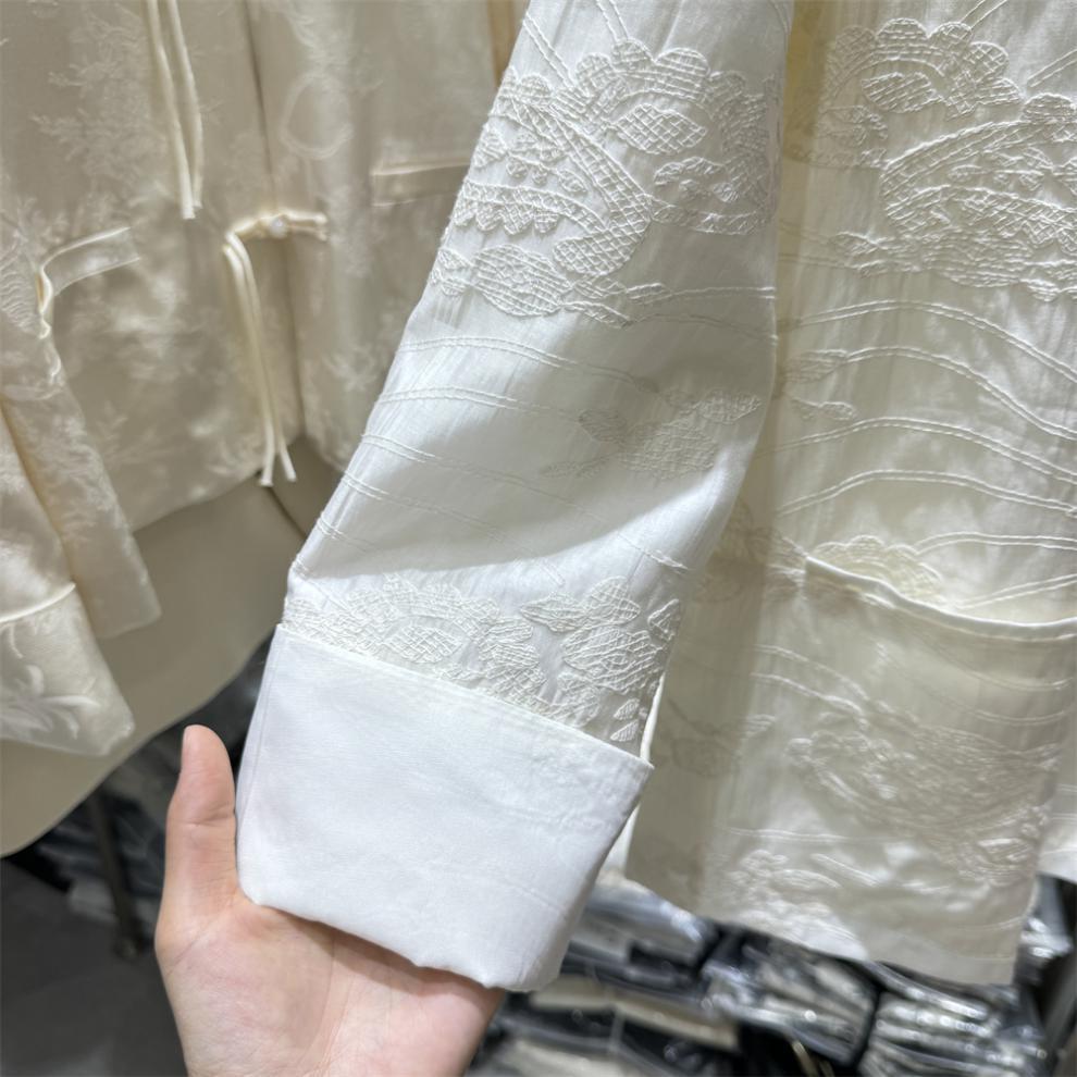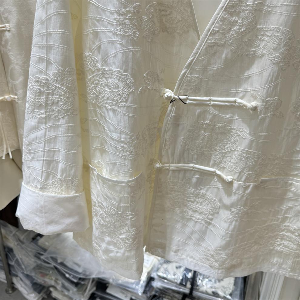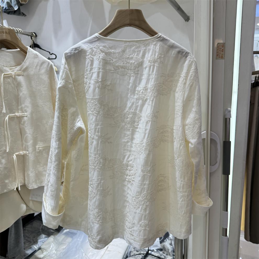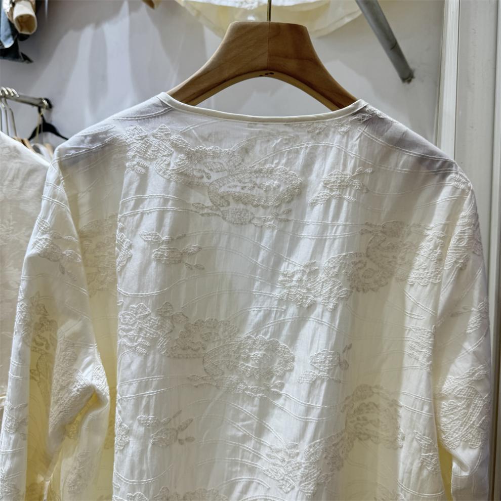 Abrigo Bordado de Nuevo Estilo Chino con Cuello en V para Mujer Primavera/Verano 2024 Nueva Camisa Top Holgada Abotonada de Alta Gama