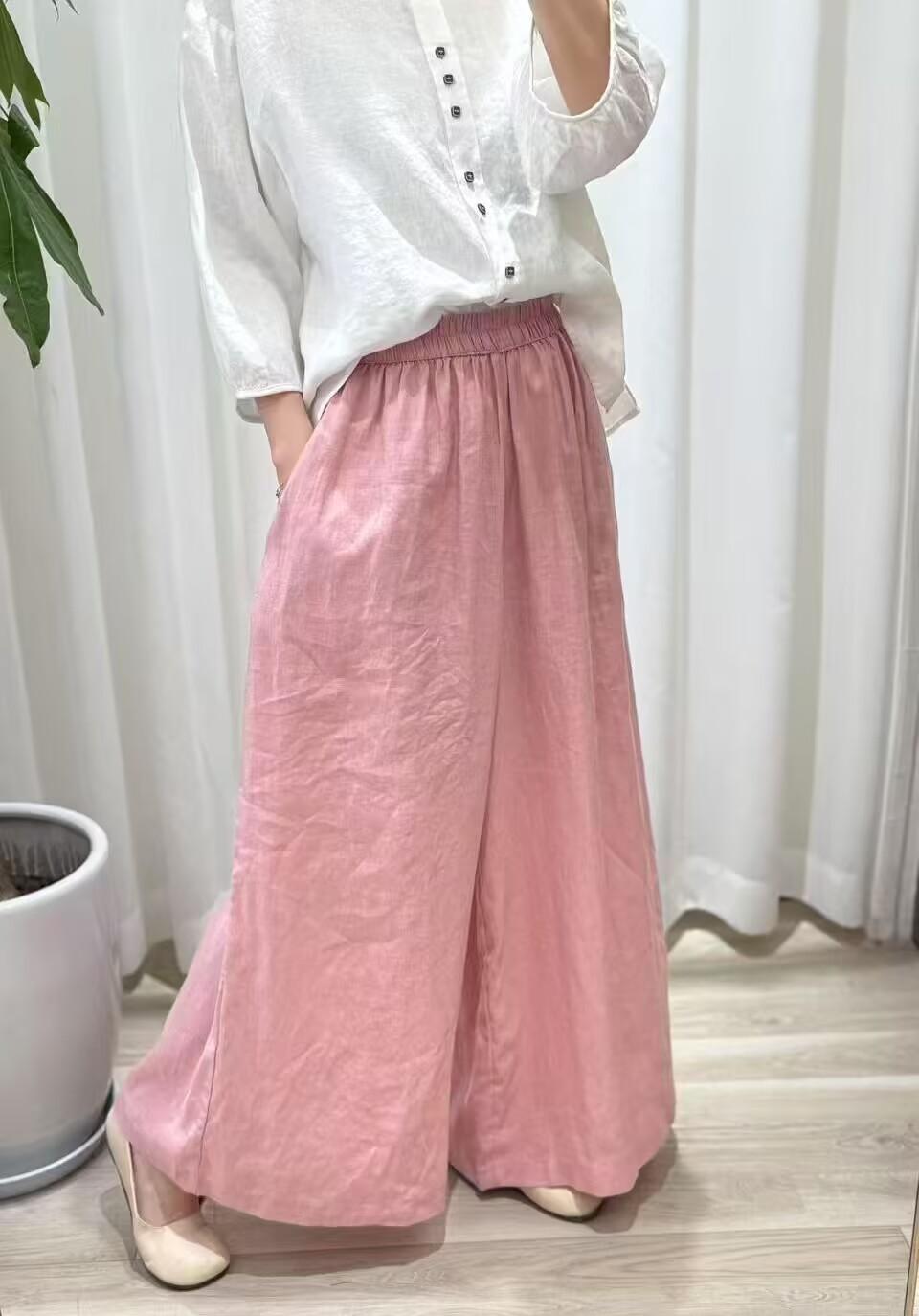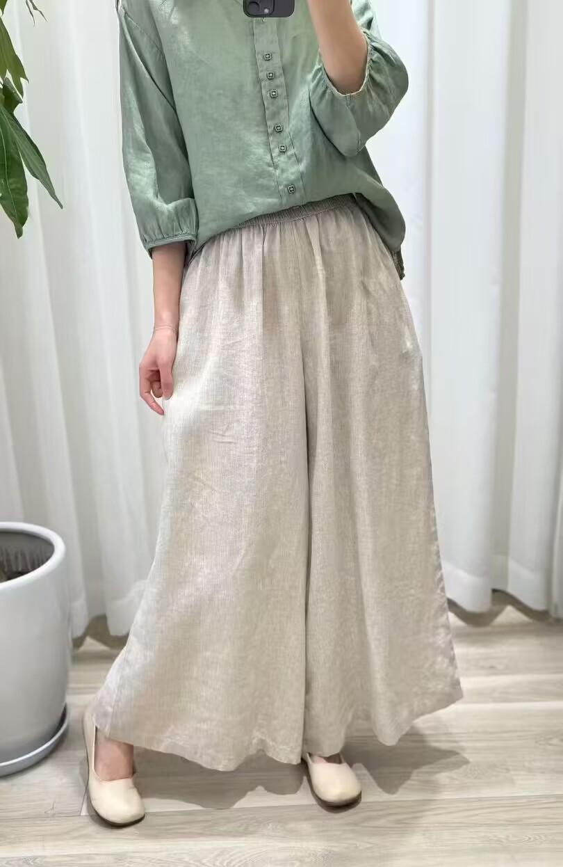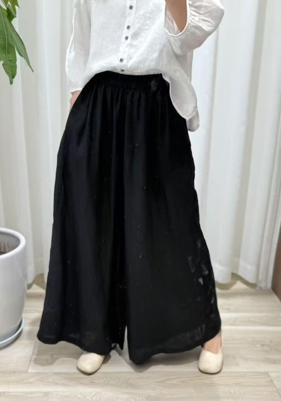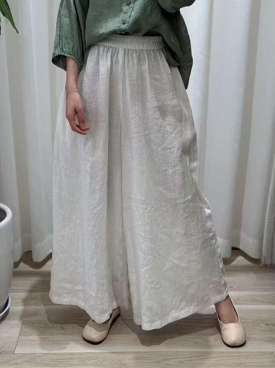 Culottes de Lino para Mujer Verano Artístico Retro Holgados Adelgazantes Nicho Combinable Color Sólido Casual Pierna Ancha Rectos Delgados