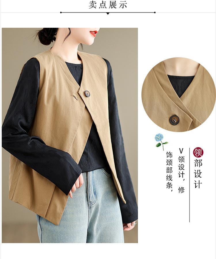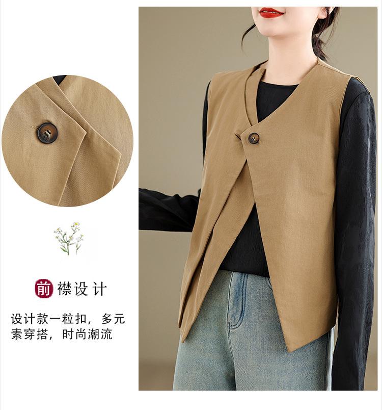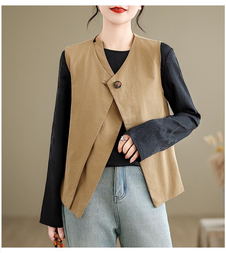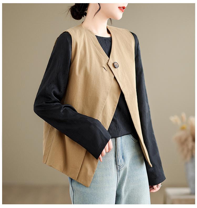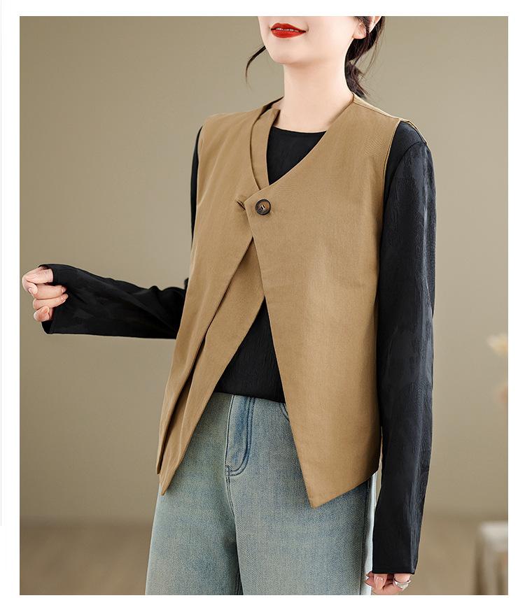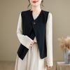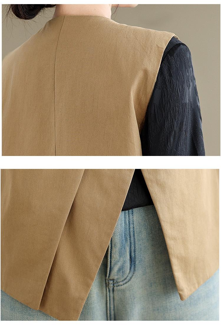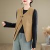 Chaleco de Traje Vintage para Mujer, Diseño de Primavera y Otoño, Chaleco de Traje Corto Nicho, Chaleco Holgado sin Mangas con Cuello en V