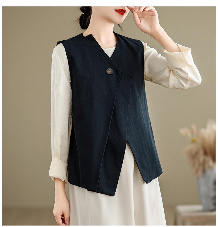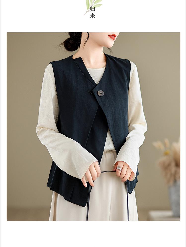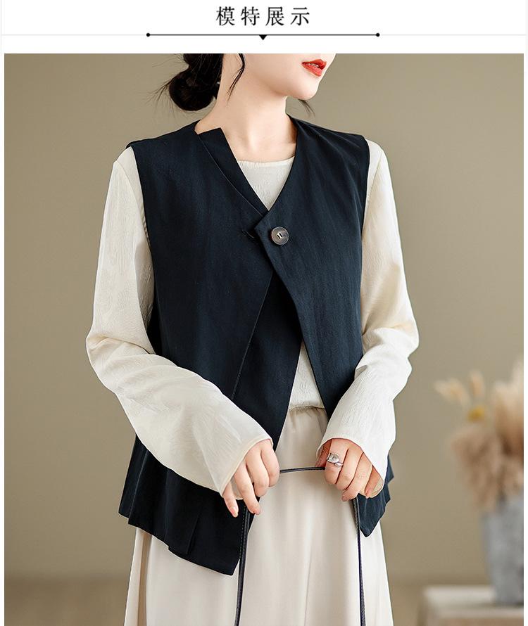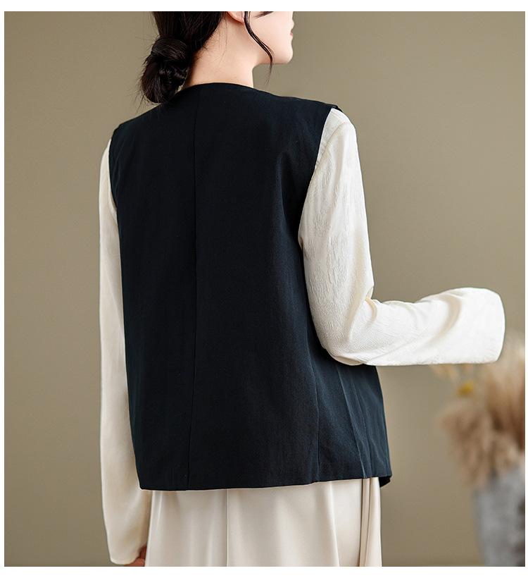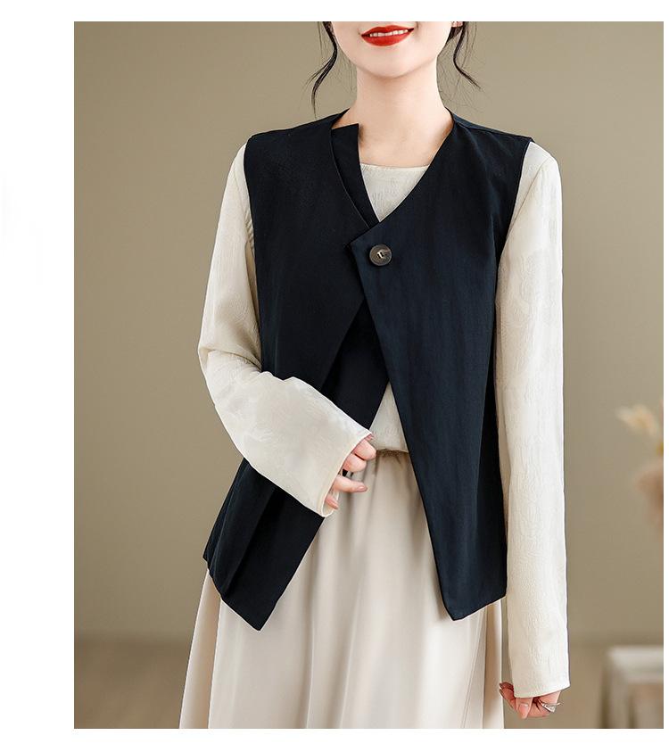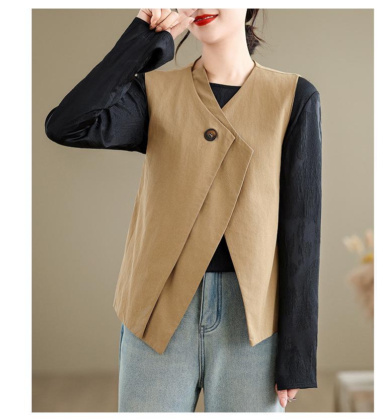 Chaleco de Traje Vintage para Mujer, Diseño de Primavera y Otoño, Chaleco de Traje Corto Nicho, Chaleco Holgado sin Mangas con Cuello en V