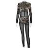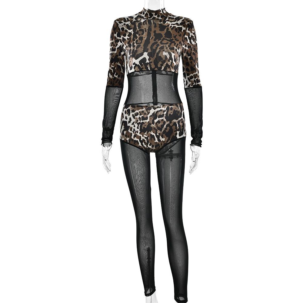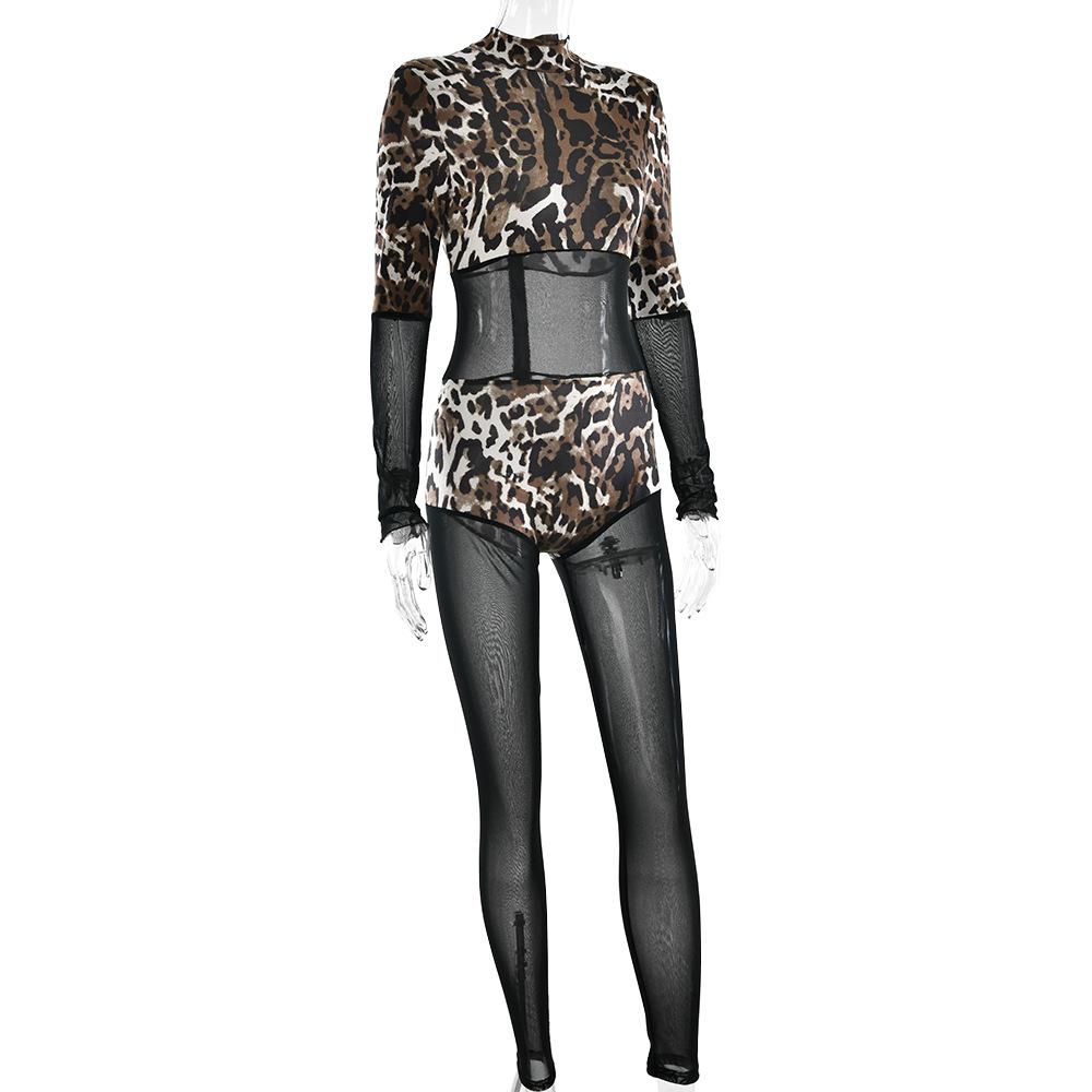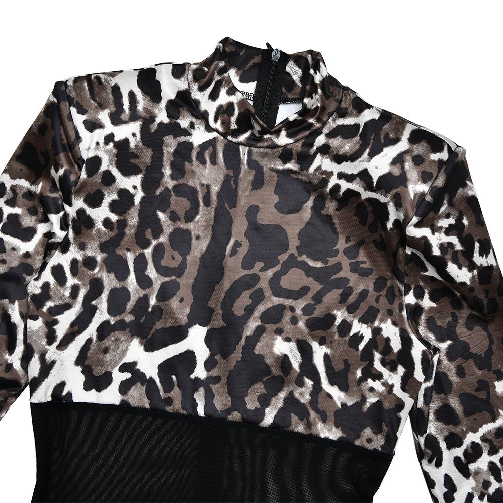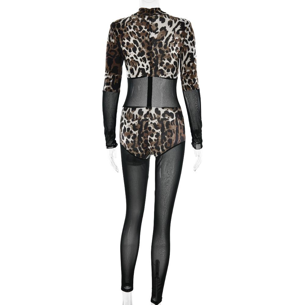 Mono Sexy de Moda de Primavera y Verano para Exportación Europea y Americana de Gran Venta para Chica Caliente Estampado de Leopardo Manga Larga Ajustado