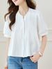Algodón Cocoon Verano 2026 Nuevo Estilo Camisa Blanca de Manga Corta con Cuello en V para Mujer, Blusa Chic Delgada de Manga Abullonada para Mujer