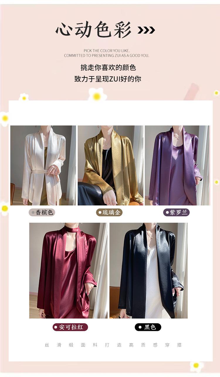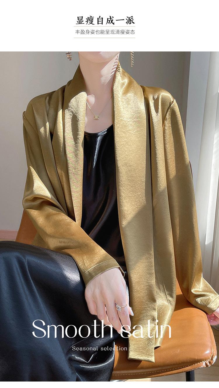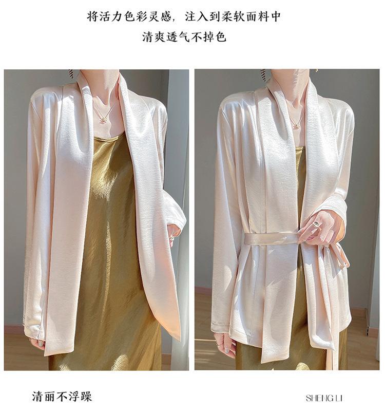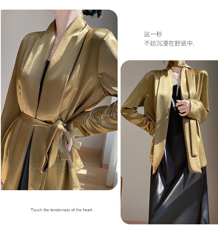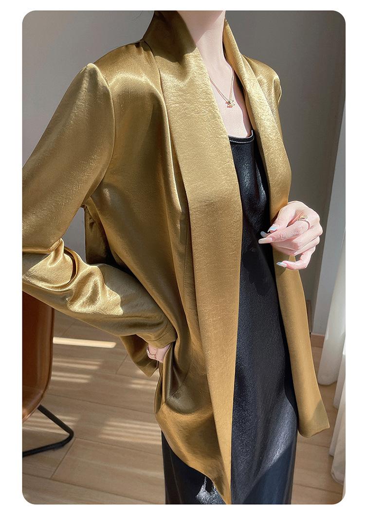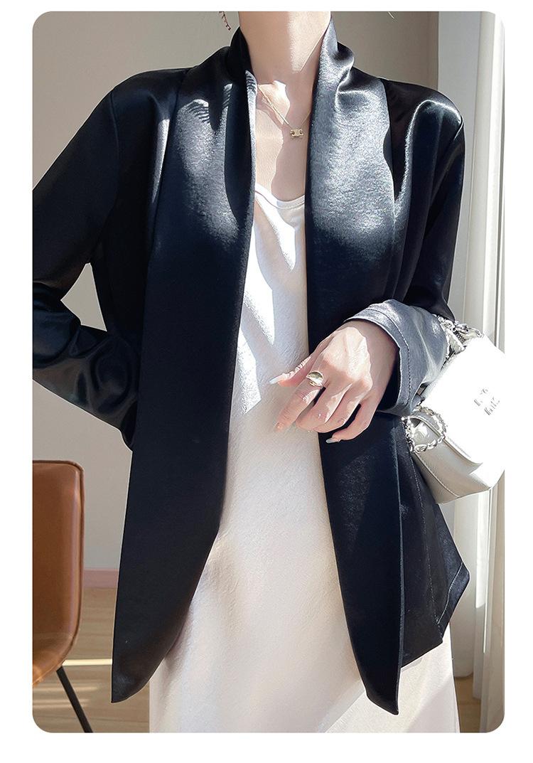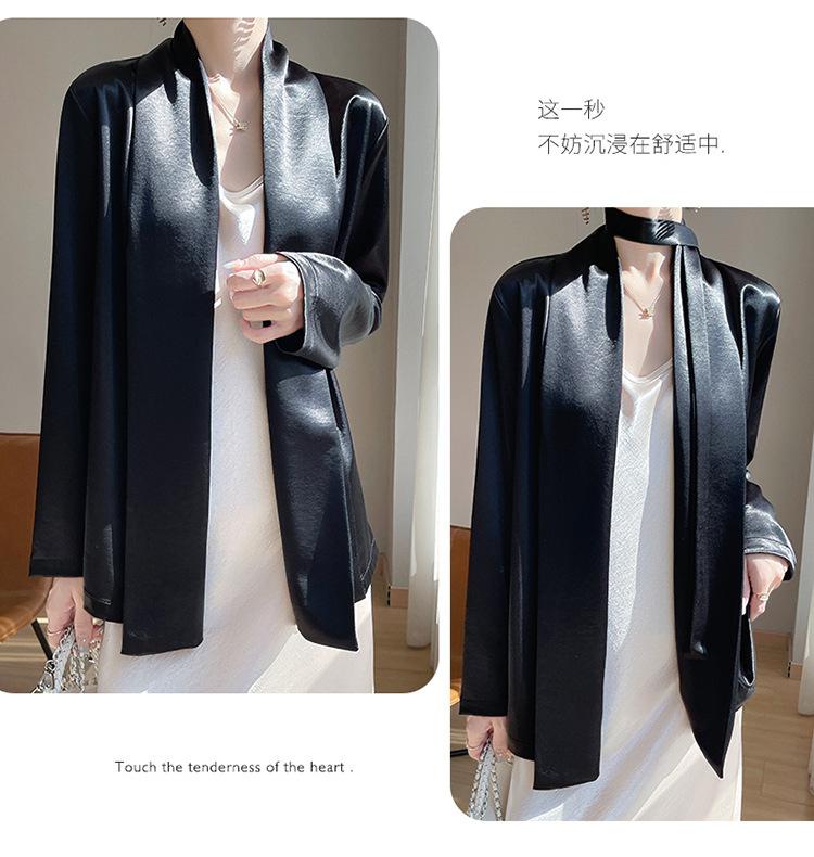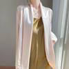 Primavera y Verano 2025 Nuevo Traje Pequeño de Cuello para Mujer de Satén Color Sólido con Cordones sin Hebilla Chaqueta de Traje Moda Elegante