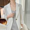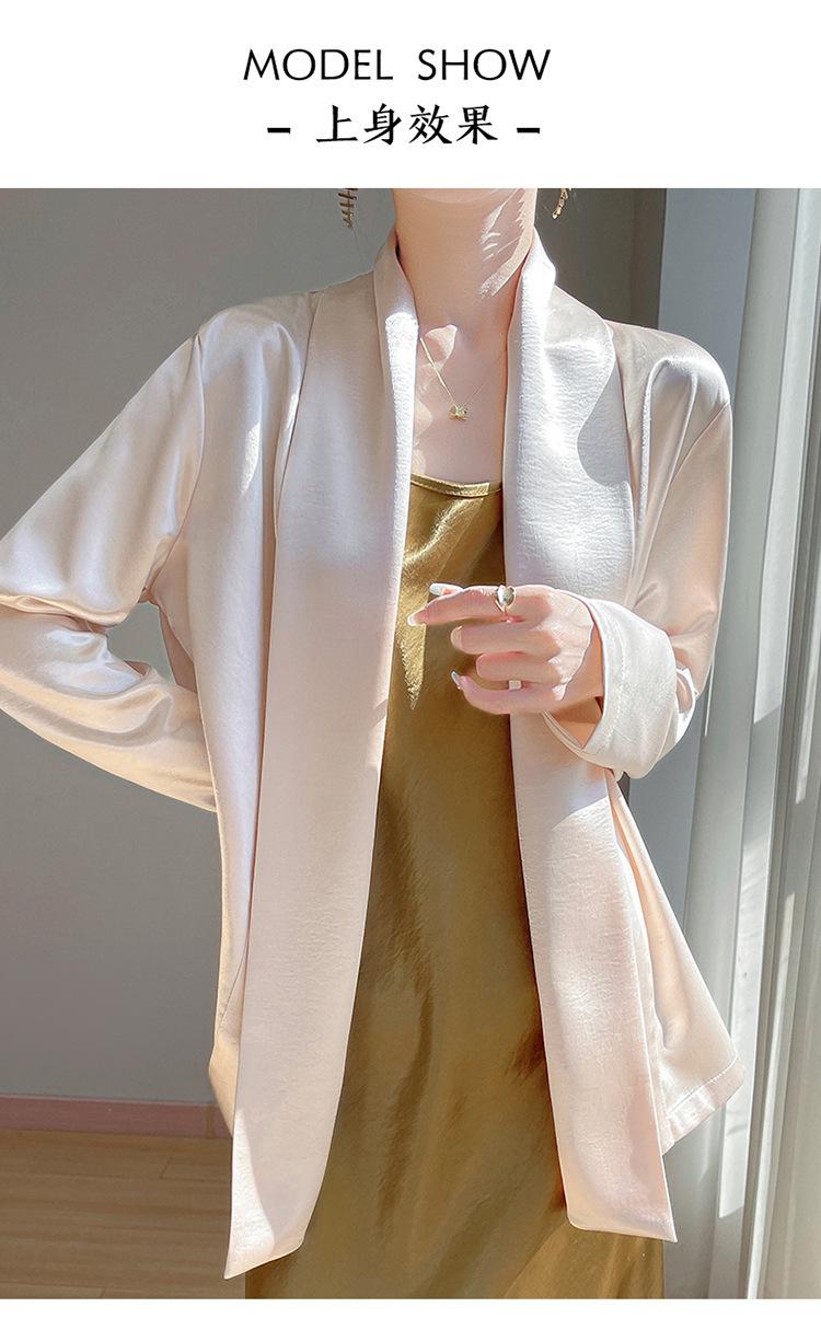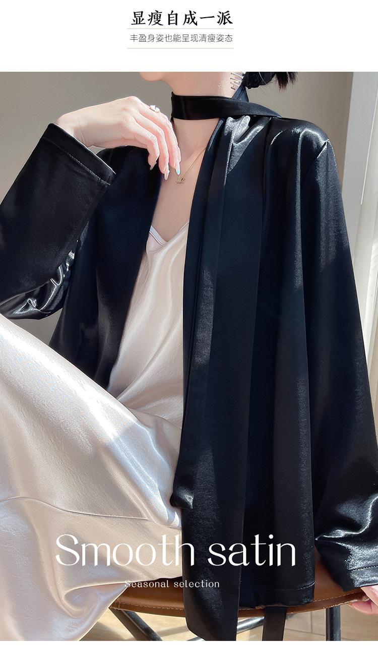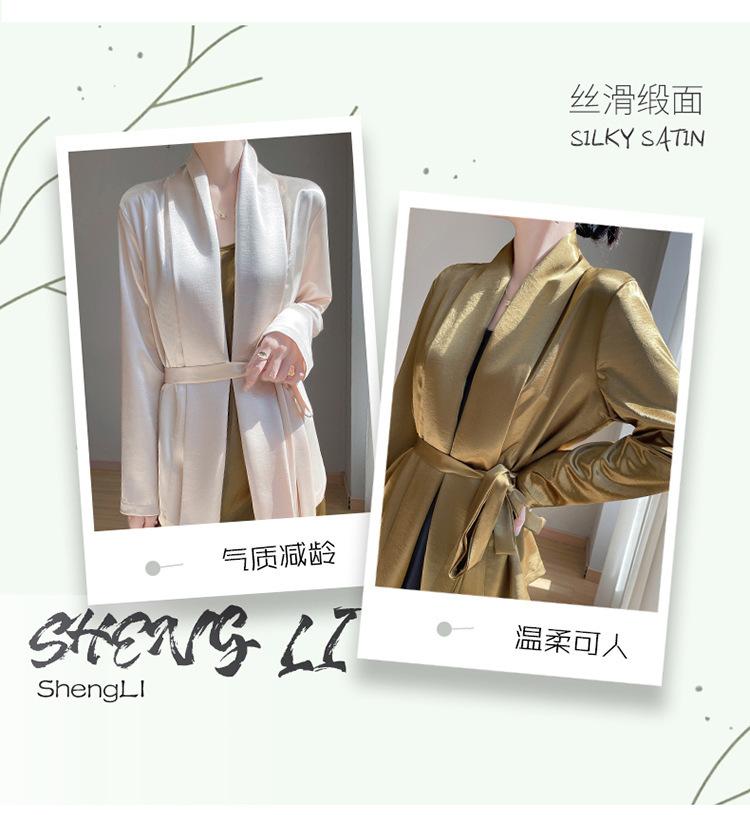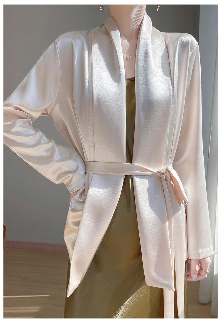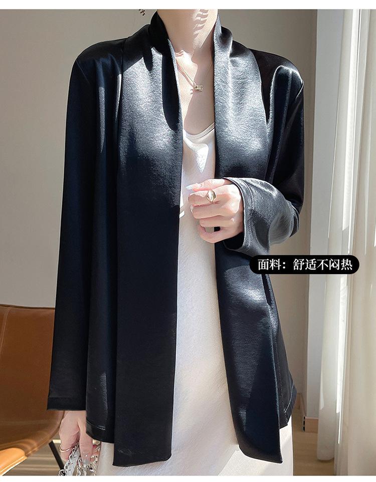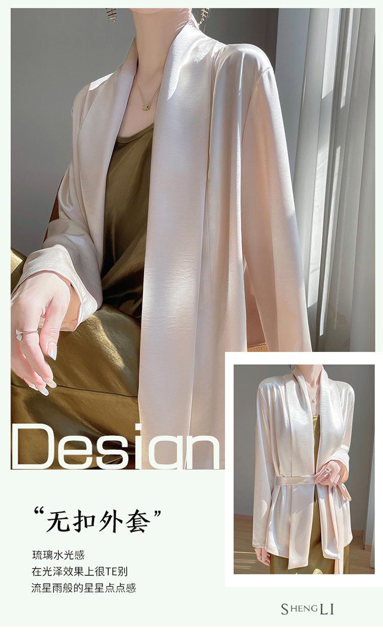 Primavera y Verano 2025 Nuevo Traje Pequeño de Cuello para Mujer de Satén Color Sólido con Cordones sin Hebilla Chaqueta de Traje Moda Elegante