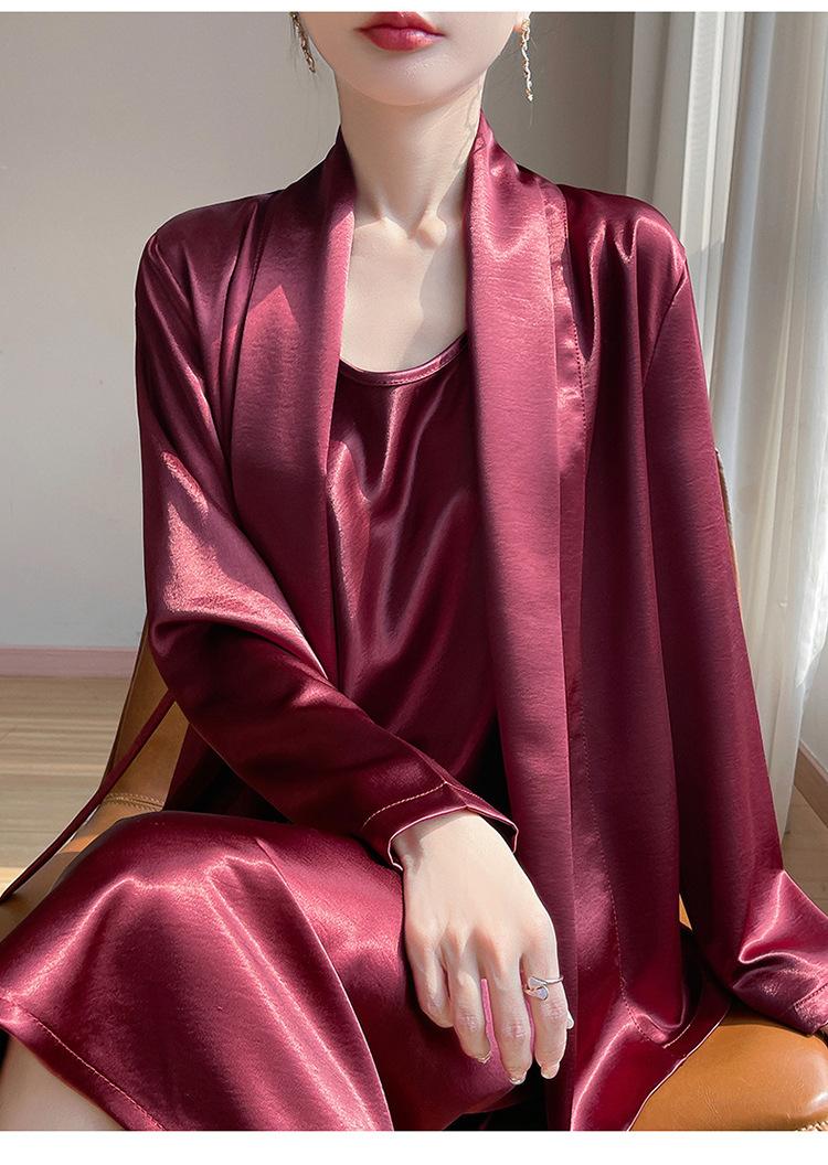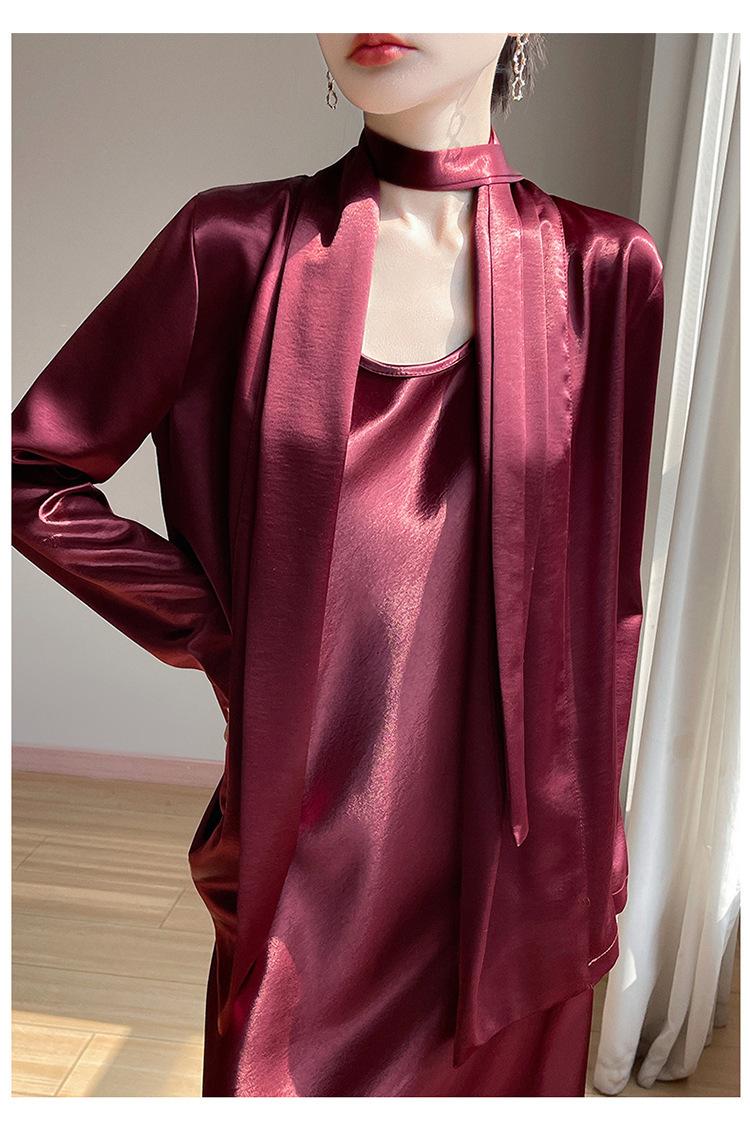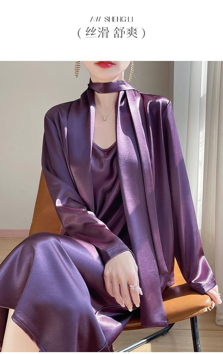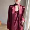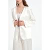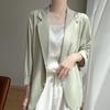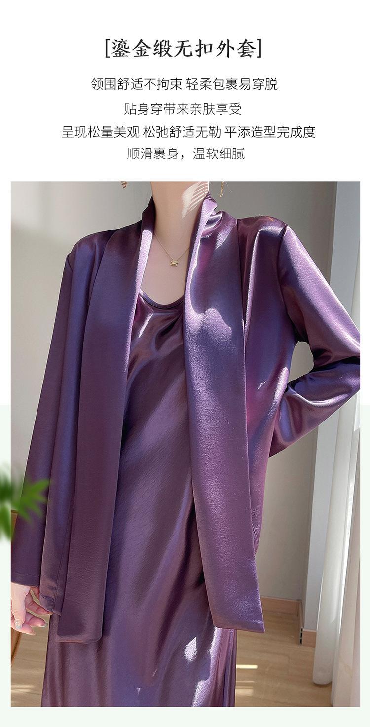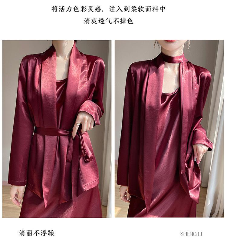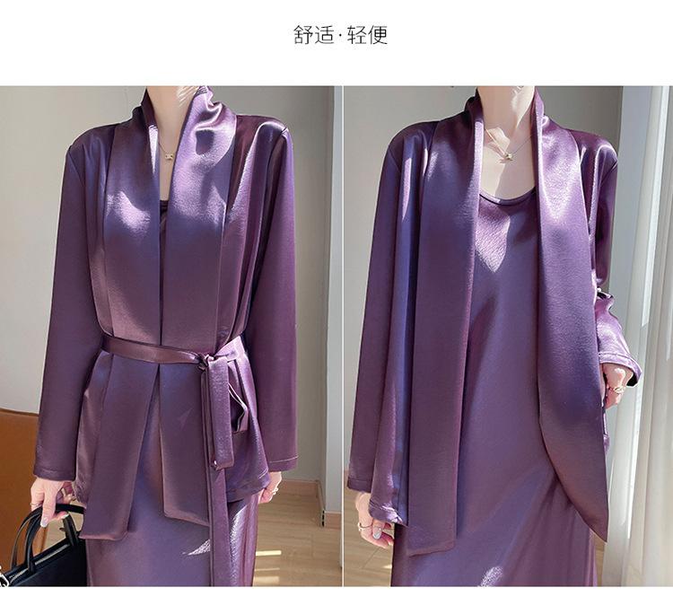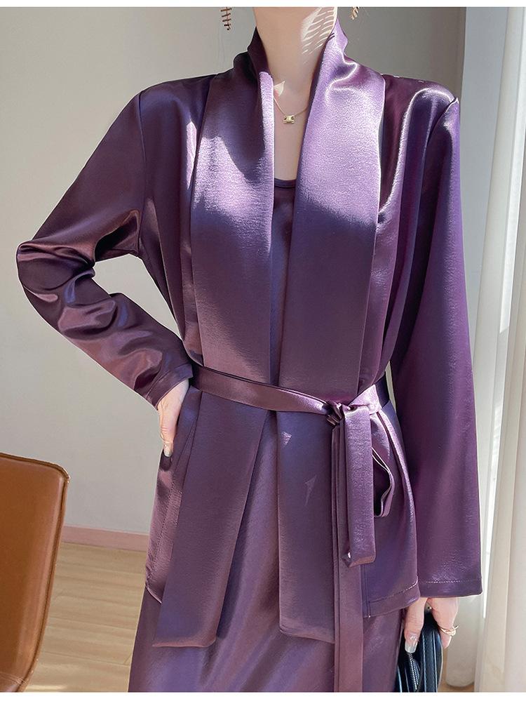 Primavera y Verano 2025 Nuevo Traje Pequeño de Cuello para Mujer de Satén Color Sólido con Cordones sin Hebilla Chaqueta de Traje Moda Elegante