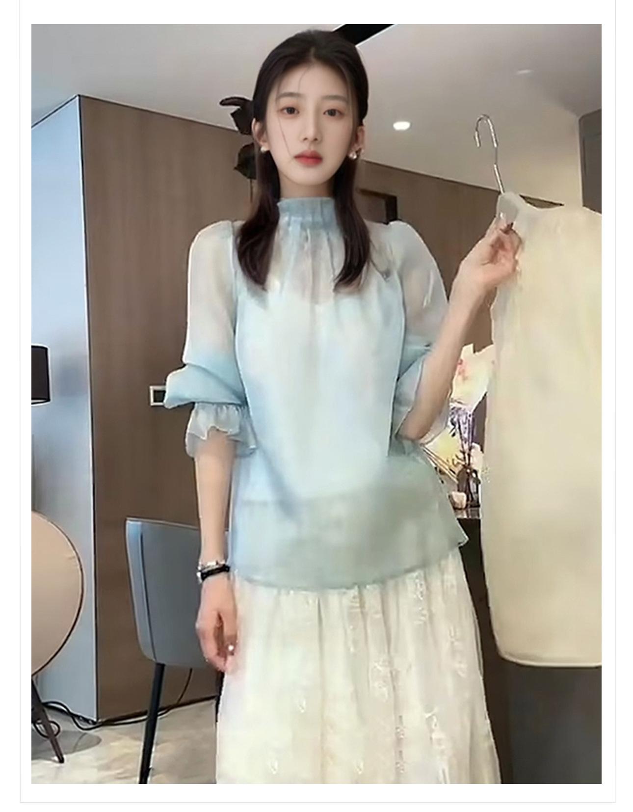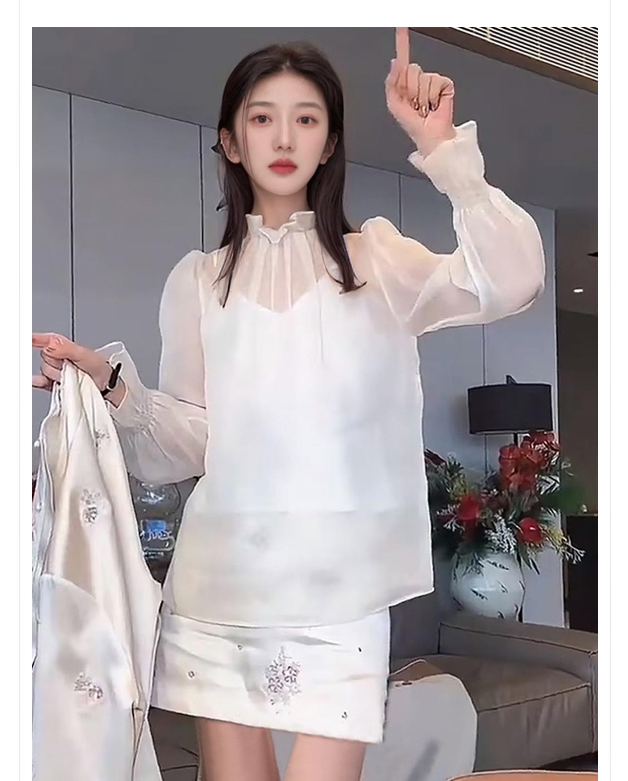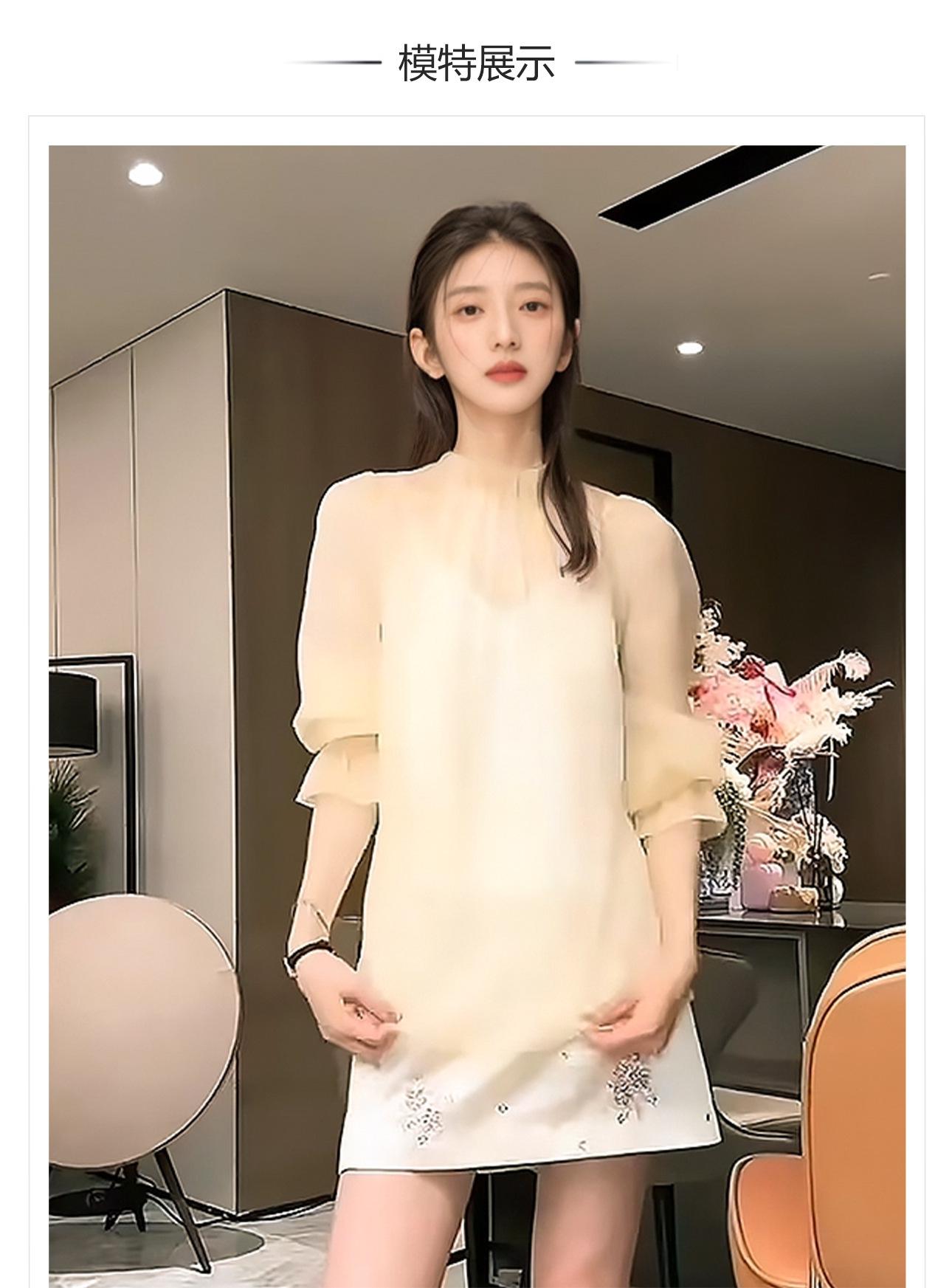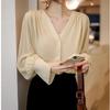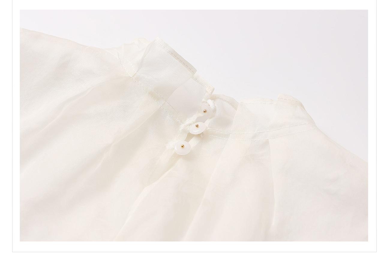 2025 Nueva Camisa Chinoiserie de Cuello Redondo Color Puro con Botones Suelta Seda de Morera Nicho de Alta Gama Top N2021