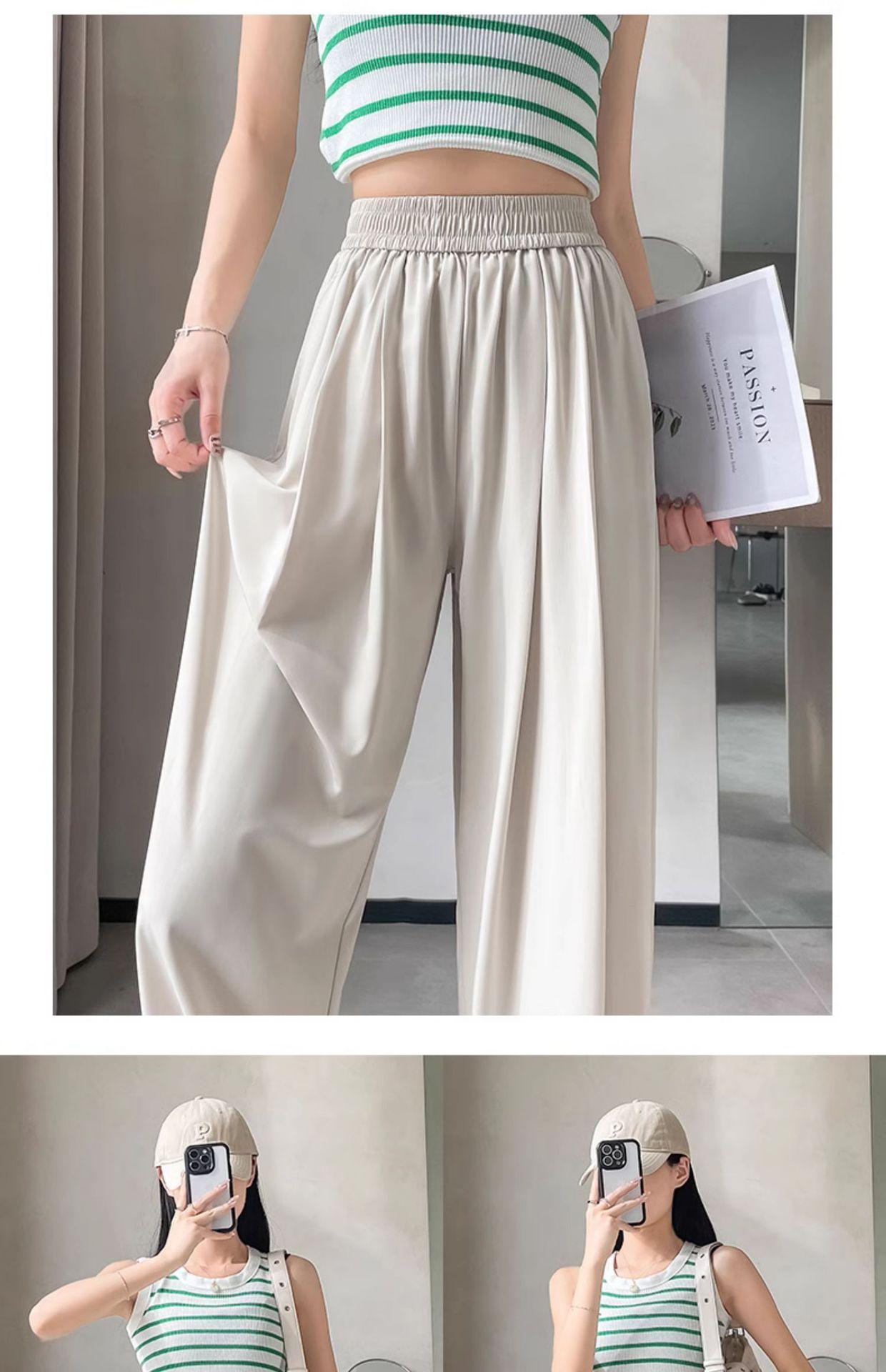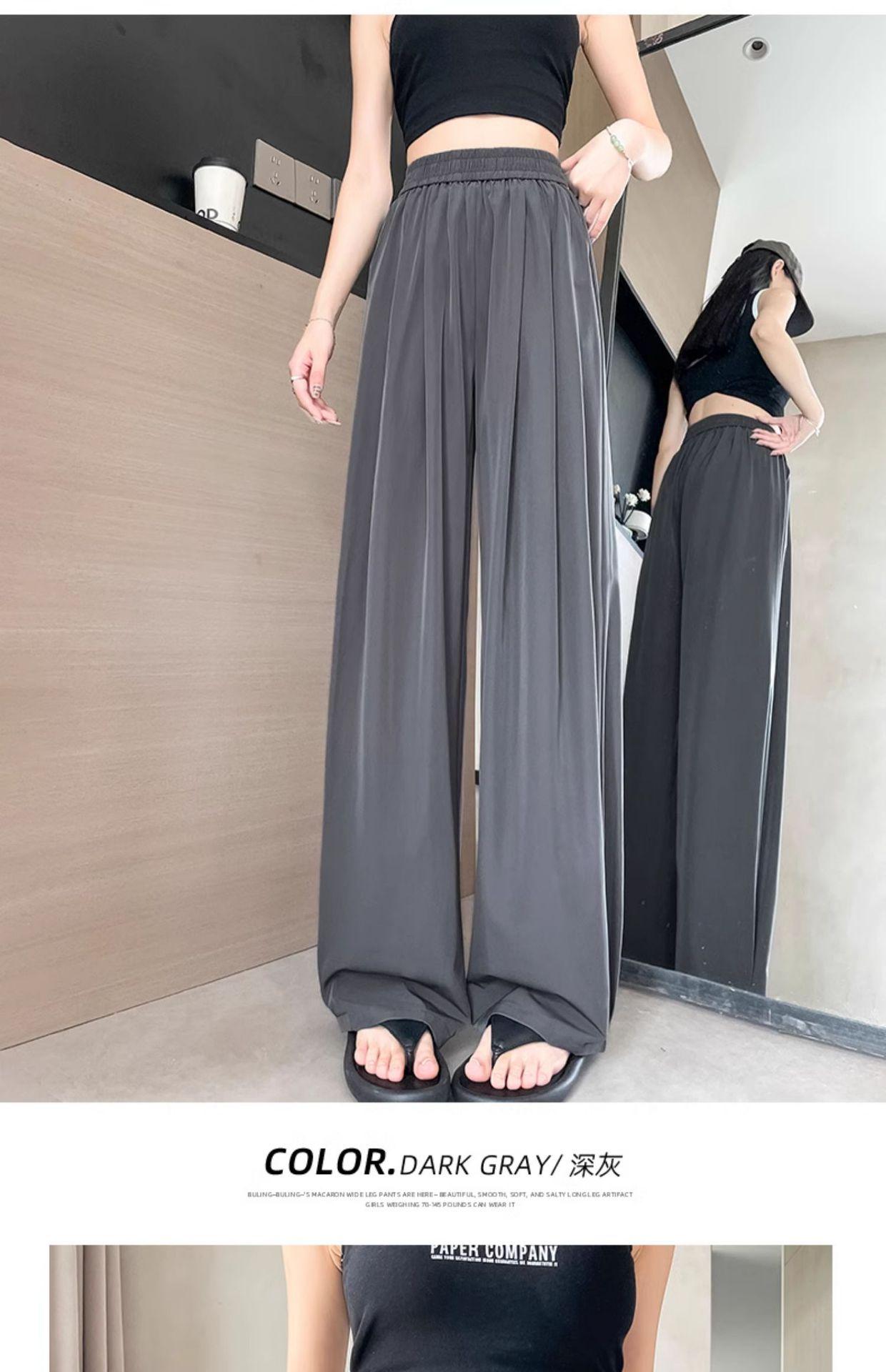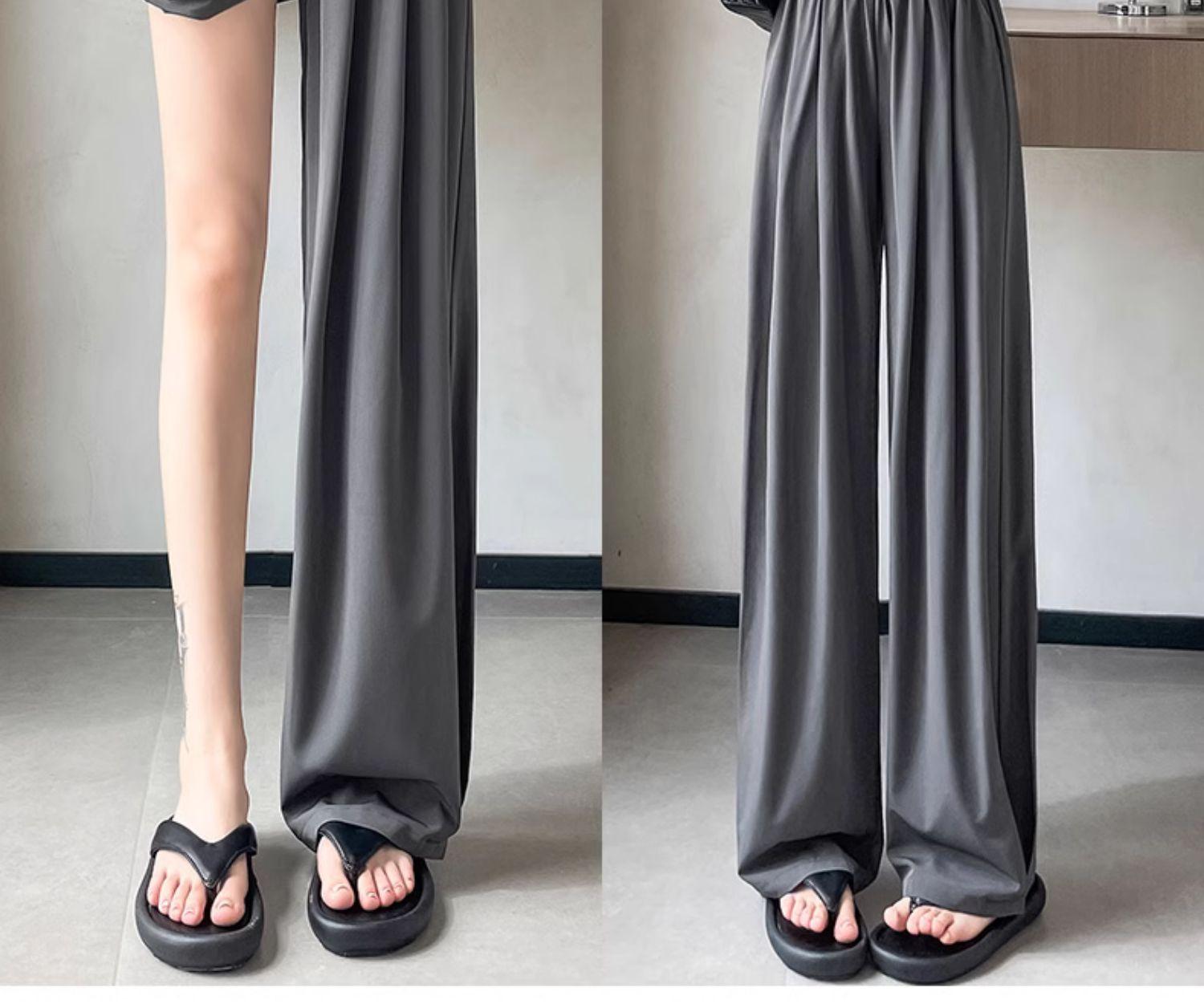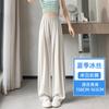 Pantalones deportivos rectos de seda helada drapeados 2025 de cintura alta delgados de pierna ancha para mujer verano adelgazantes sueltos casuales