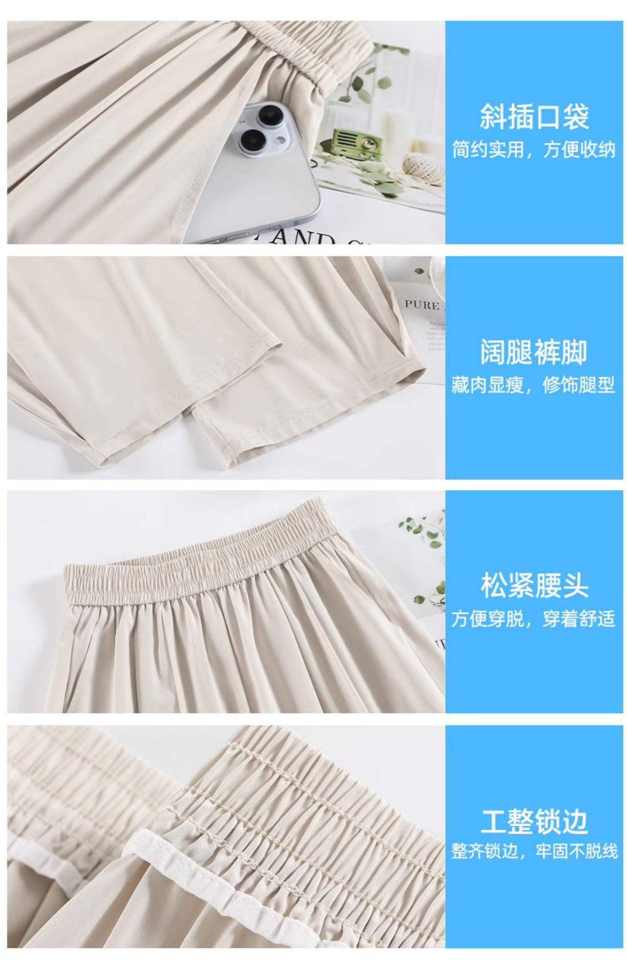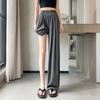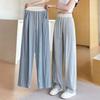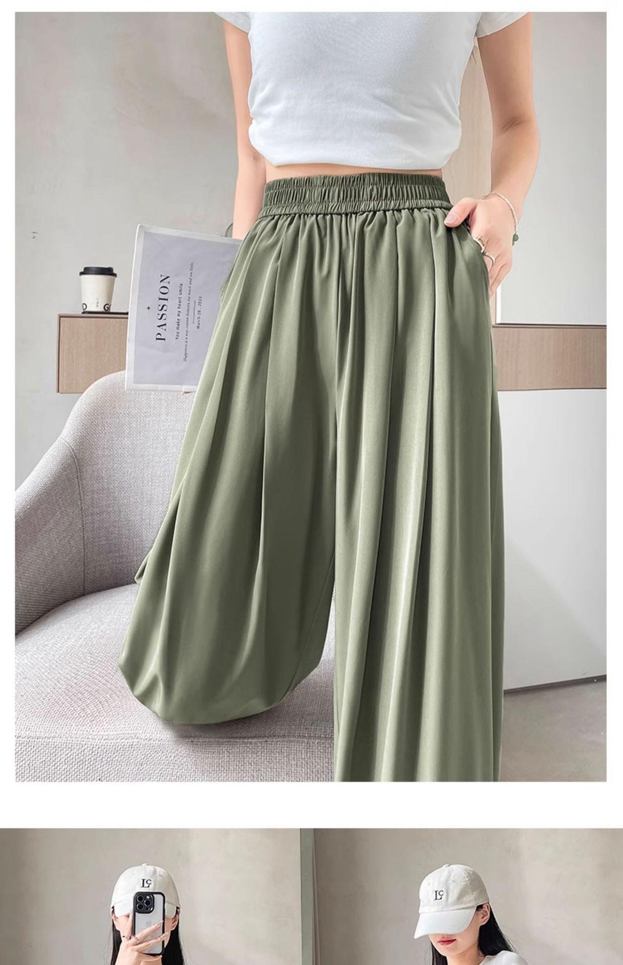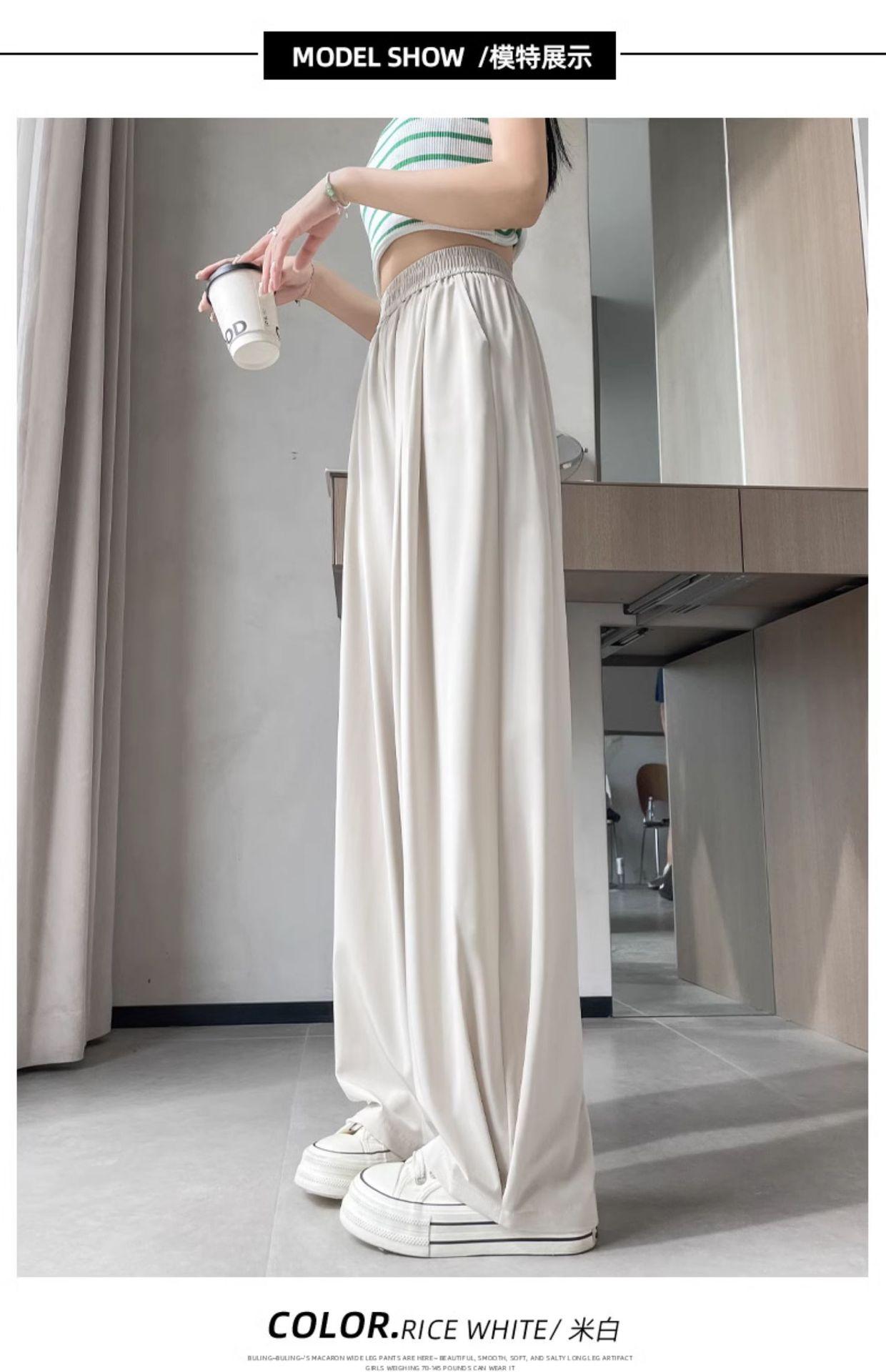 Pantalones deportivos rectos de seda helada drapeados 2025 de cintura alta delgados de pierna ancha para mujer verano adelgazantes sueltos casuales