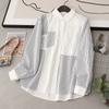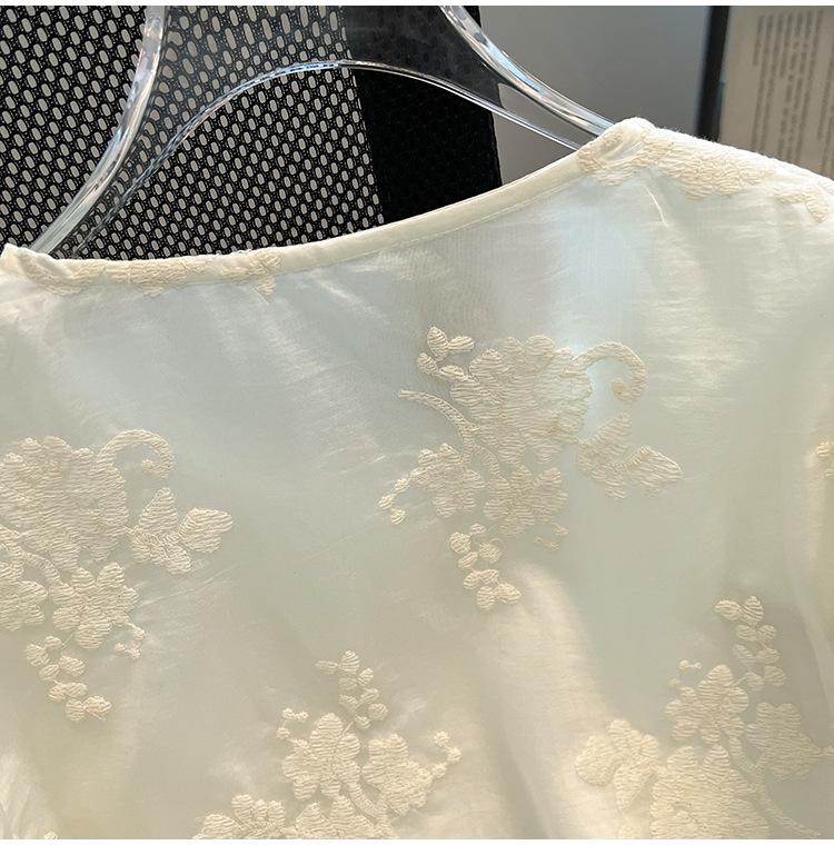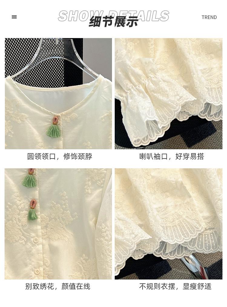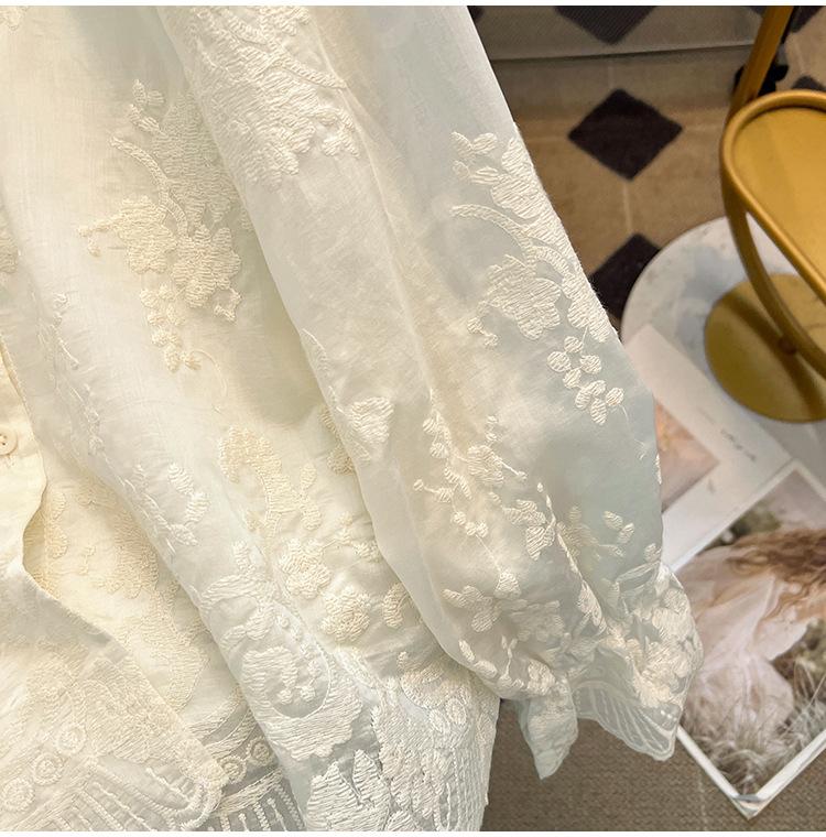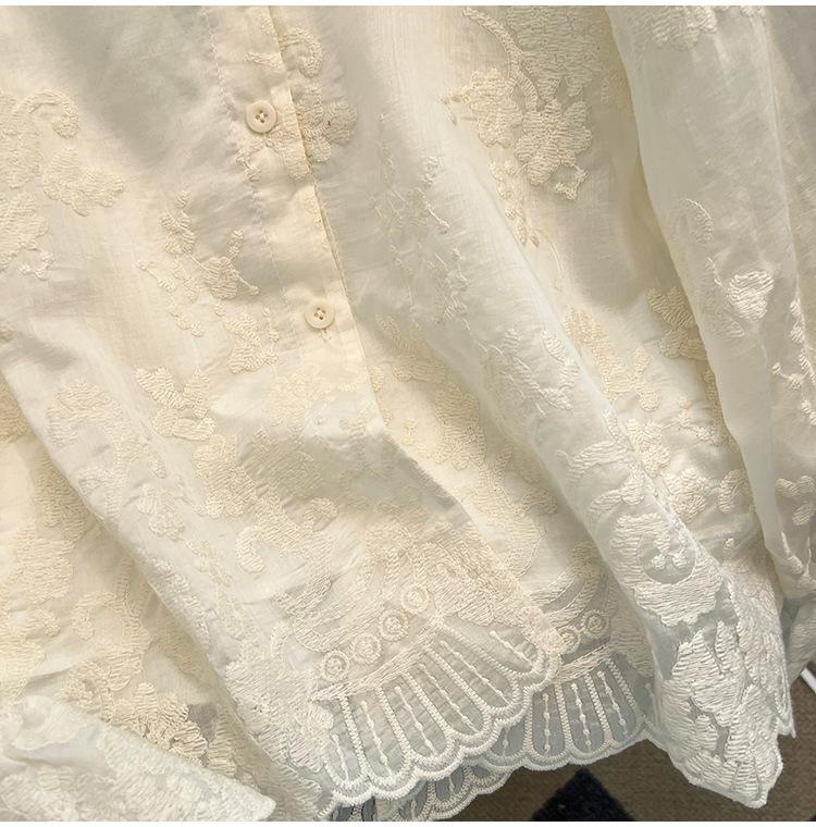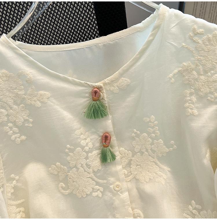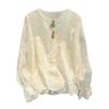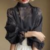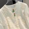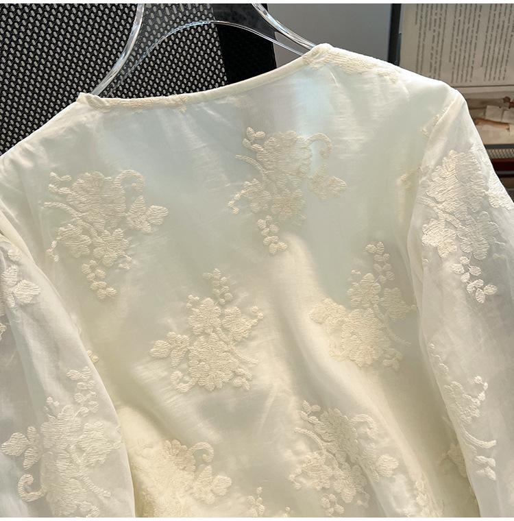 Camisa fina de manga larga con cuello redondo y encaje bordado en jacquard de estilo chino para mujer, estilo coreano, principios de primavera