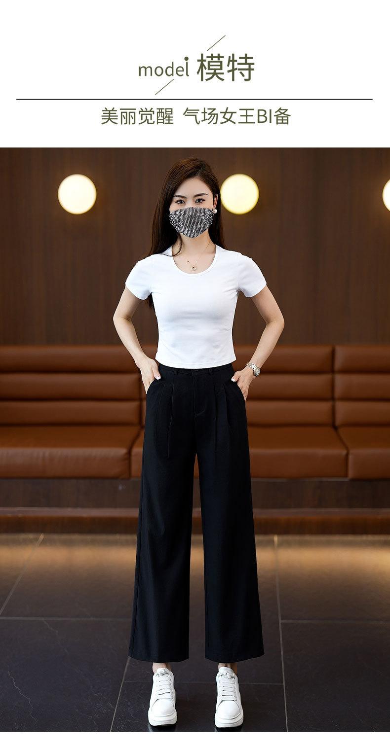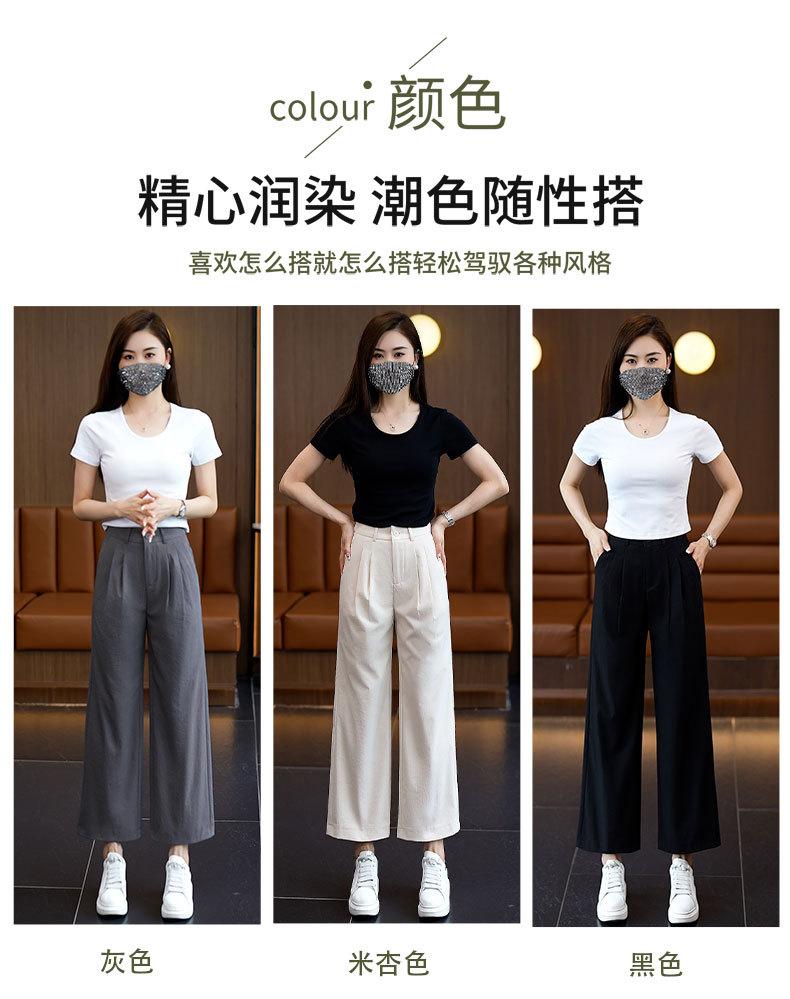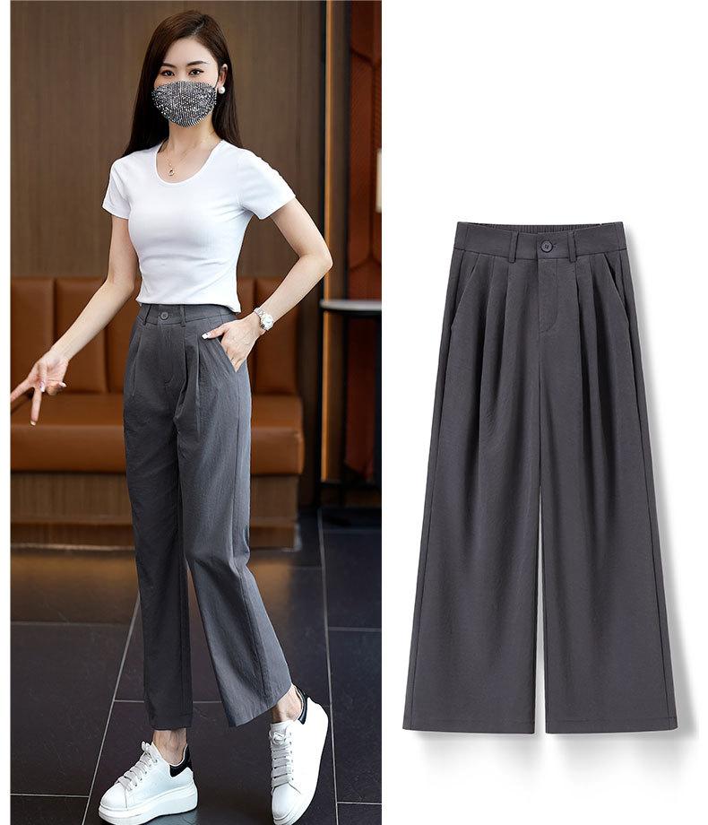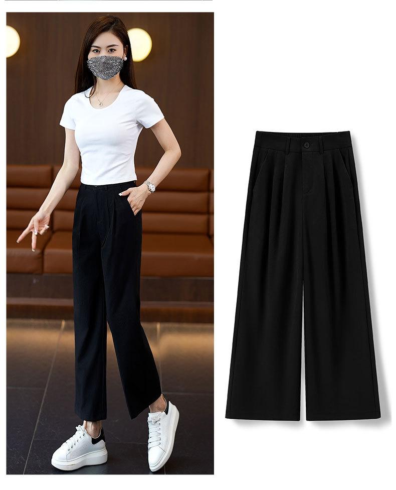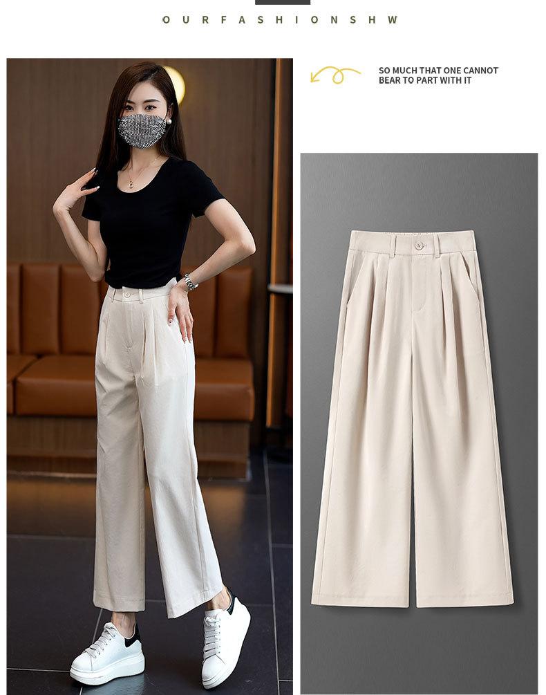 Pantalones de pierna ancha para mujer, nuevos pantalones de verano de cintura alta, rectos, informales, a la moda, combinables, con drapeado, finos, recortados