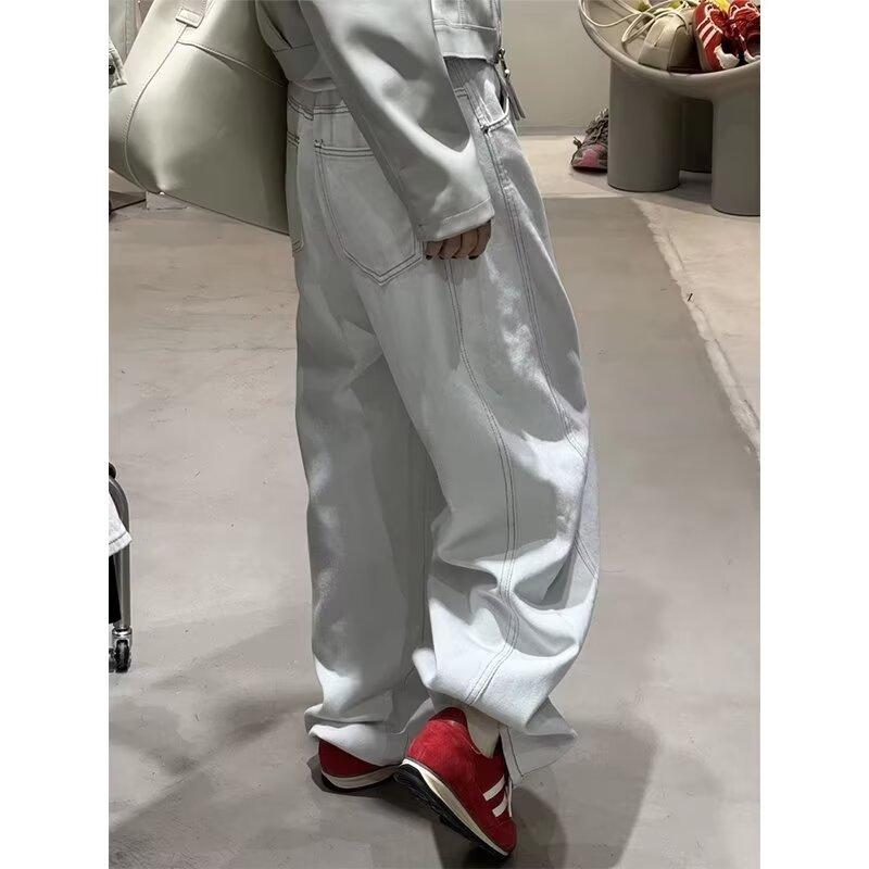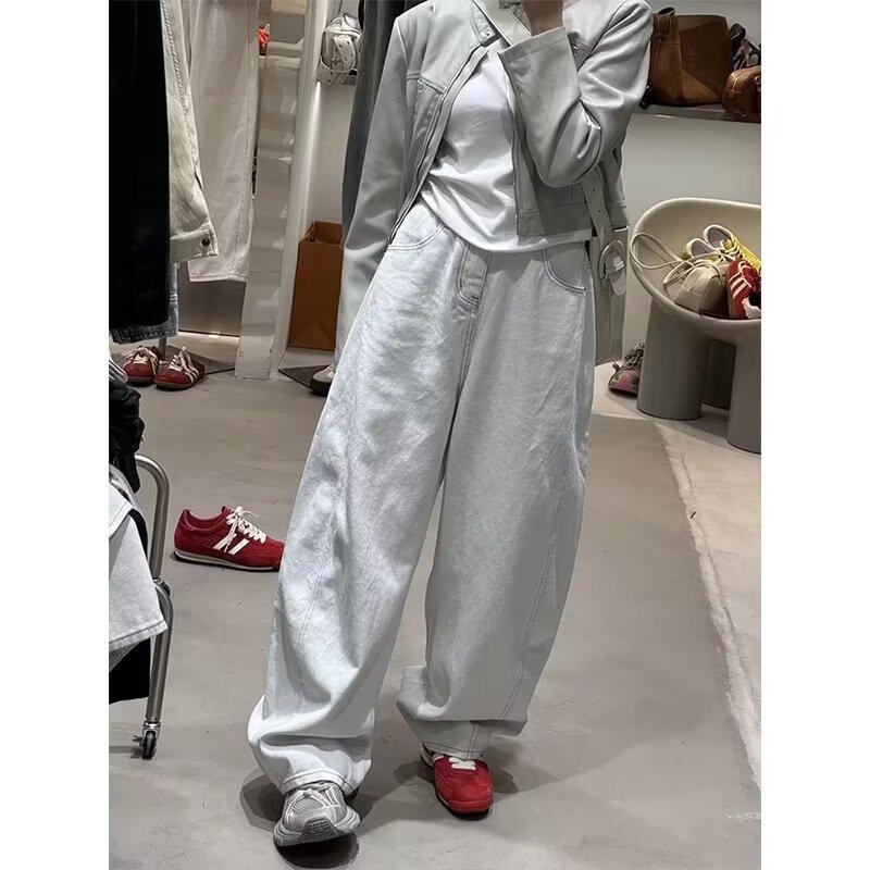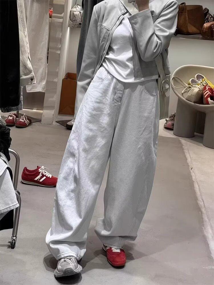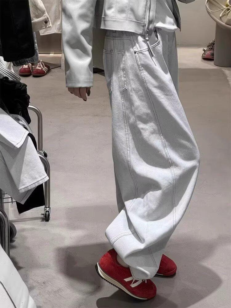 Jeans Machete Blancos para Mujer Primavera 2025 Nuevo talla grande chica gordita Cintura Alta Diseño Holgado Adelgazante Pantalones de Pierna Ancha