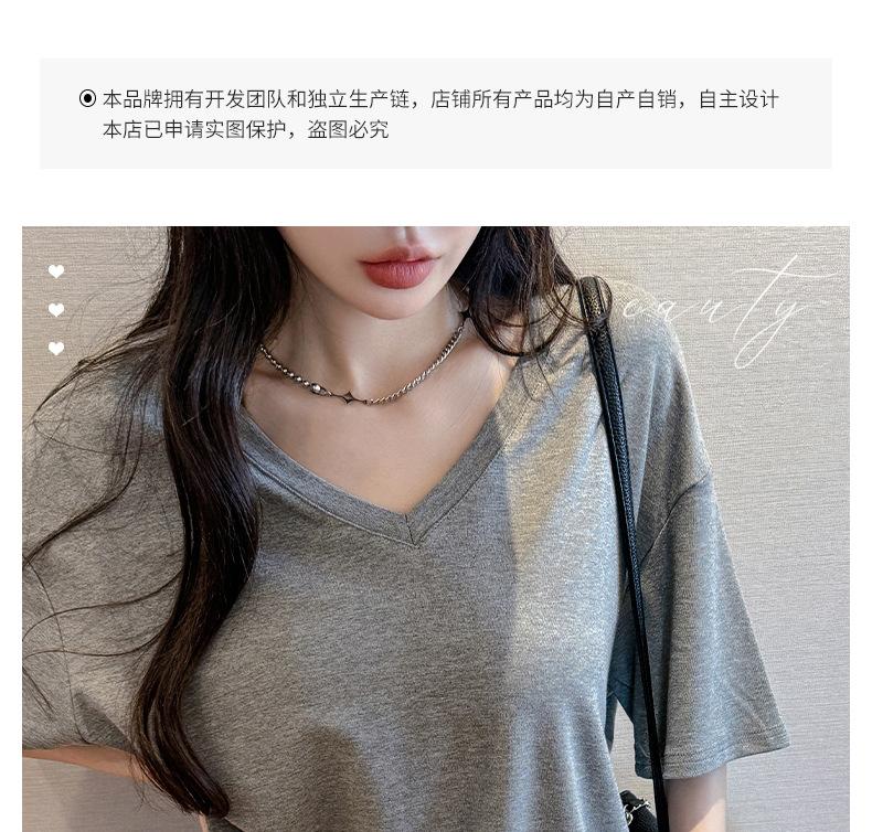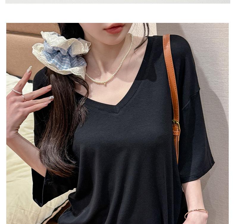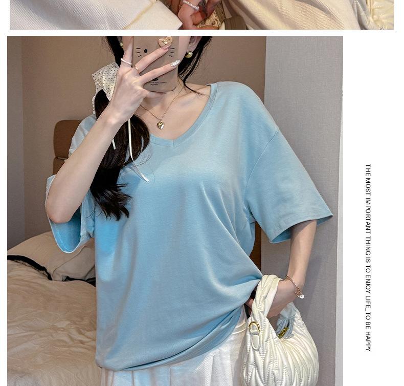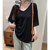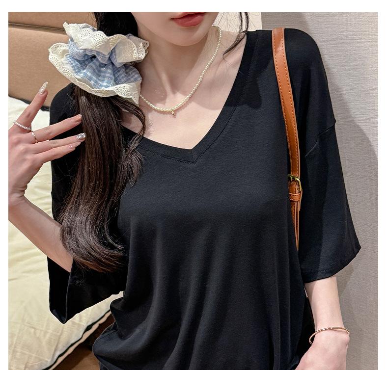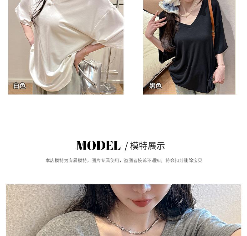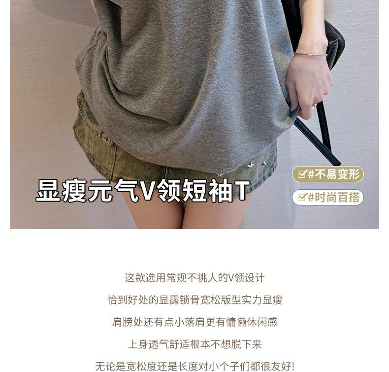 Verano 2025 Versátil Estilo Casual Holgado Manga Corta Hombro Camiseta para Mujer Top Adelgazante Holgado de Gama Alta de Largo Medio