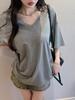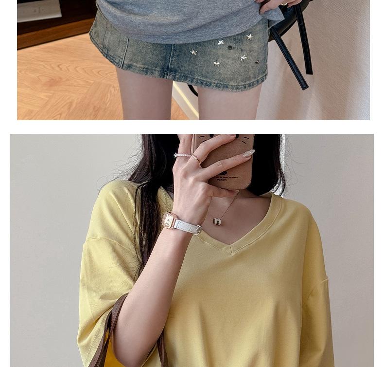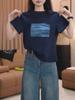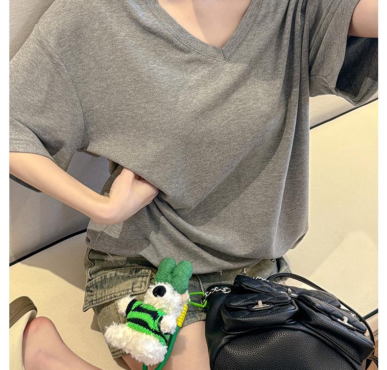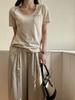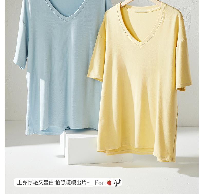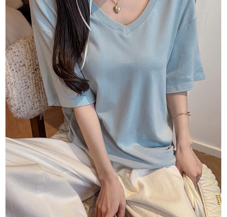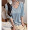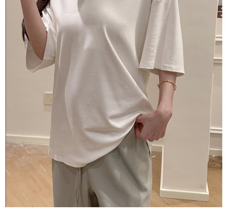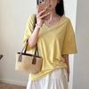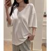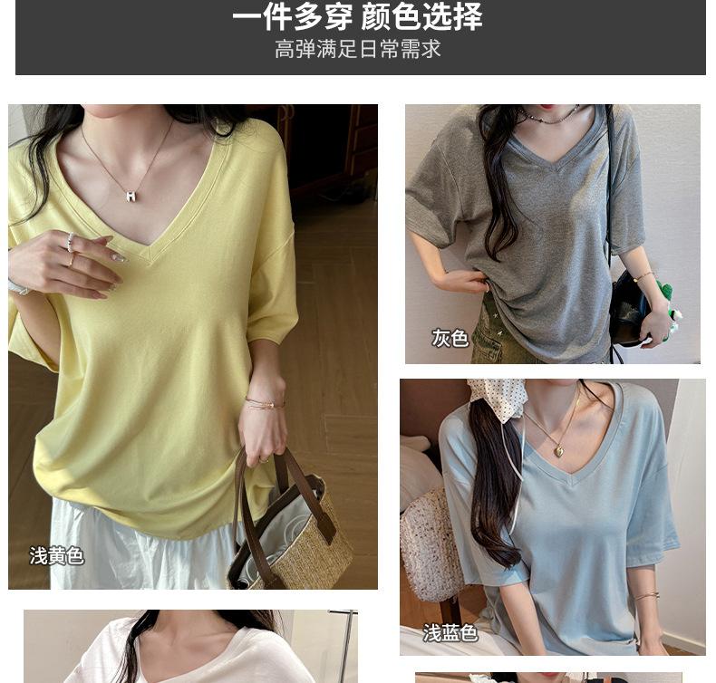 Verano 2025 Versátil Estilo Casual Holgado Manga Corta Hombro Camiseta para Mujer Top Adelgazante Holgado de Gama Alta de Largo Medio