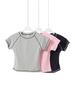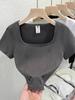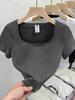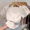 Camiseta de manga corta con hombros descubiertos para mujer, novedad de verano 2025, corte entallado, corte de espiga, cuello cuadrado, cintura alta, para chica sexy.