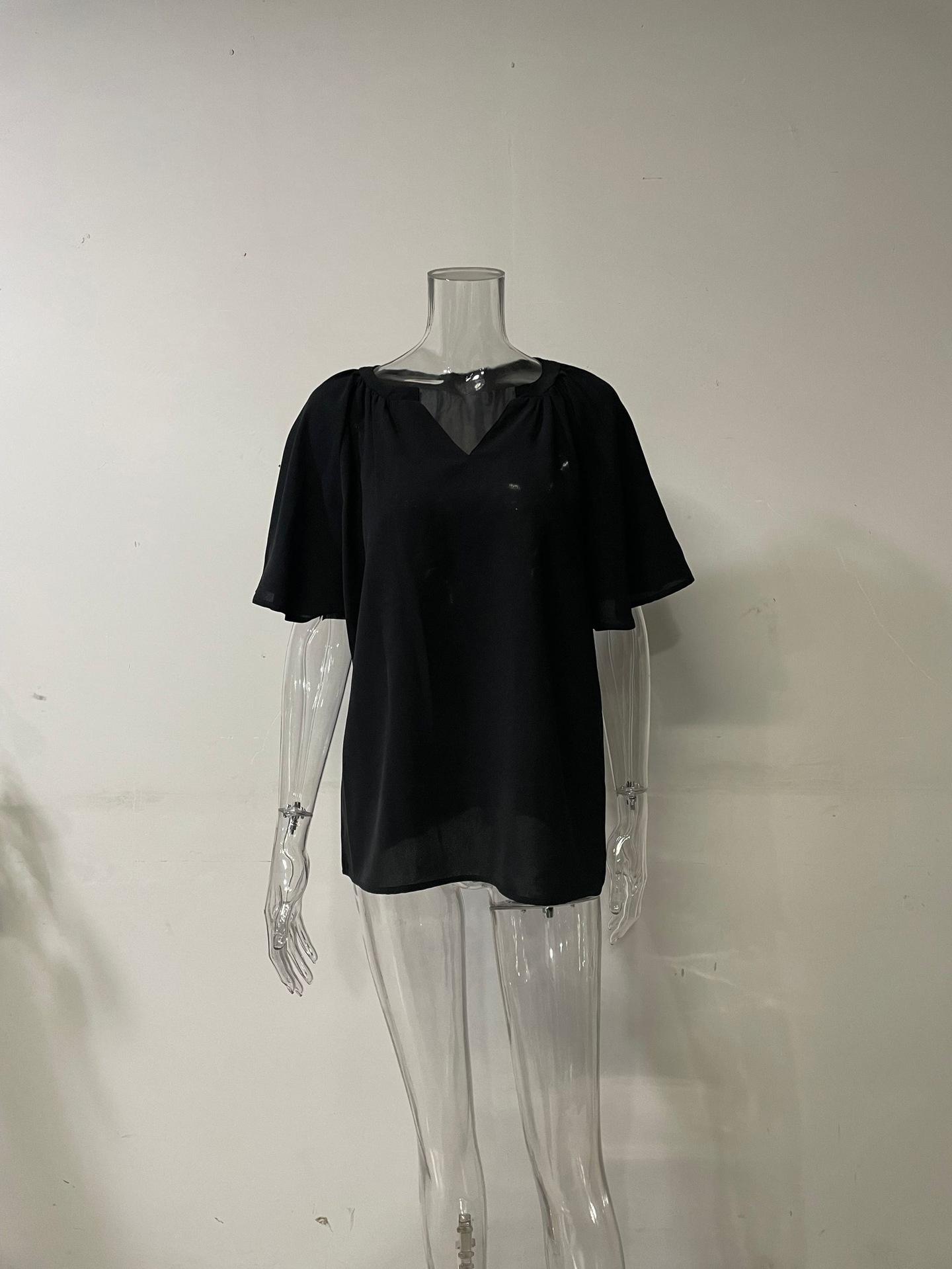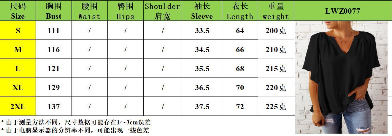 2024 Transfronterizo Europeo y Americano Amazon Verano Nuevo Suelto Manga Tres Cuartos Camiseta Mujer Cuello V Jersey Top Color Puro