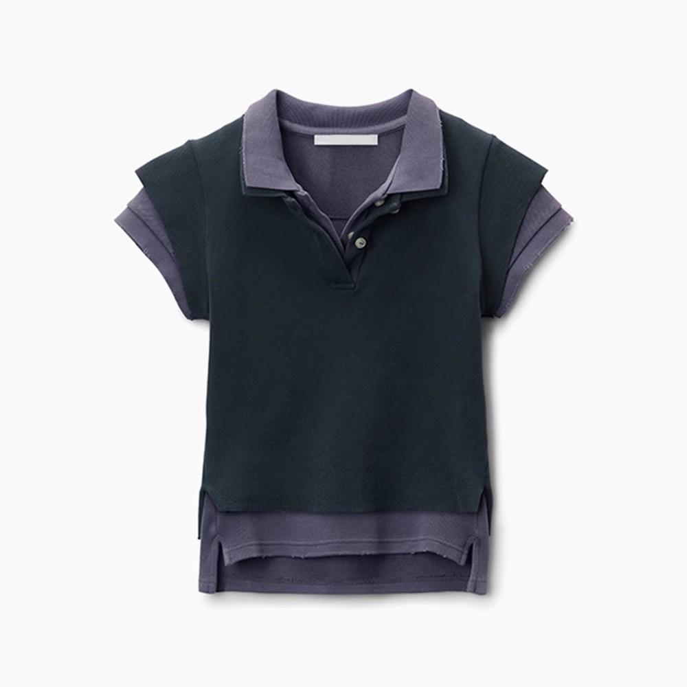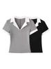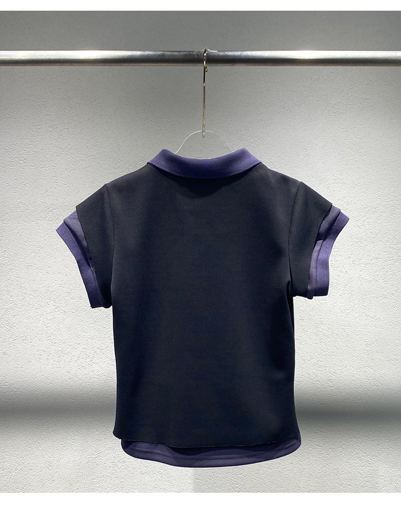 Ahora 2025 Nuevo Estilo de Verano Color Nicho a Juego Falso Dos Piezas Top Apilado Solapa Slim Camiseta de Manga Corta para Mujer