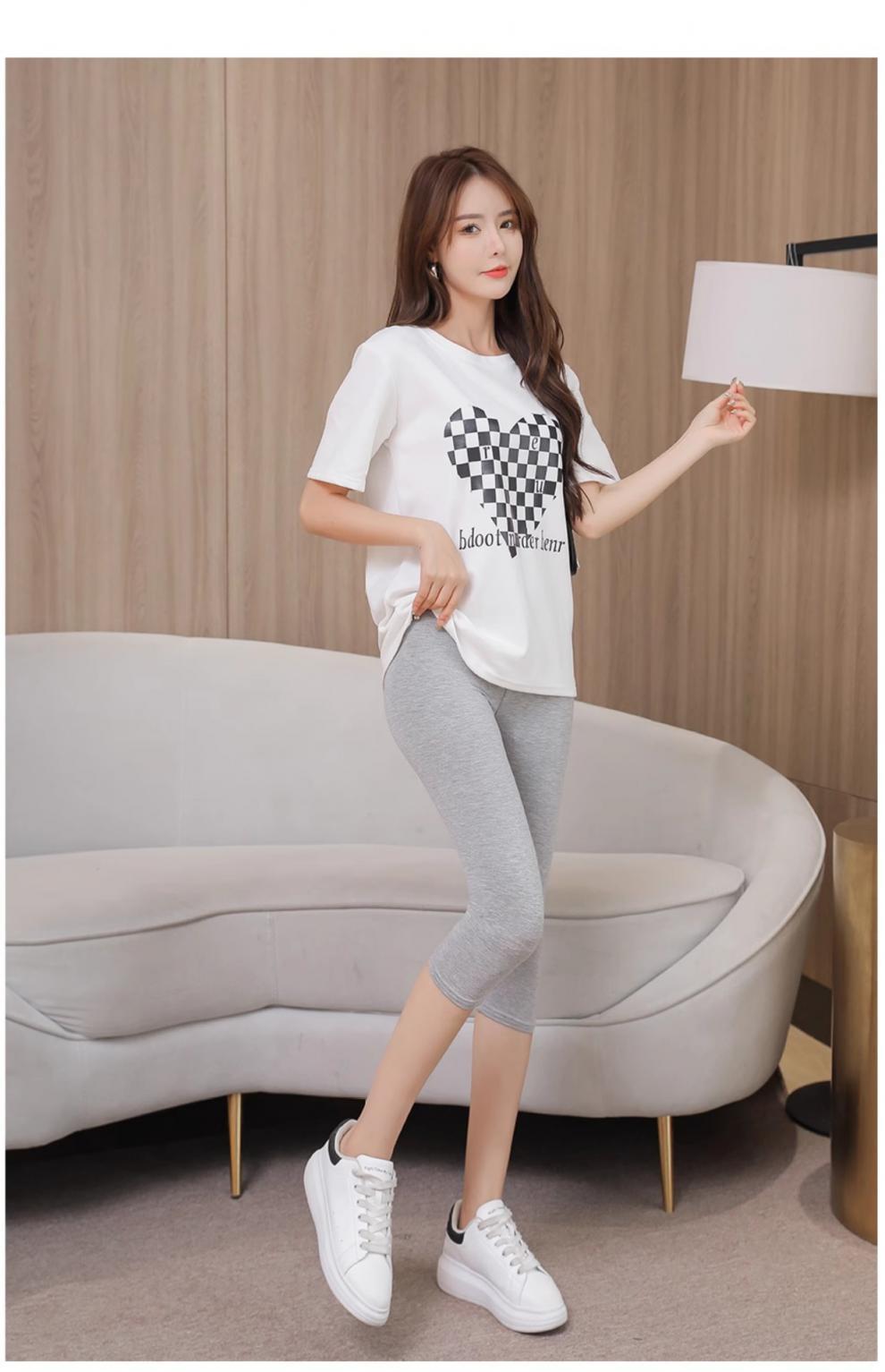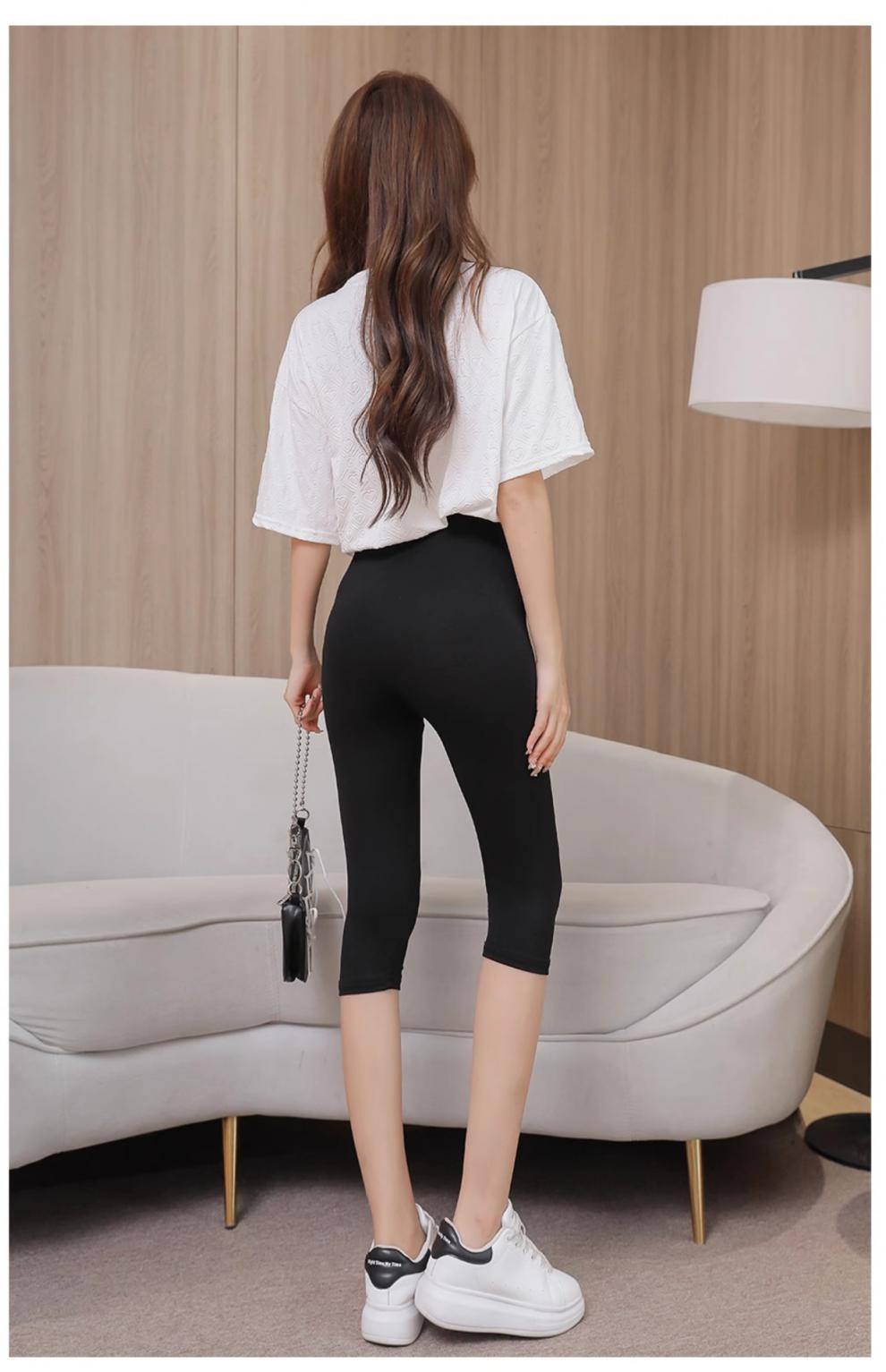 Leggings Hasta la Rodilla Modal Recortados Pantalones de Ocho Puntos para Mujer Verano Delgados Elásticos Cintura Alta Pantalones Base Talla Extra