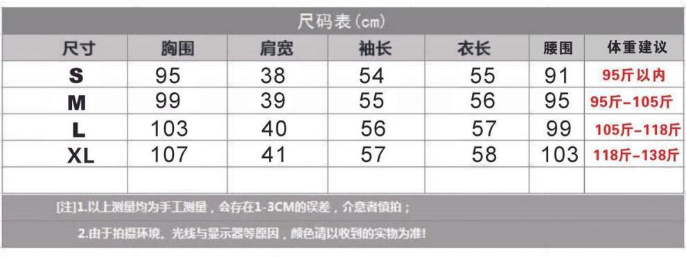 S [recommended to wear under 47.5kg years old], M [recommended to wear 47.5-52.5kg], L [recommended to wear 52...