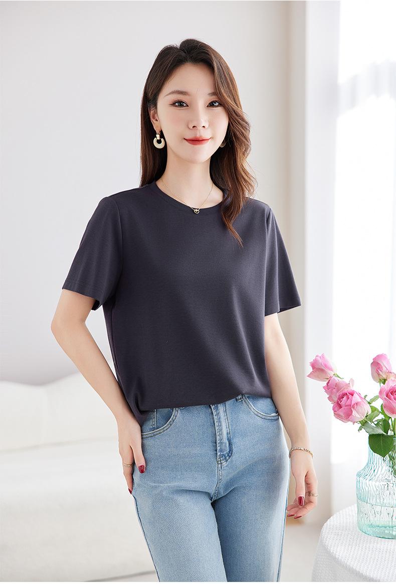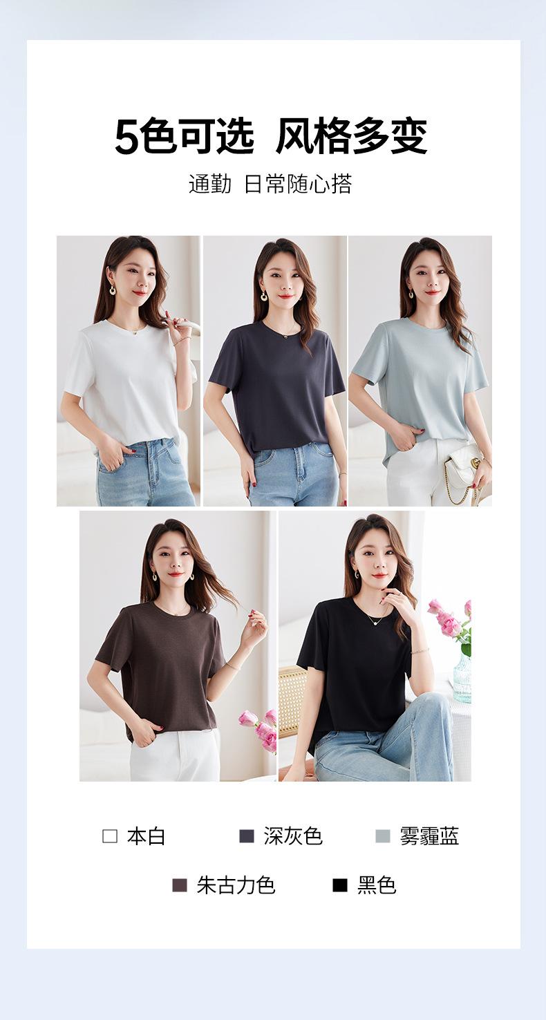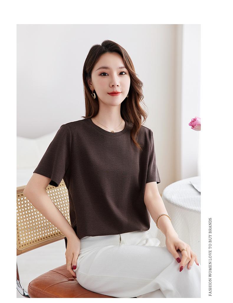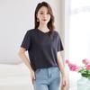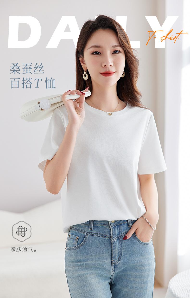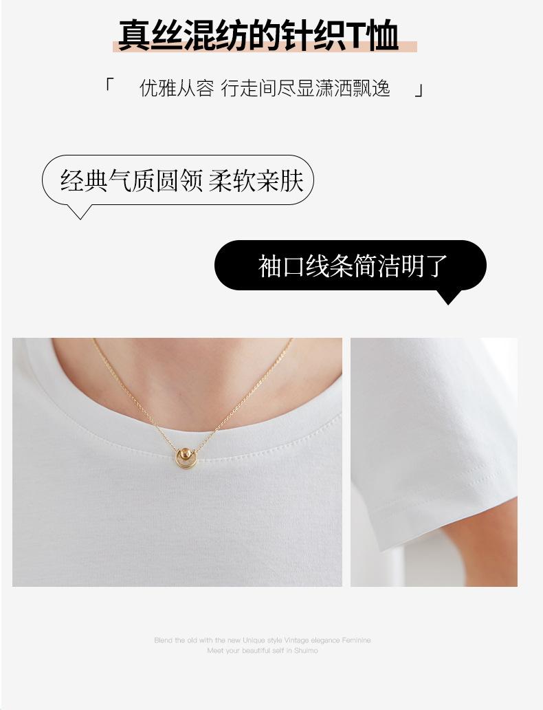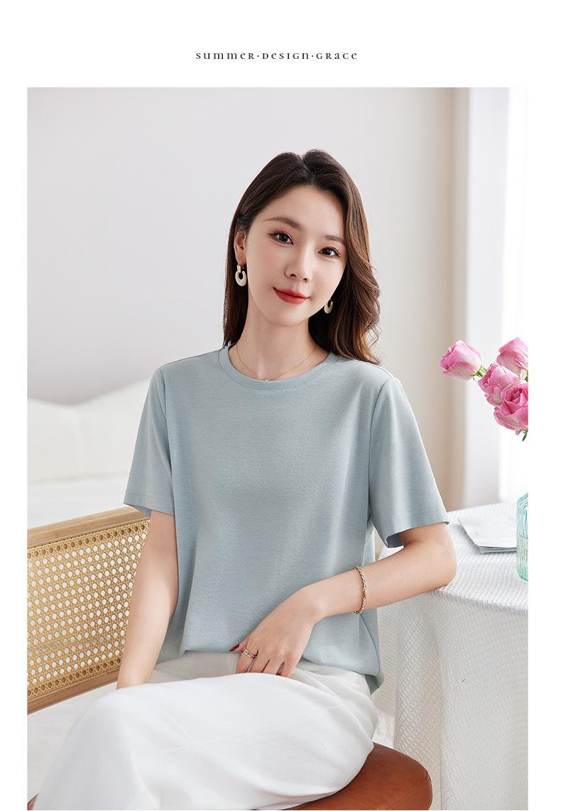 [Fibra Regenerada Mezclada con Seda] Verano Nueva Camiseta Slim de Cuello Redondo para Mujer Suelta Combinable Camiseta Básica 9060
