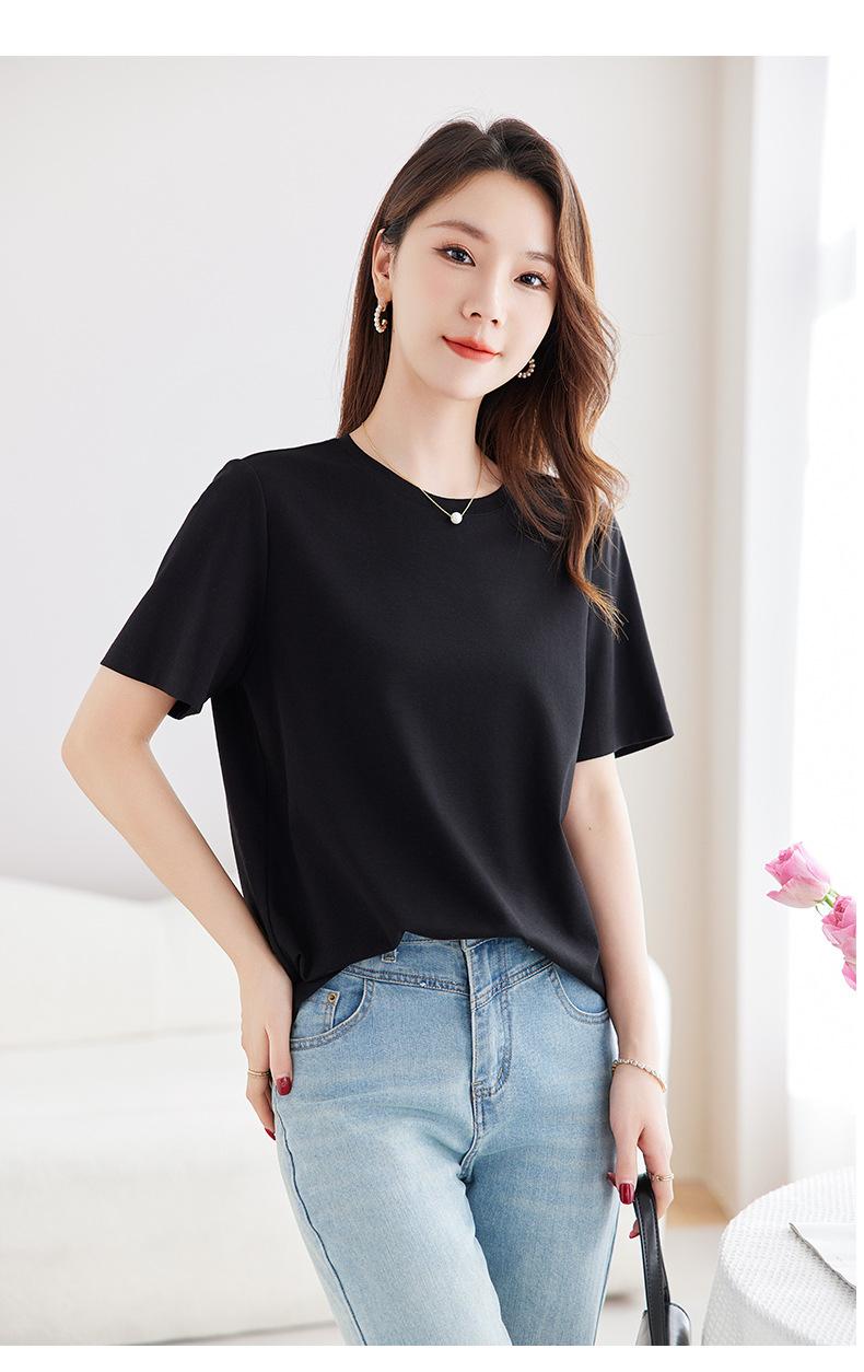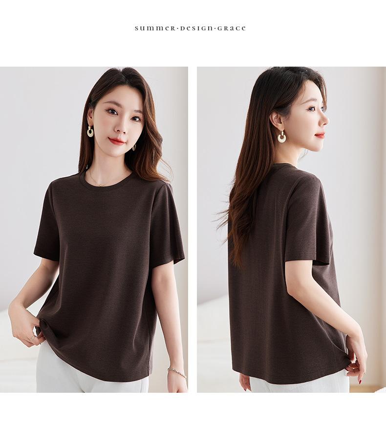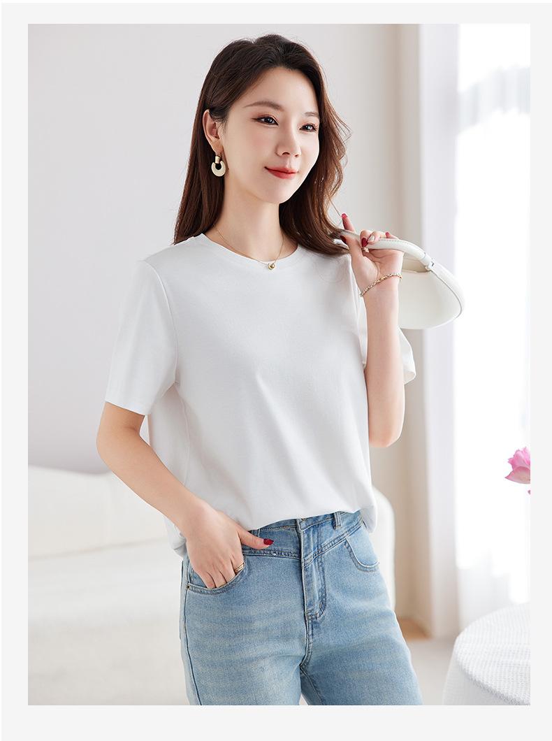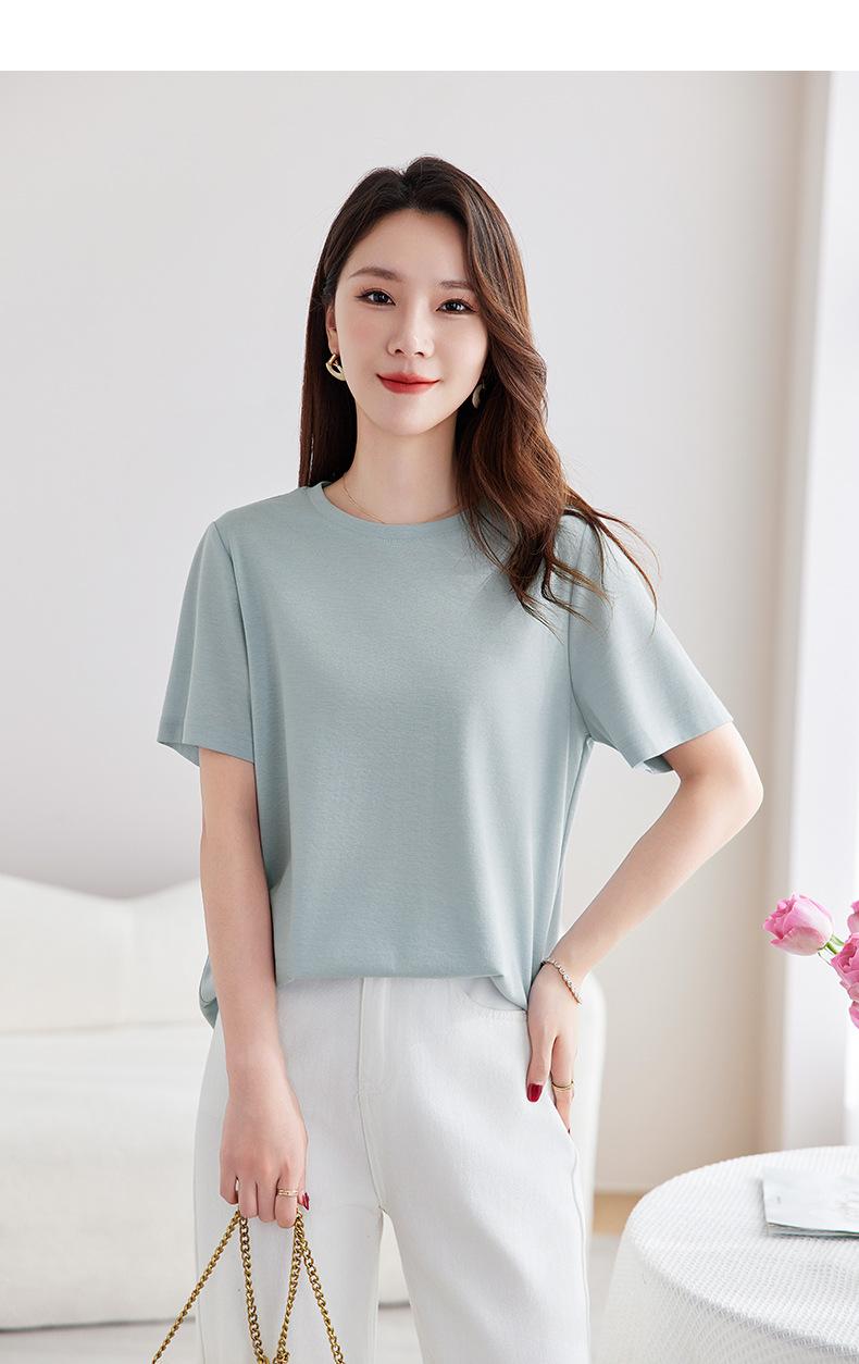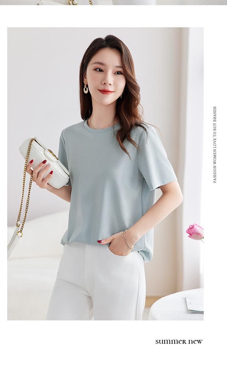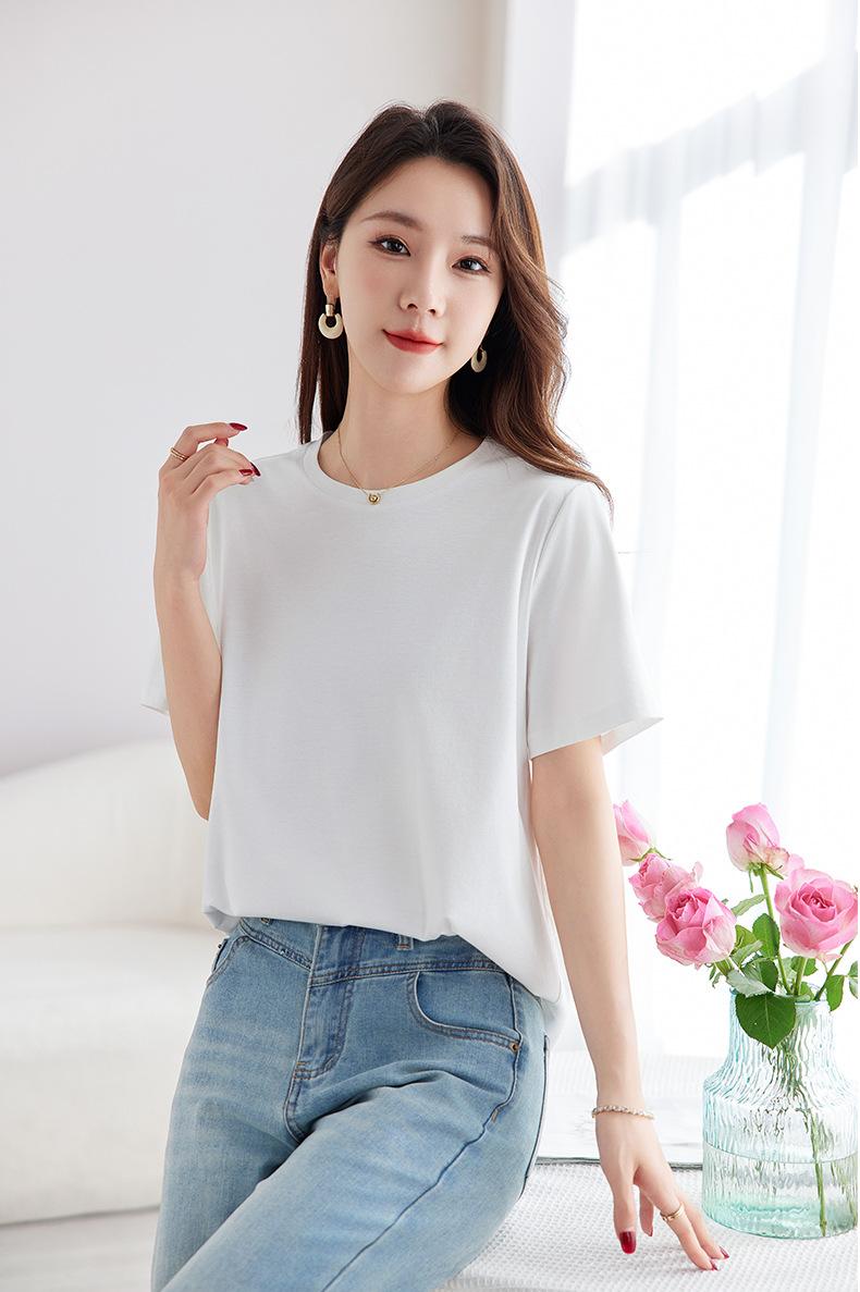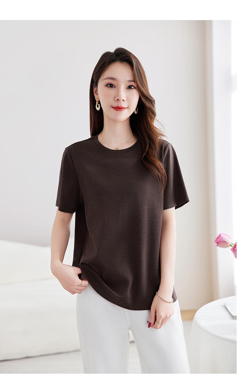 [Fibra Regenerada Mezclada con Seda] Verano Nueva Camiseta Slim de Cuello Redondo para Mujer Suelta Combinable Camiseta Básica 9060