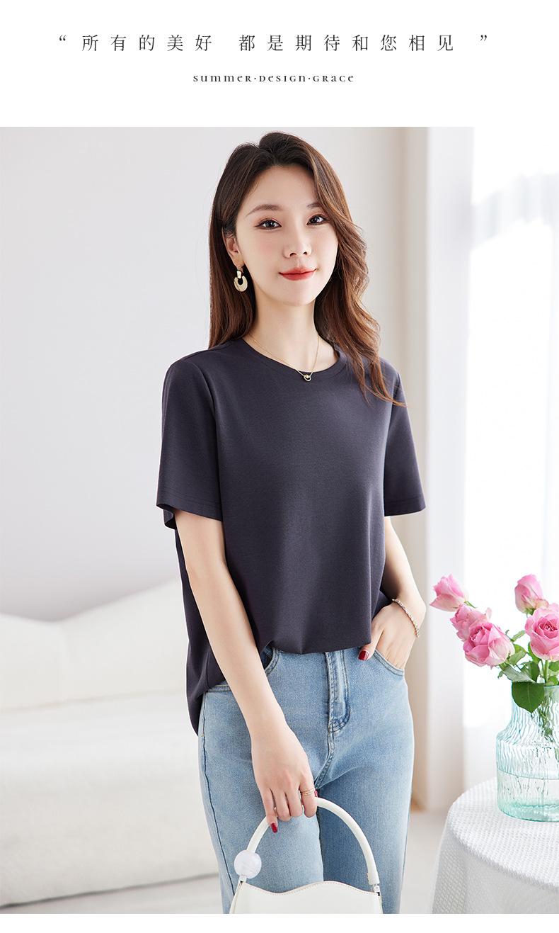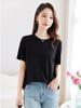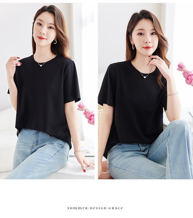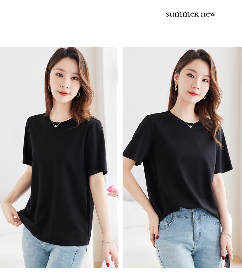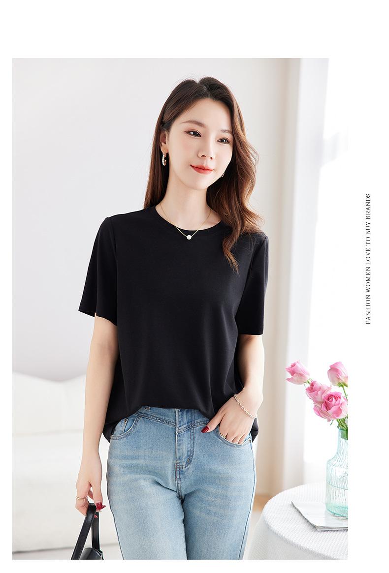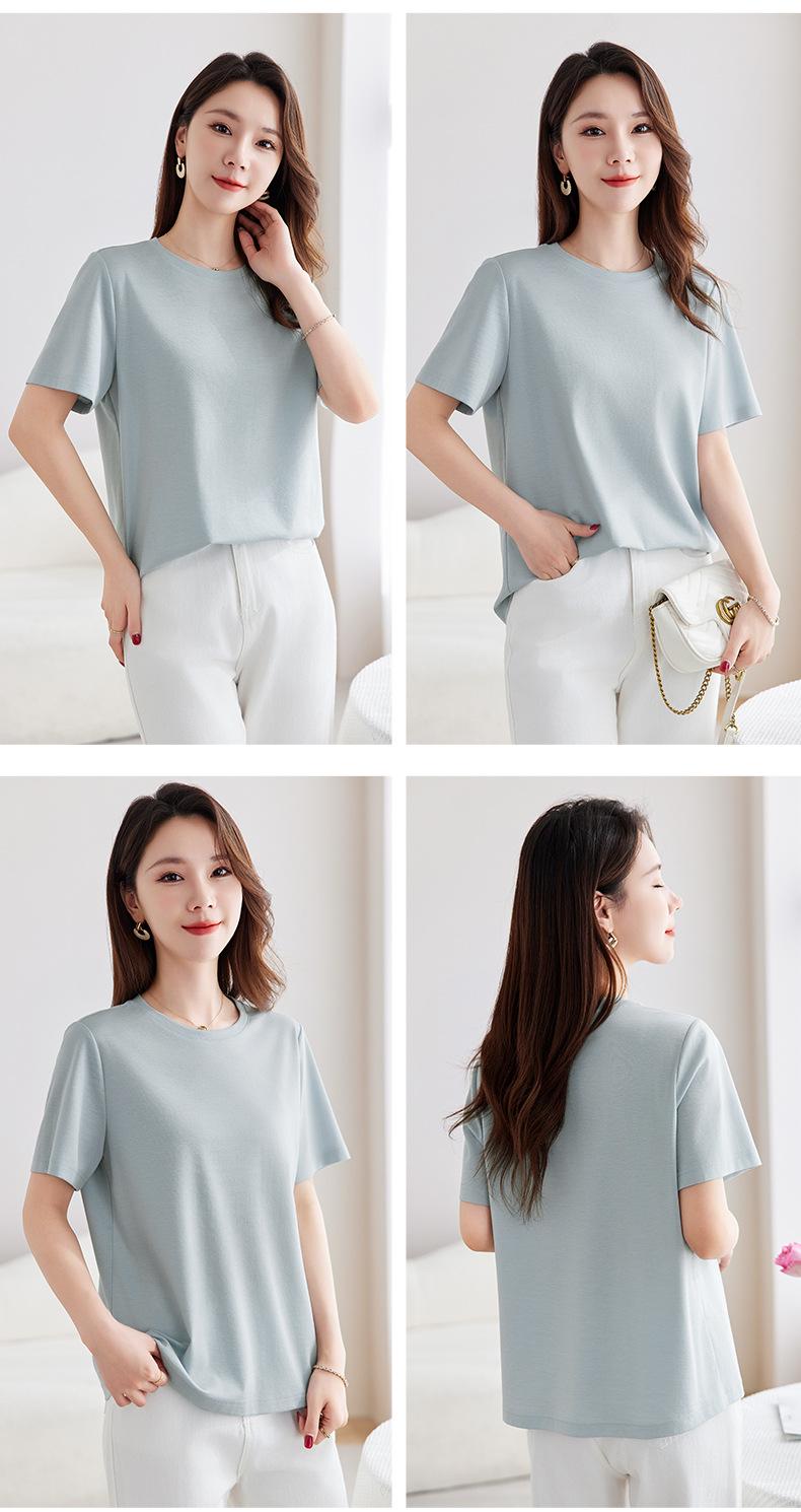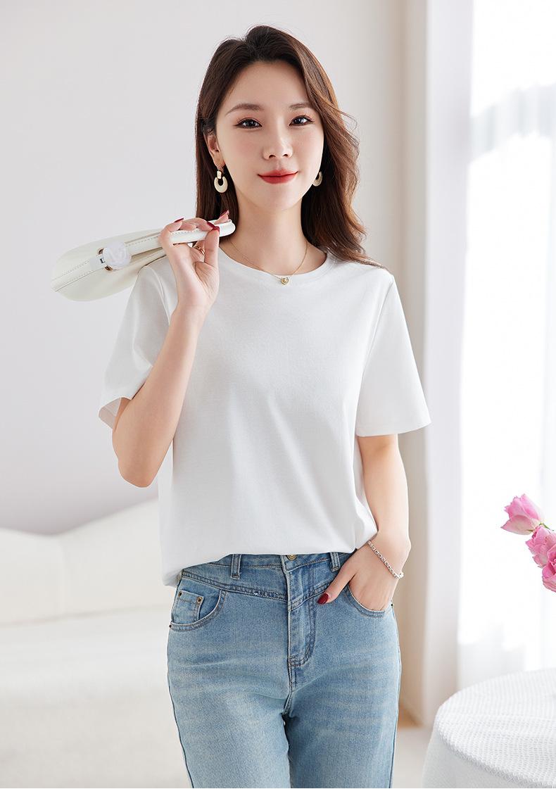 [Fibra Regenerada Mezclada con Seda] Verano Nueva Camiseta Slim de Cuello Redondo para Mujer Suelta Combinable Camiseta Básica 9060
